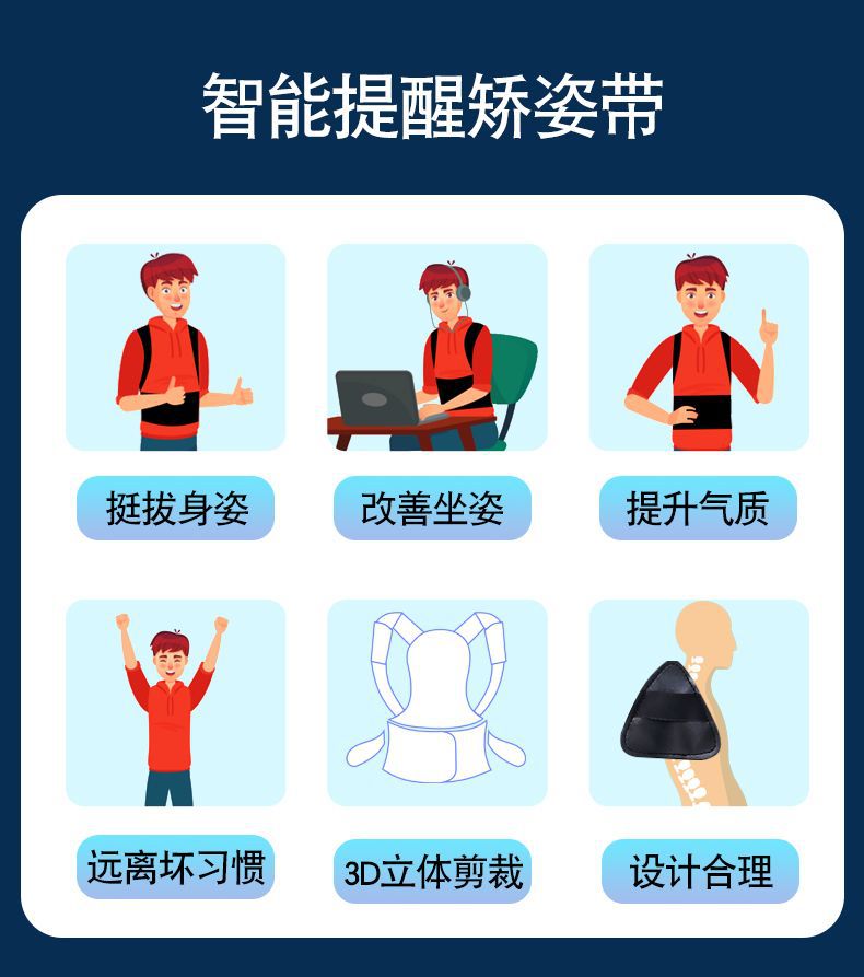 【智能驼背感应器】青少年驼背矫正带形体背部支撑 学生写字坐姿矫正器 智能驼背矫正器