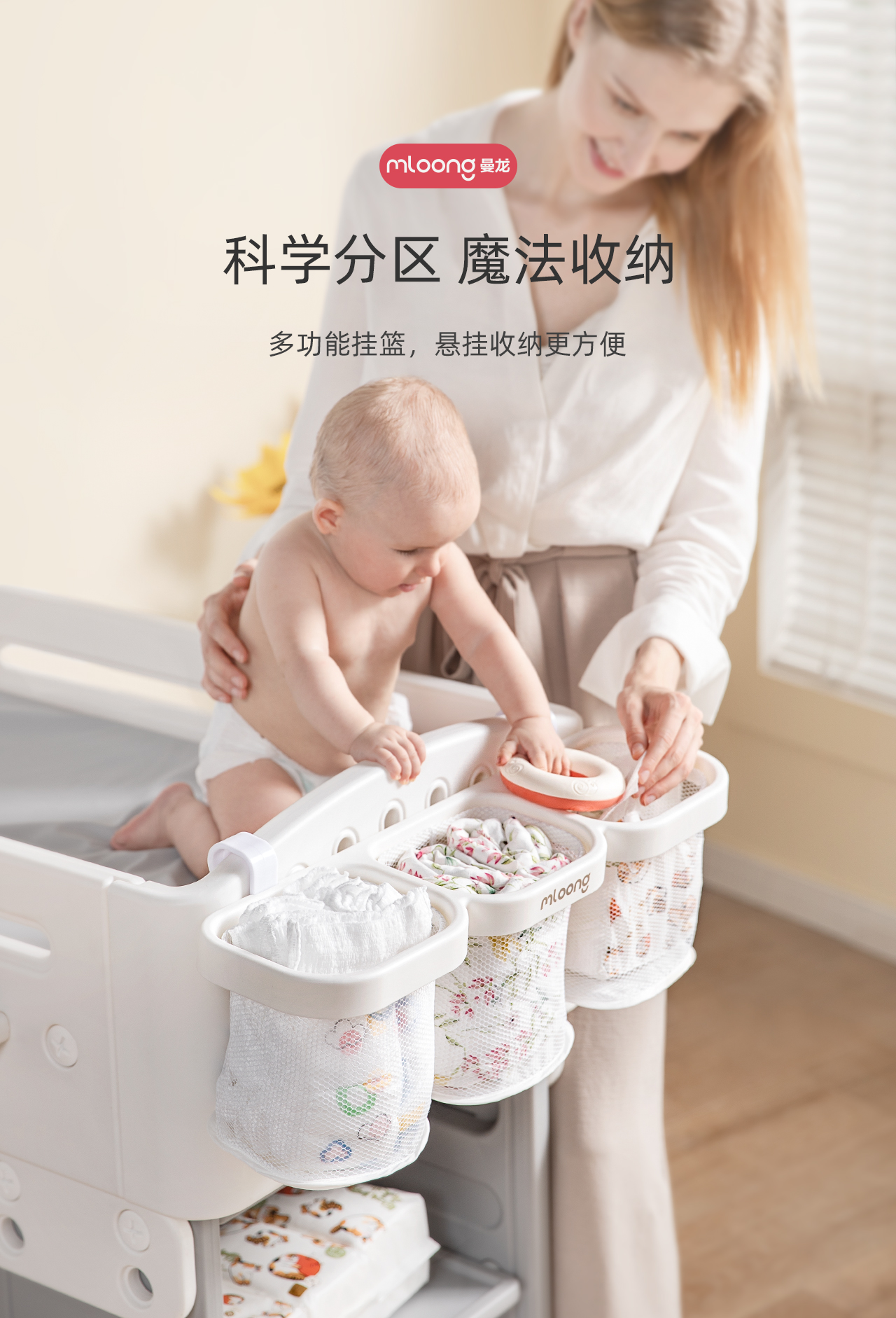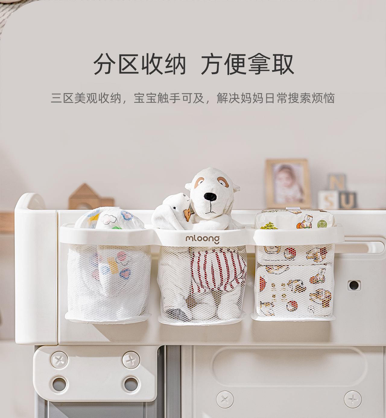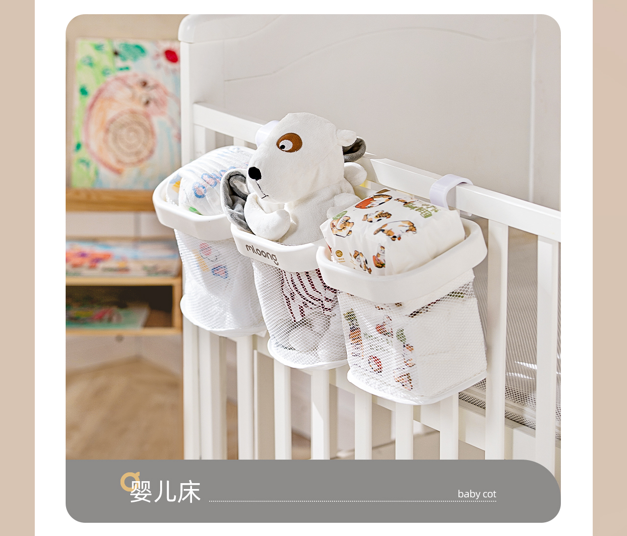 【冬日暖拥】曼龙mloong婴儿床边挂篮置物架宝宝尿不湿收纳挂袋尿布台围栏床头收纳盒