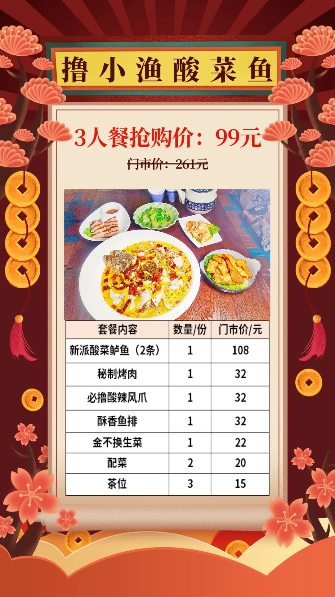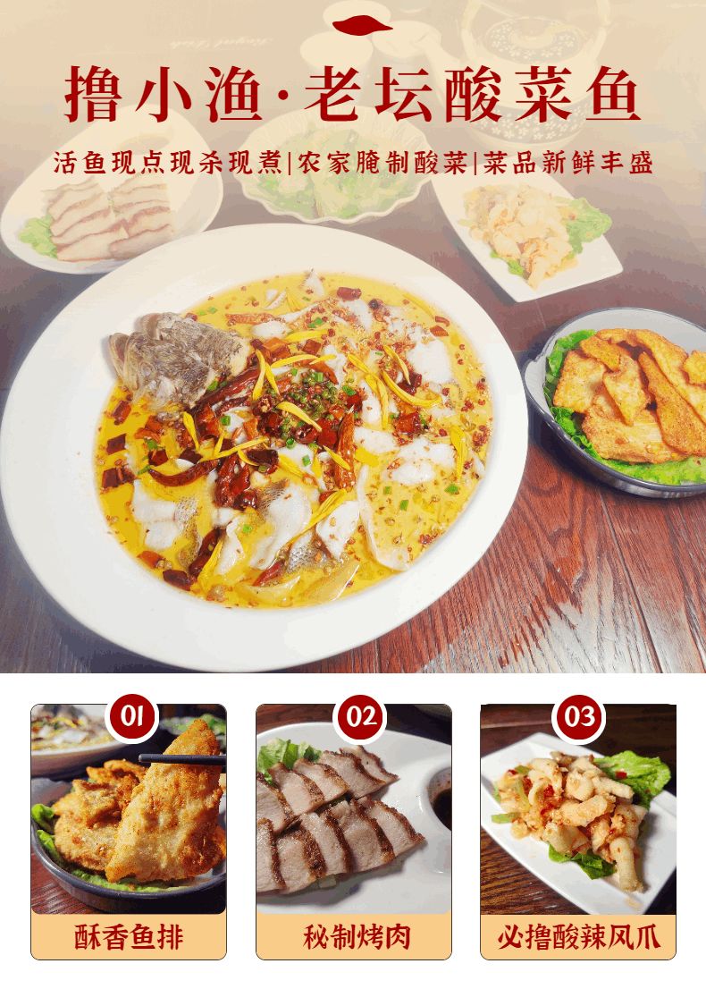 抢购截止日期1月31日【越秀北京路|撸小渔·老坛酸菜鱼】现点现杀,新派金汤酸菜鱼!仅99抢261元3人餐=新派酸菜鲈鱼+秘制烤肉+酥香鱼排+酸辣风爪等