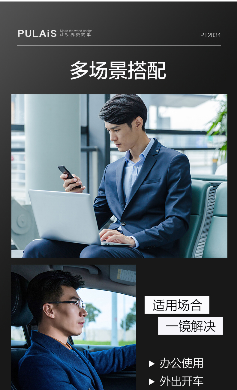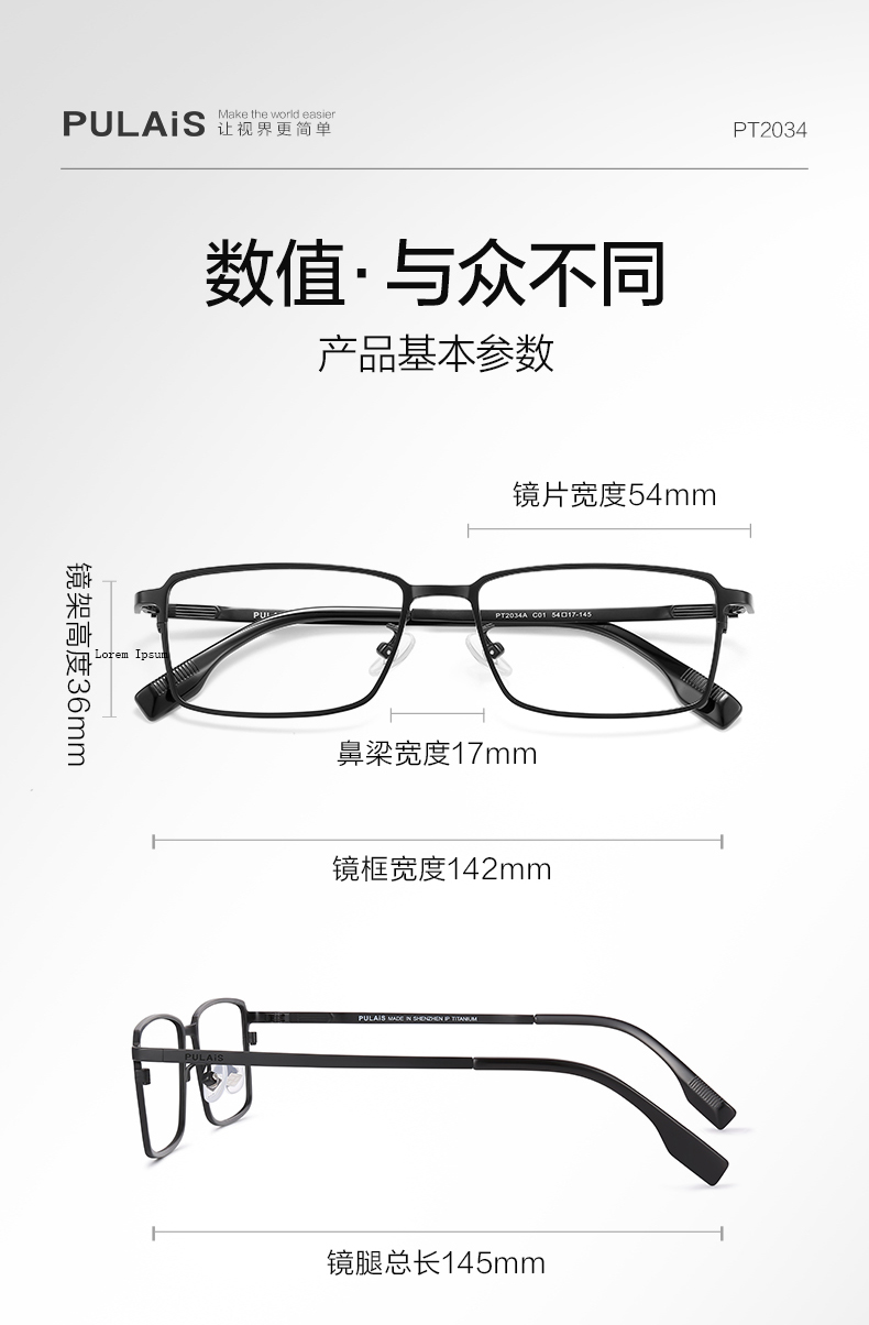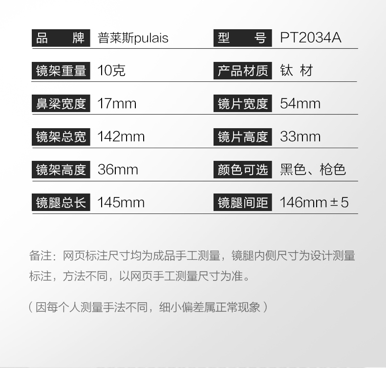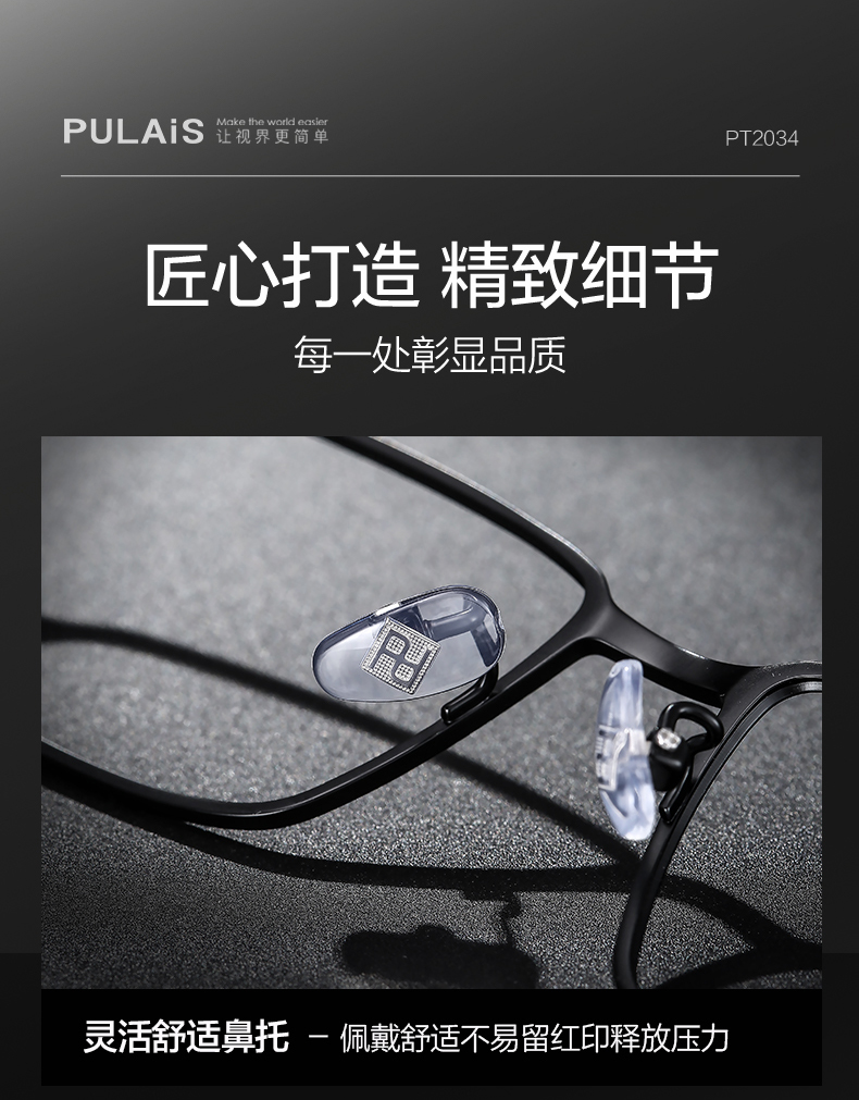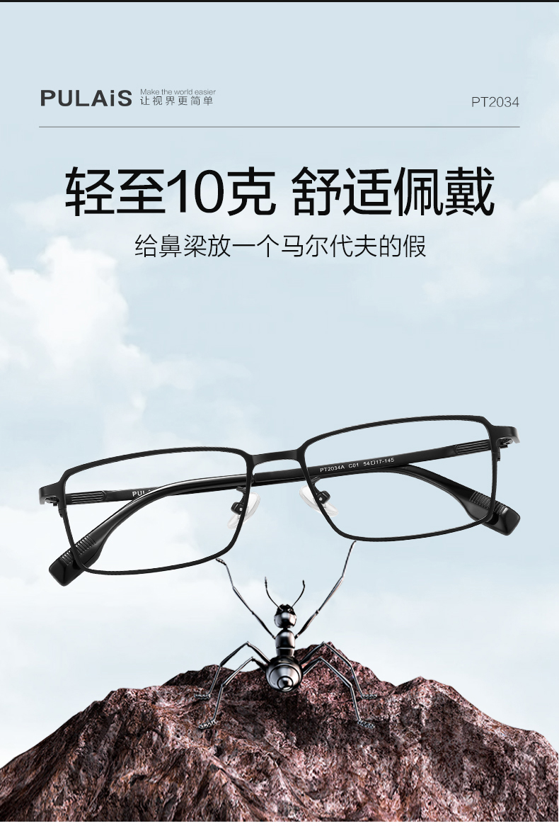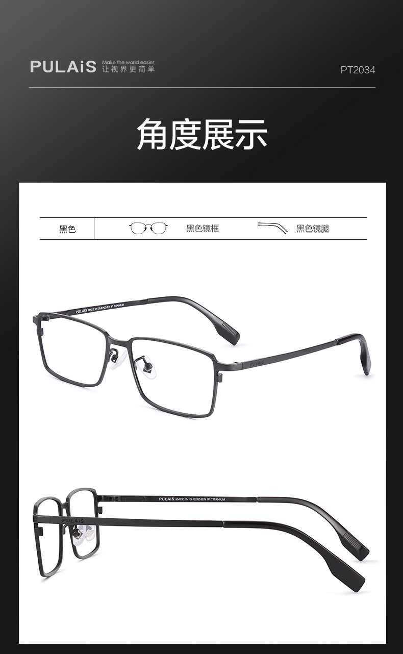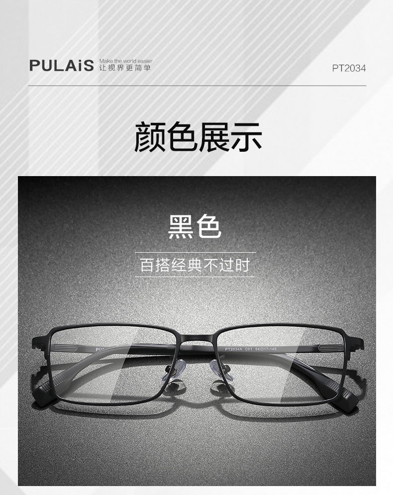 普莱斯光学镜架PT2034A 商务经典超清钛架 轻至10克佩戴舒适 双色可选