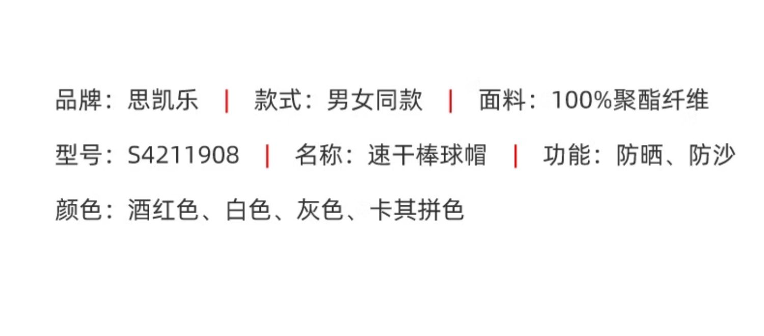 +【乐粉专属】SCALER思凯乐户外速干防晒棒球男女款运动休闲遮阳春秋软顶鸭舌帽 S4211908
