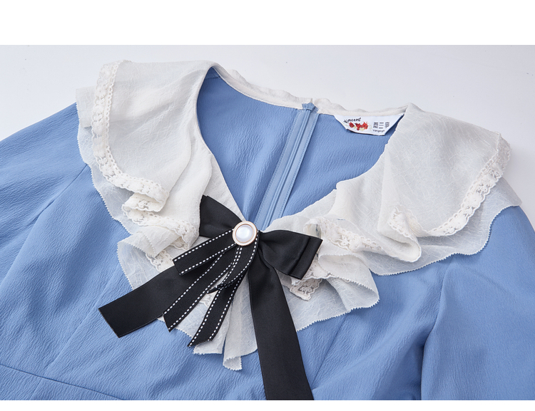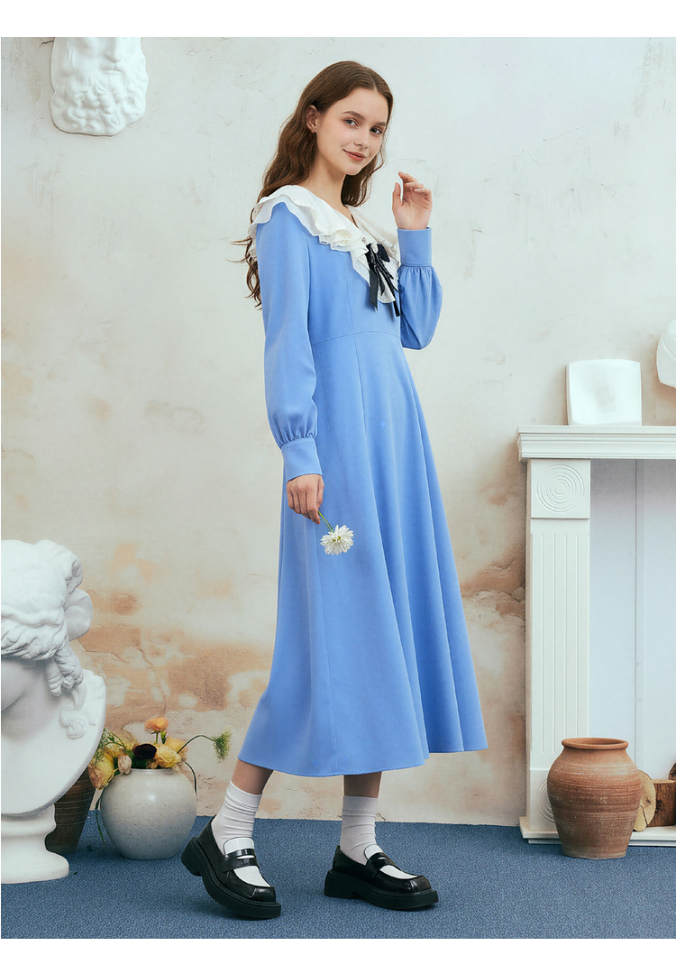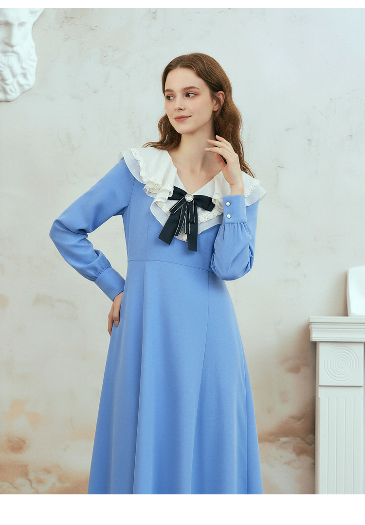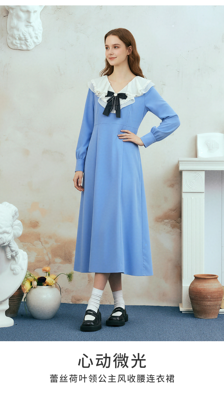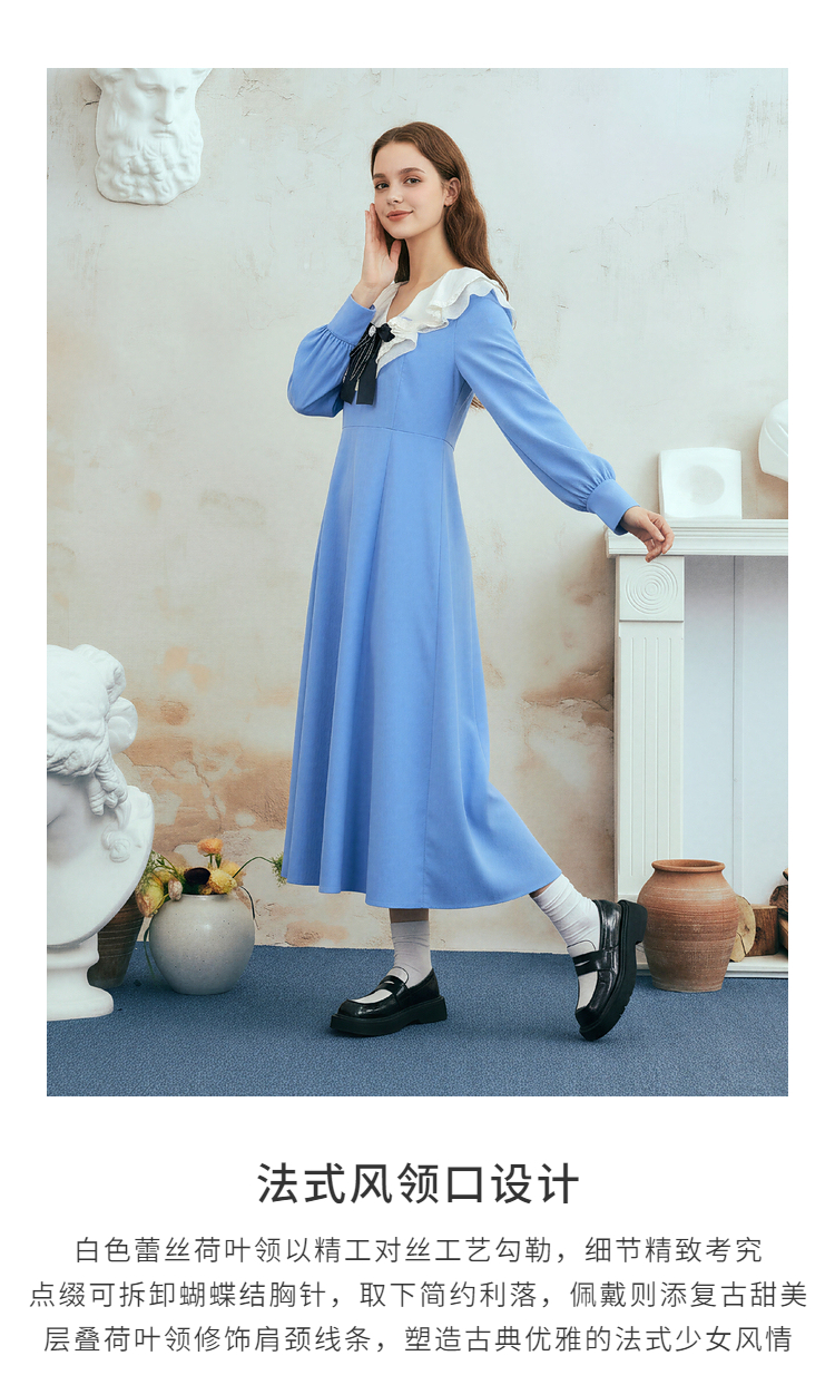 两三事梵高文艺心动微光2026春季新款复古荷叶边刺绣蝴蝶结连衣裙