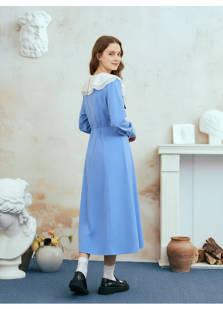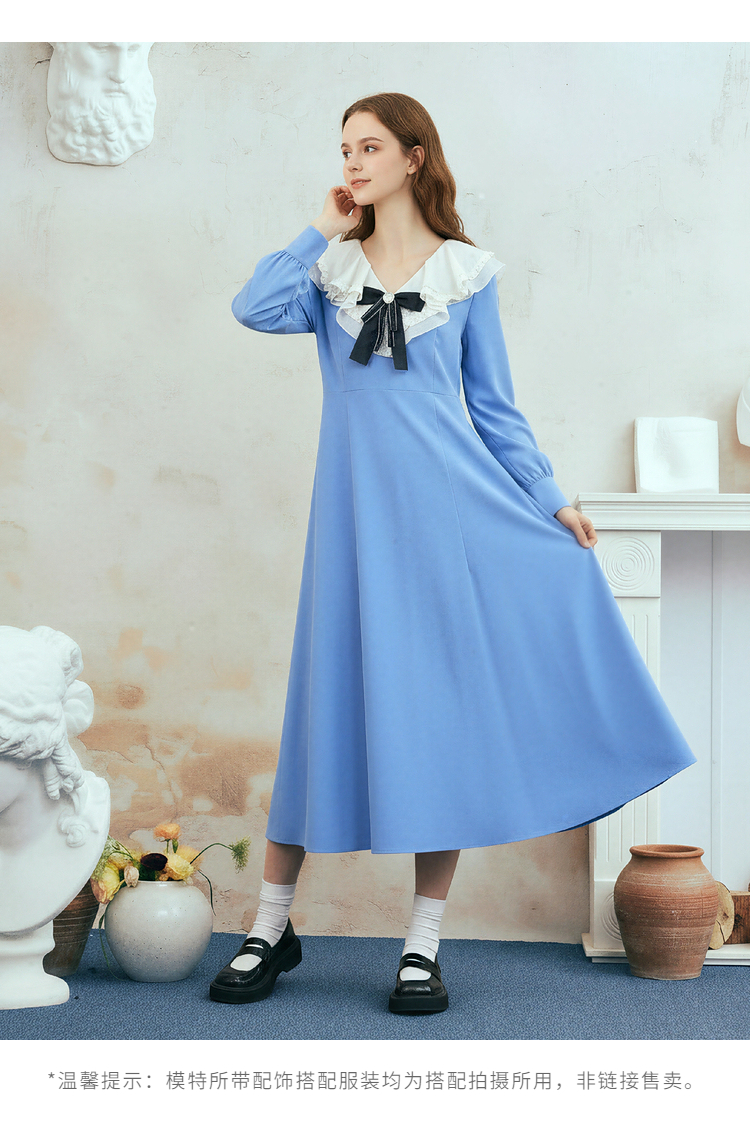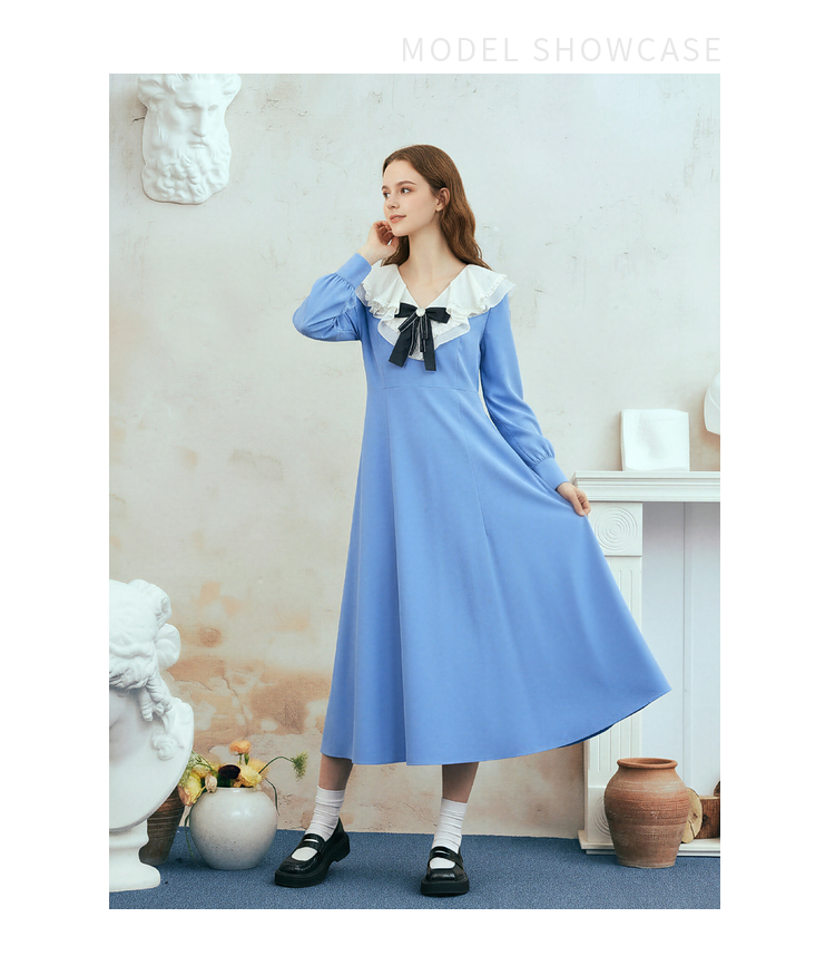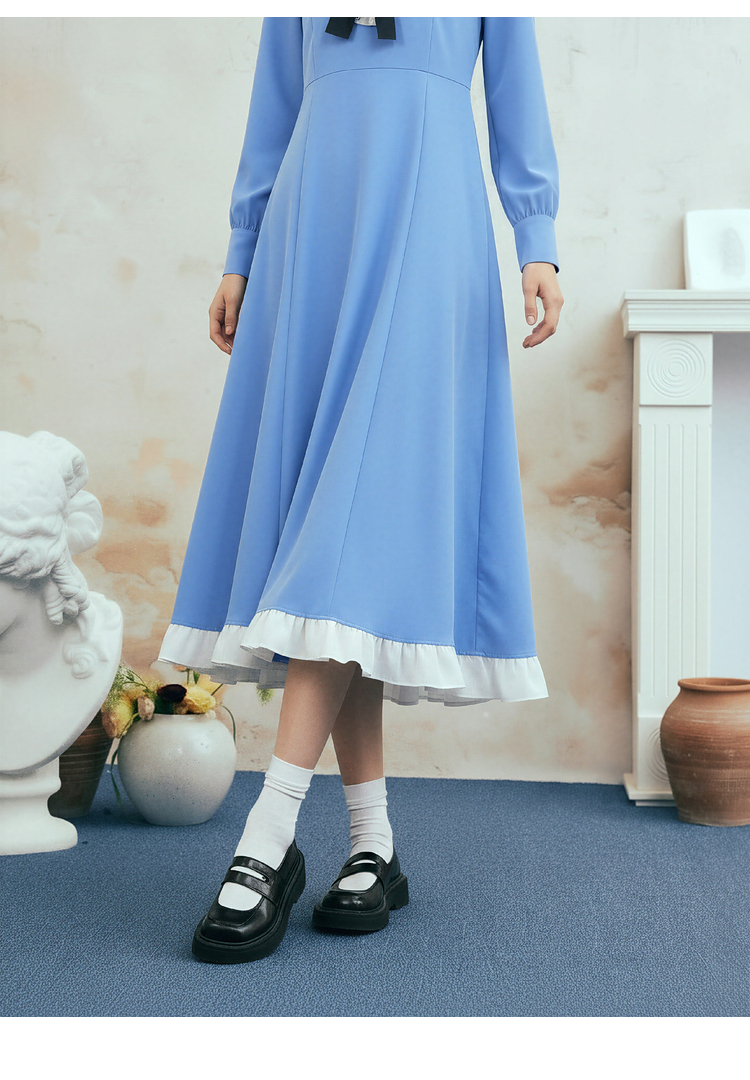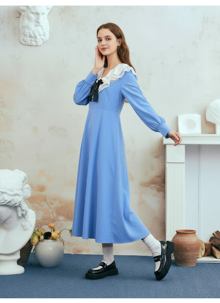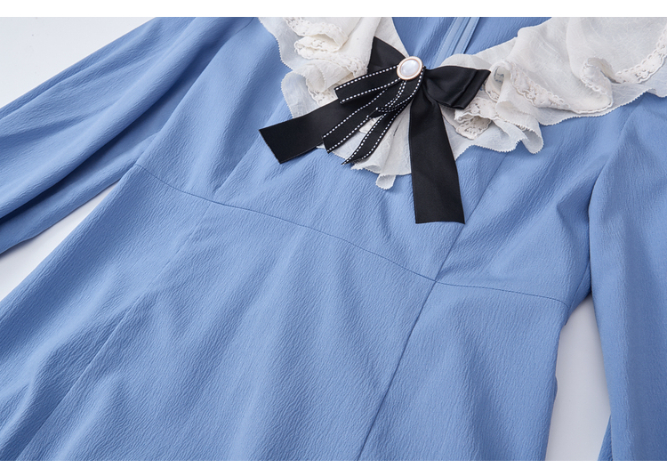 两三事梵高文艺心动微光2026春季新款复古荷叶边刺绣蝴蝶结连衣裙