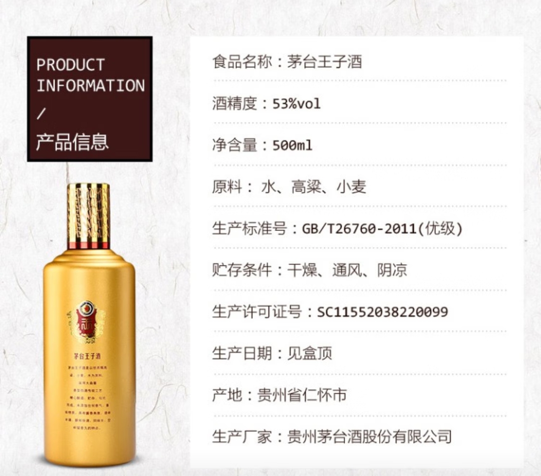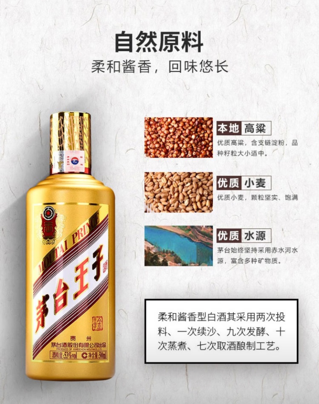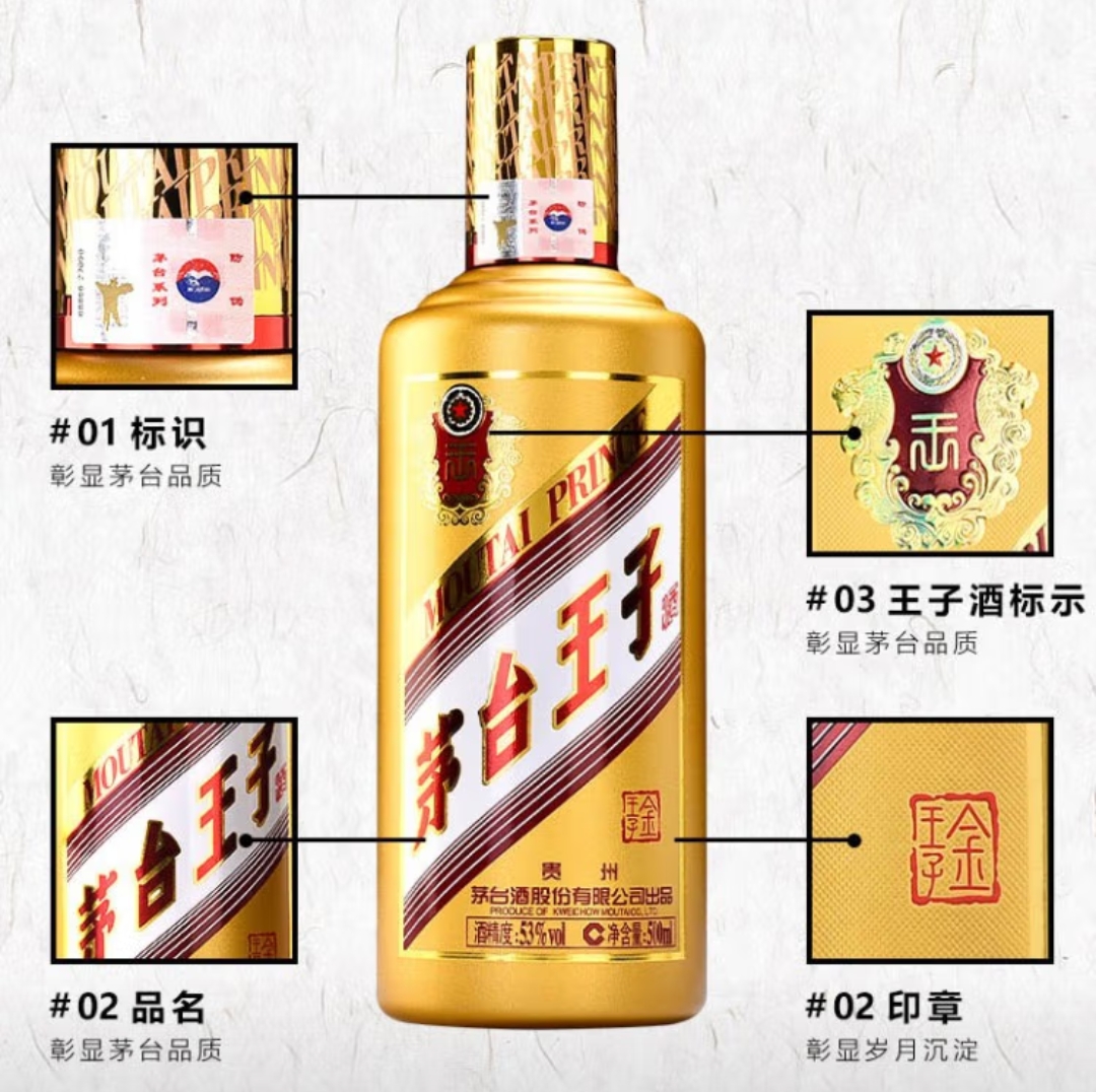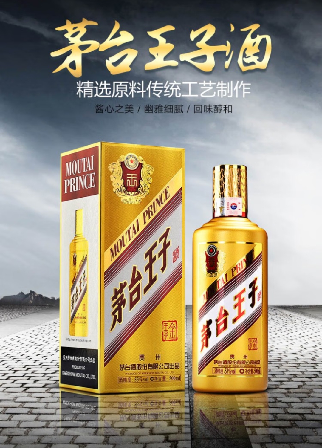 【自营】 茅台王子酒金王子 53度 酱香型高度白酒 53度 500mL 6瓶 整箱装 FZWJ