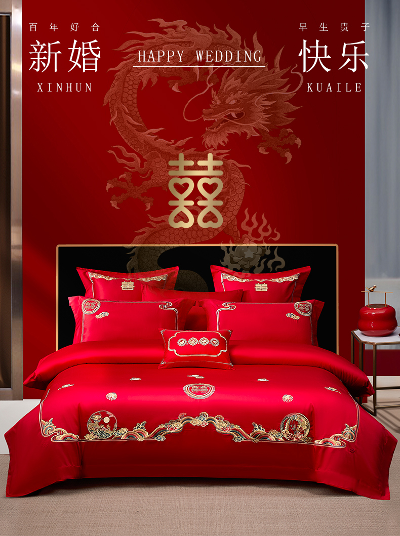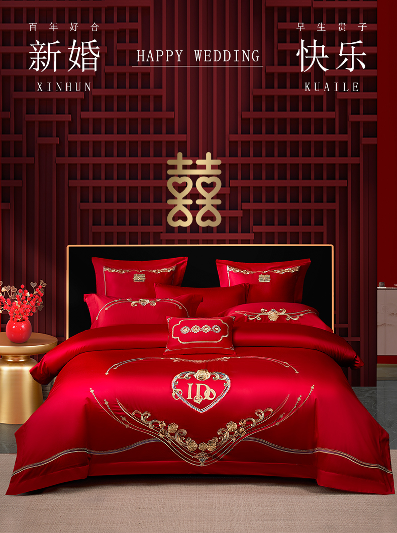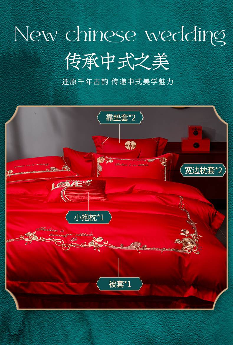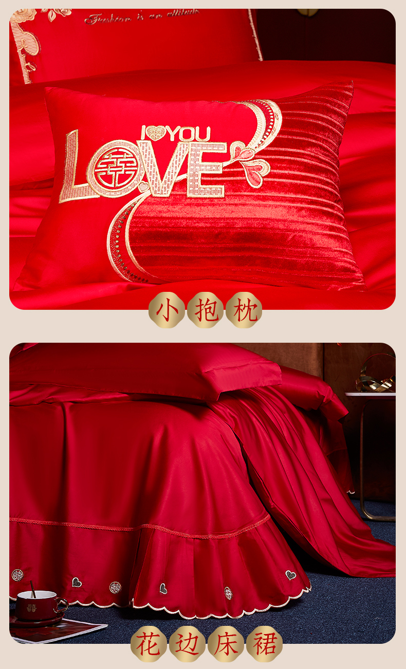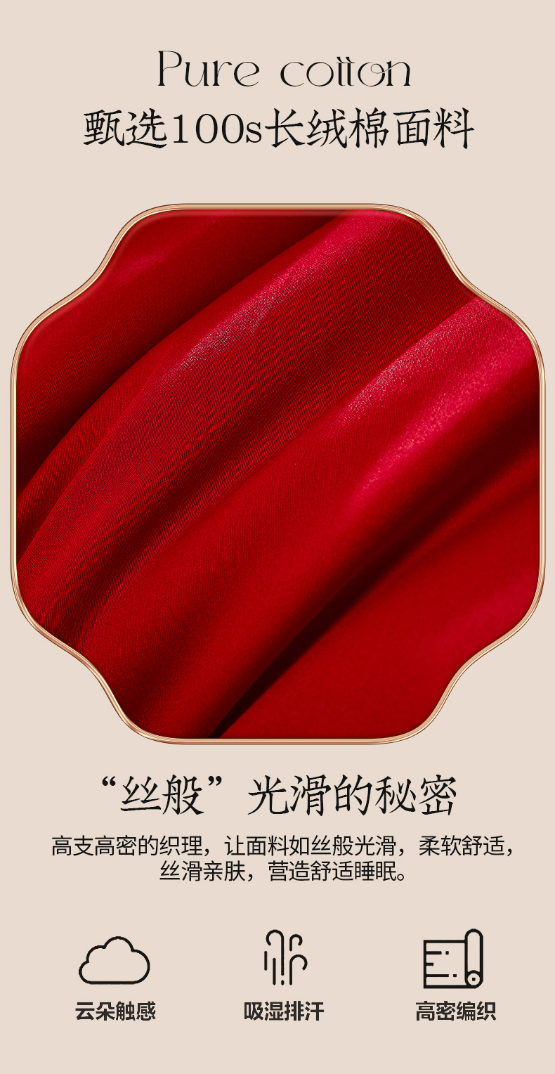 自然醒100支长绒棉轻奢婚庆四件套多件套床裙系列大红纯棉被套床盖床裙结婚简约床品GDS