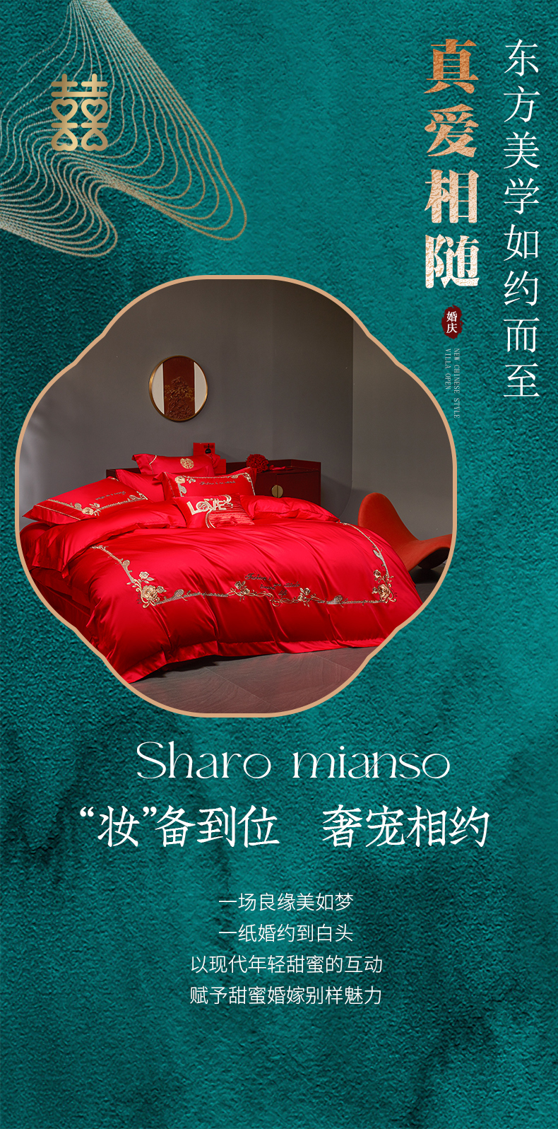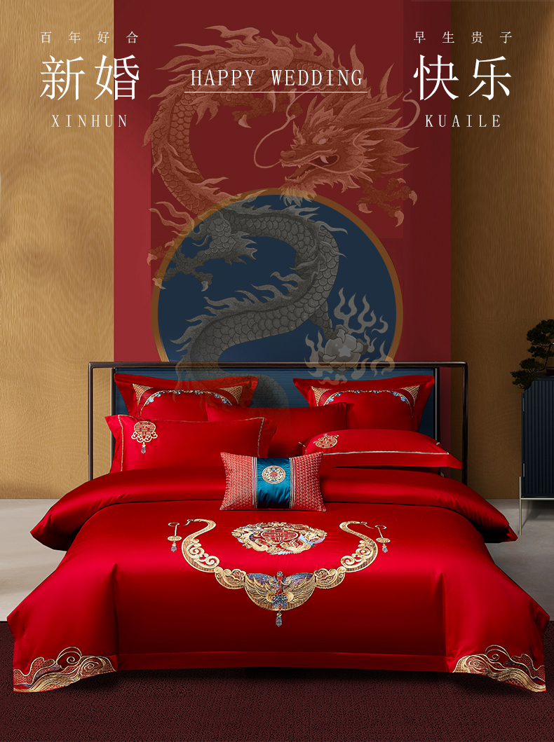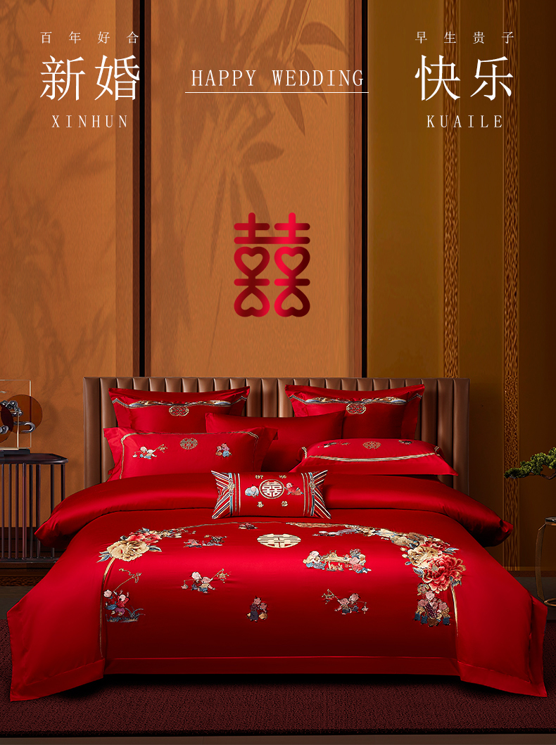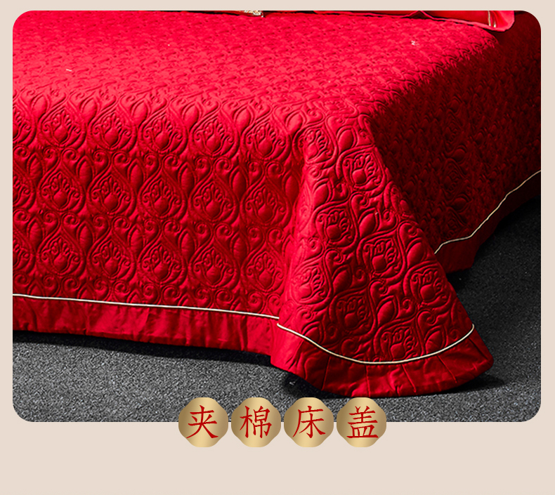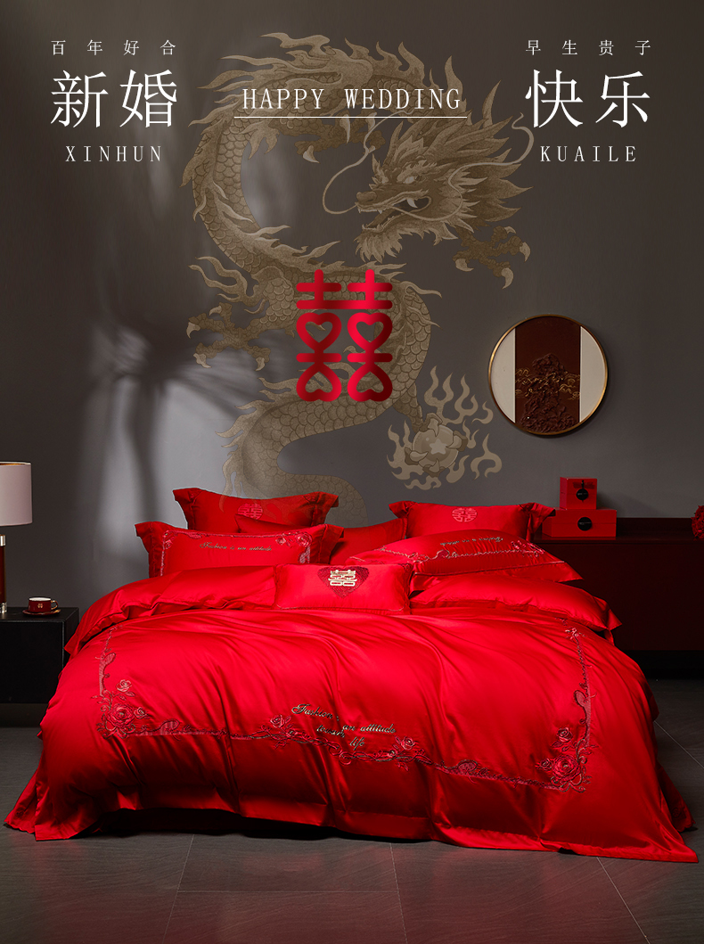 自然醒100支长绒棉轻奢婚庆四件套多件套床裙系列大红纯棉被套床盖床裙结婚简约床品GDS