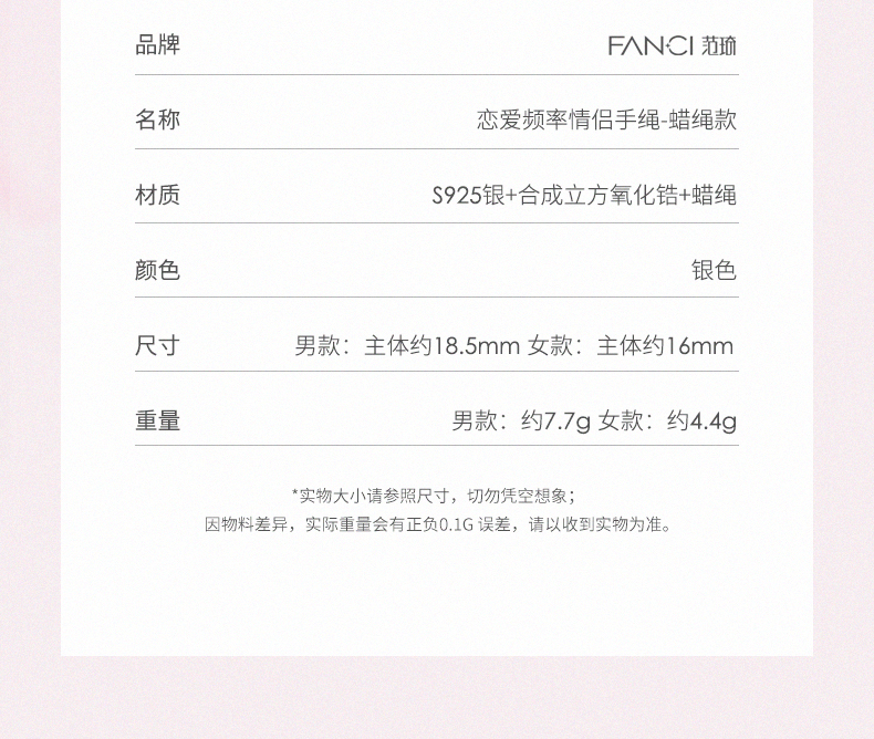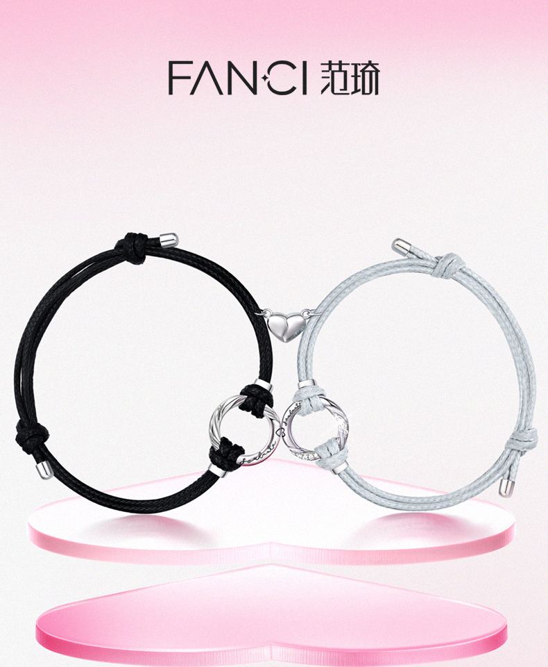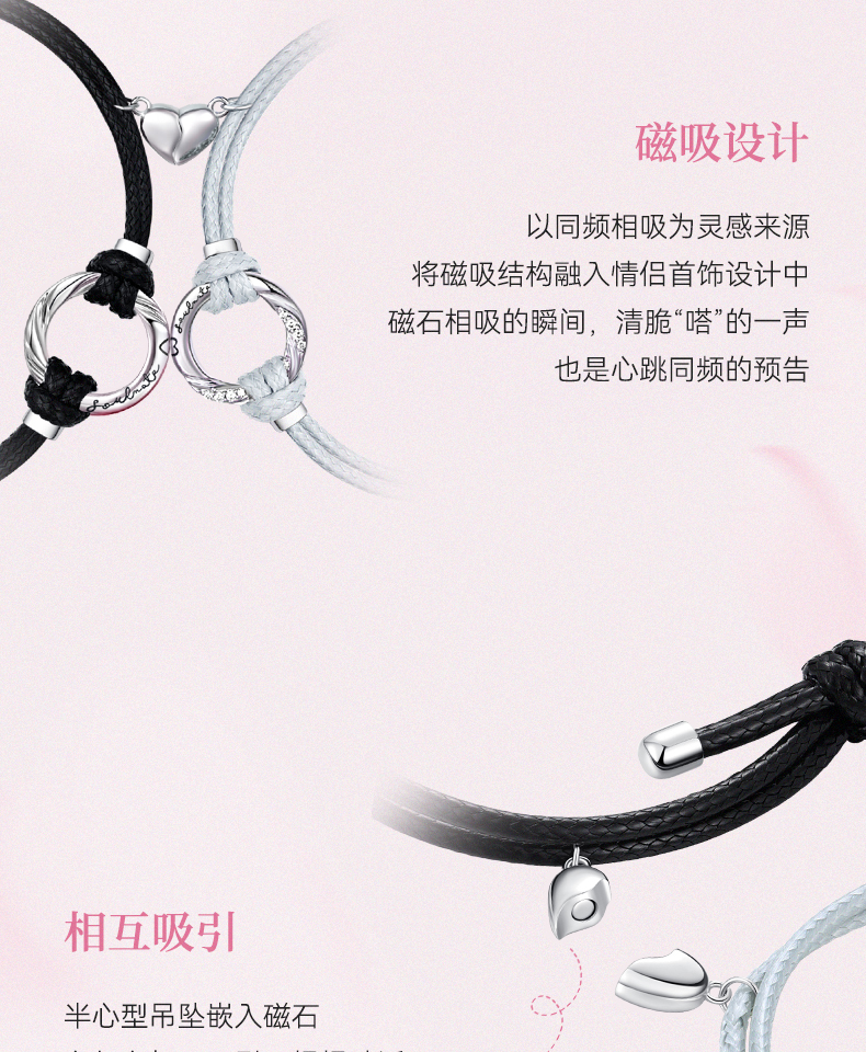 【恋爱频率情侣手绳-蜡绳款】Fanci范琦银饰 恋爱频率系列 爱心磁吸手链 下单即赠精美礼盒+顺丰包邮+运费险