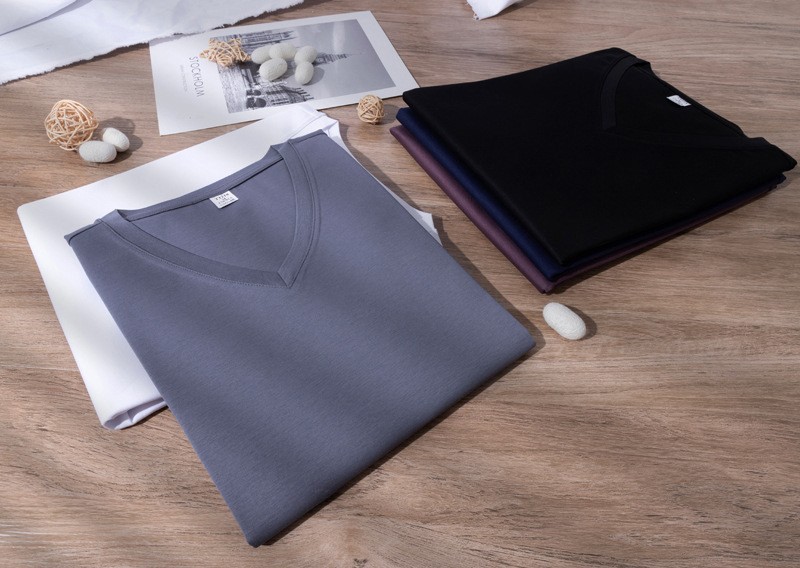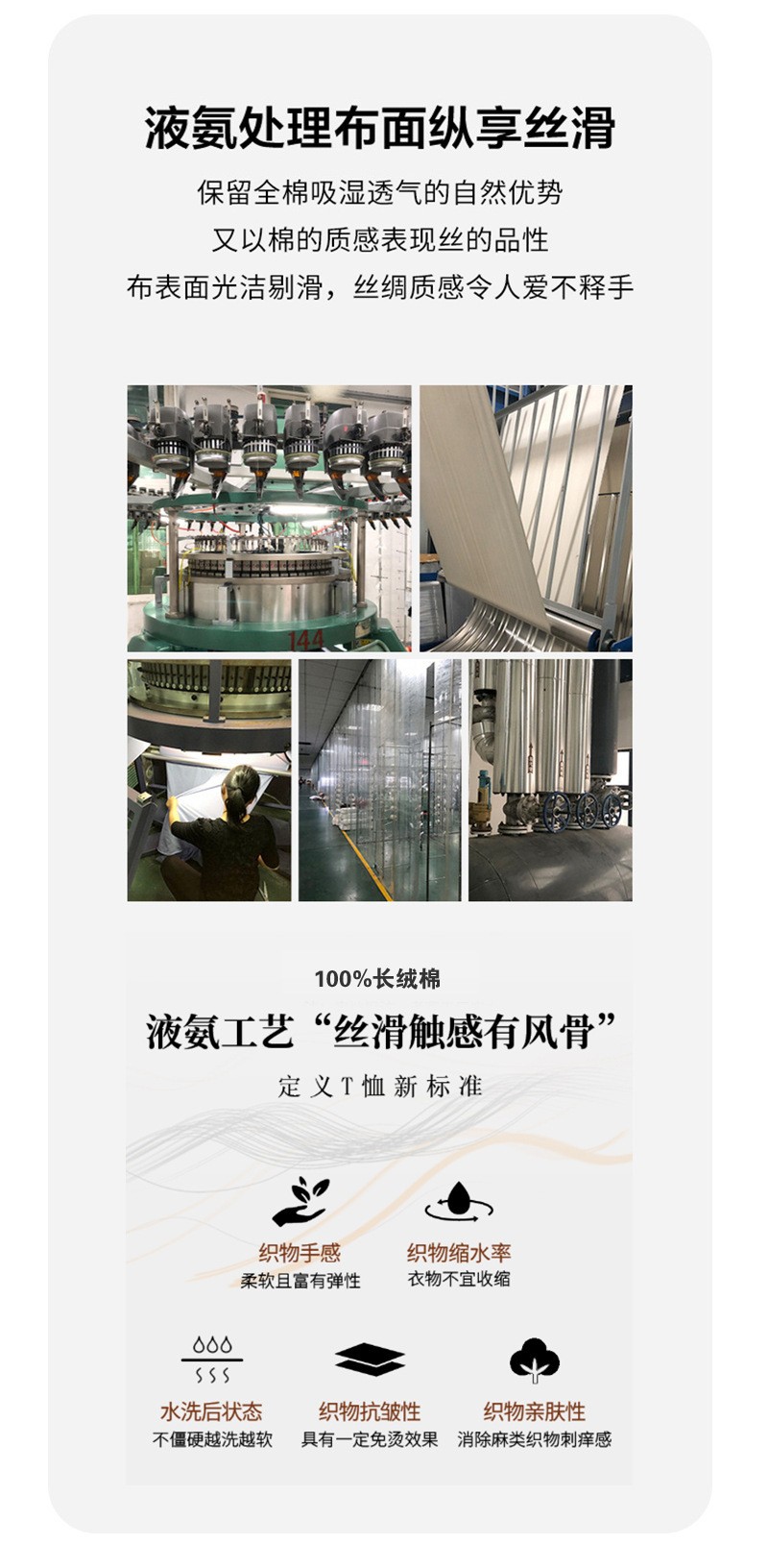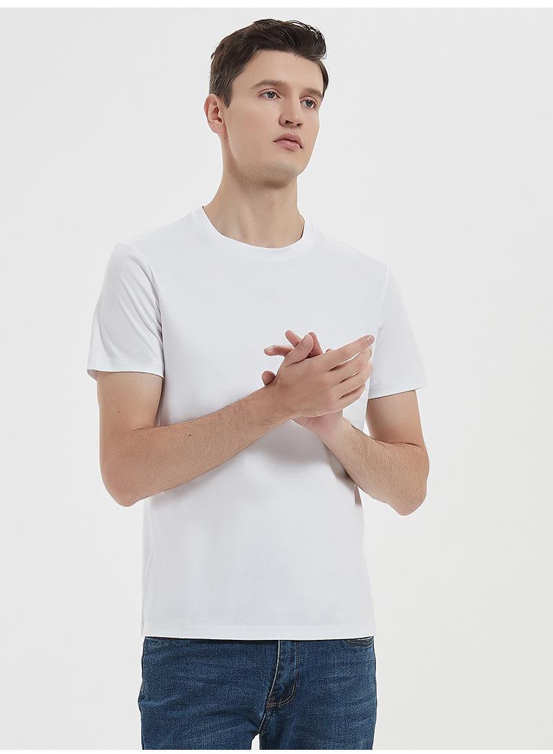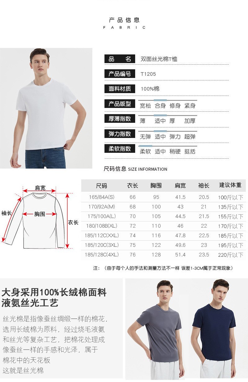 岸纾 100%新疆长绒棉 双面液氨丝光短袖圆领T恤190克男款 T1205