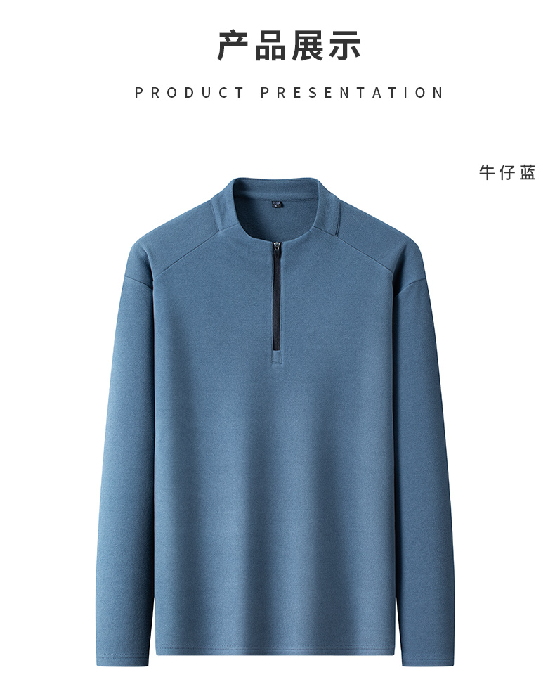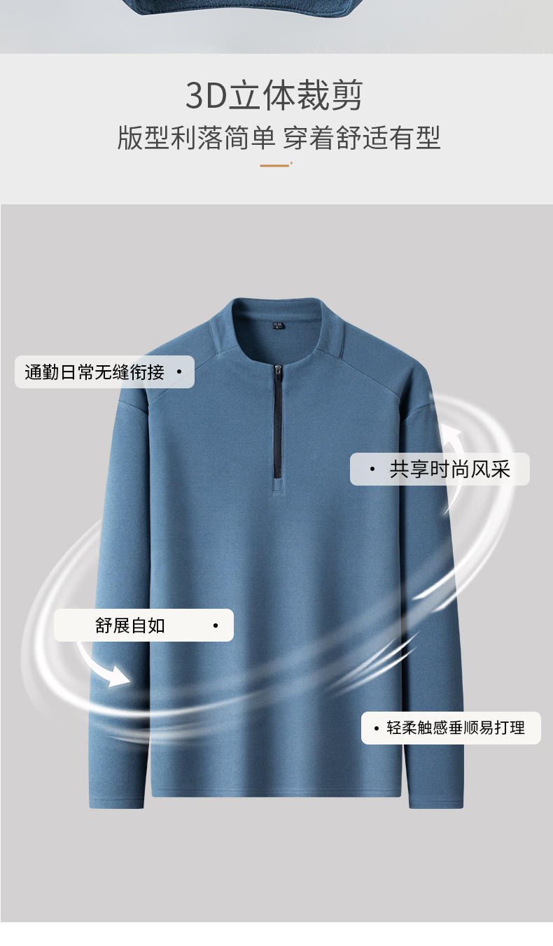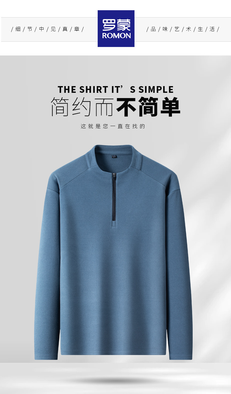 罗蒙男士秋冬长袖打底衫休闲撞色半拉链设计通勤T恤半高领打底衫