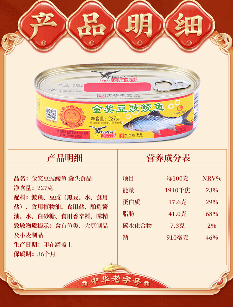 鹰金钱牌拉盖金奖豆豉鲮鱼(TY)
