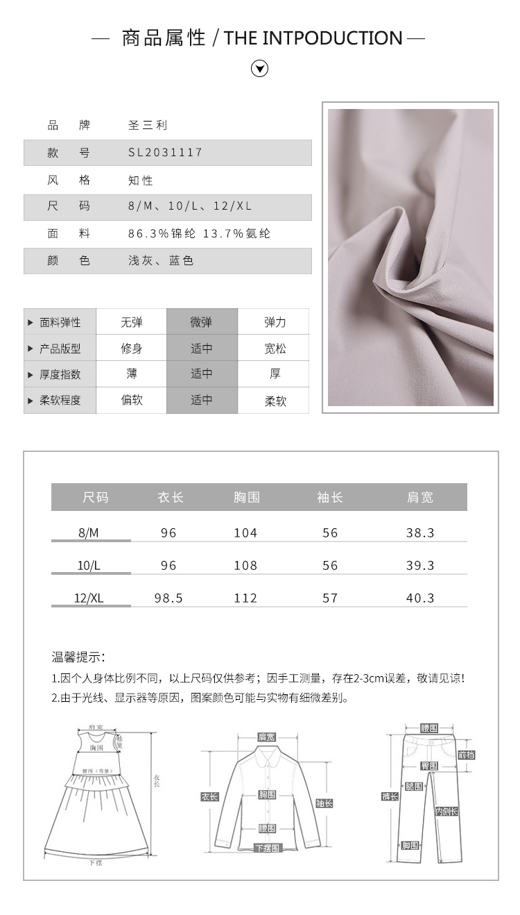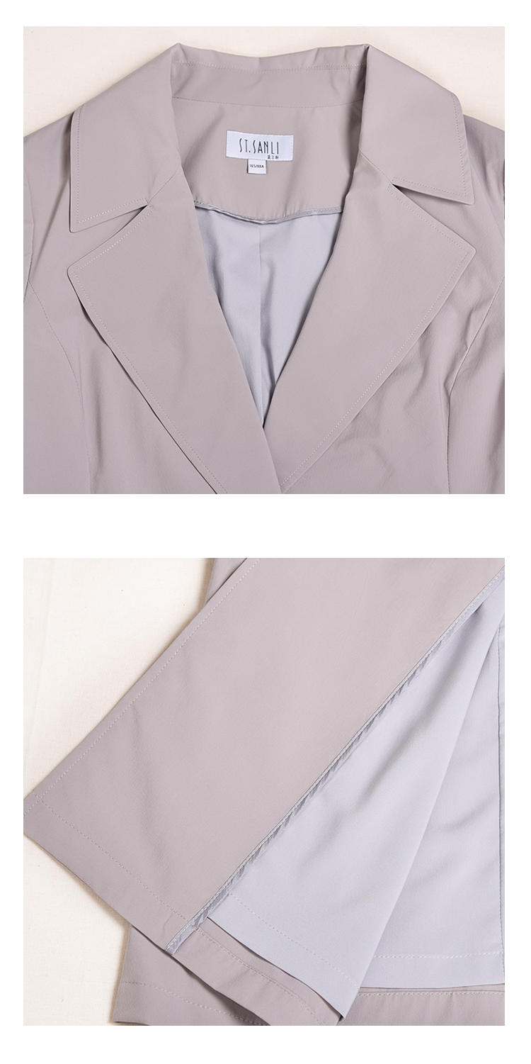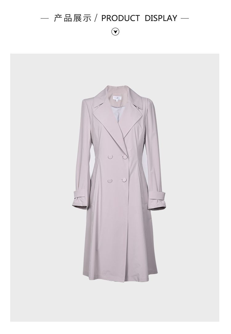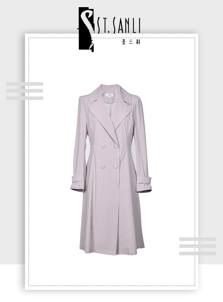 圣三利女装 新品优雅轻薄款收腰散摆纯色风衣SL2031117