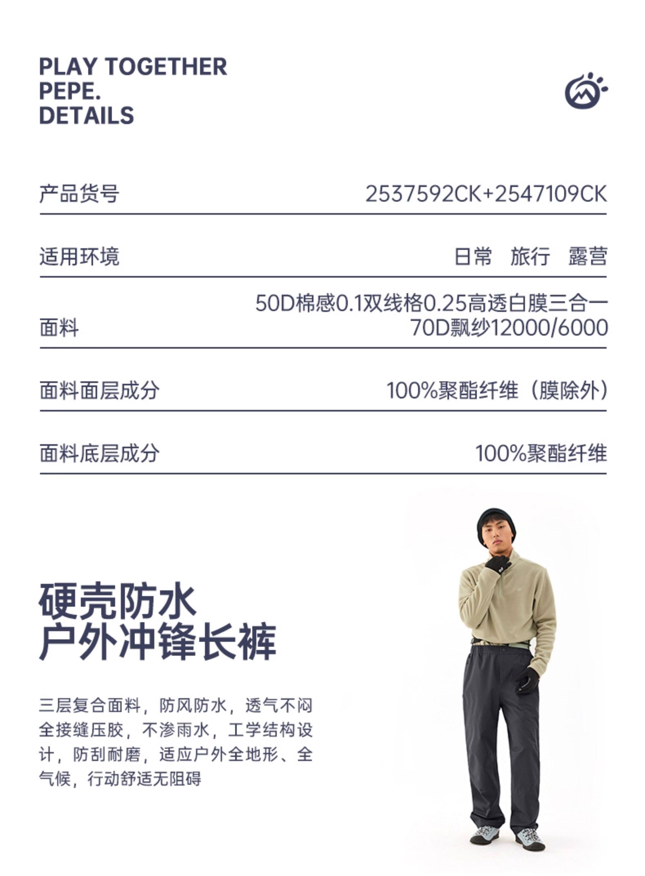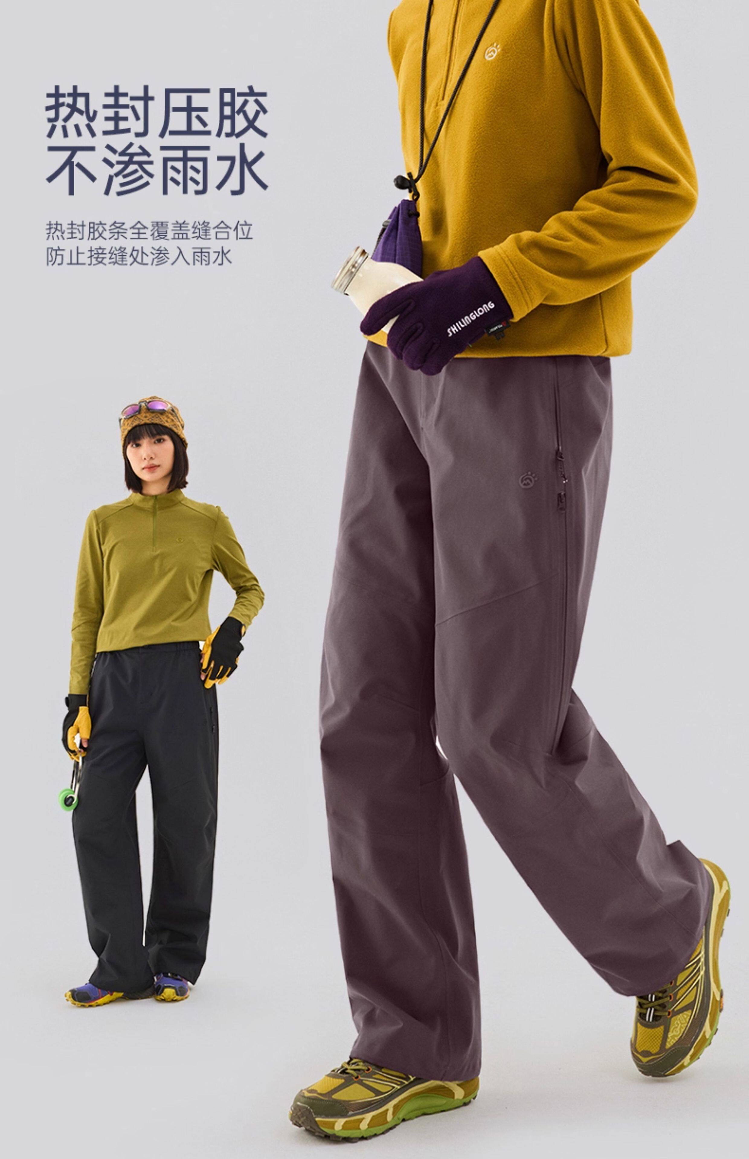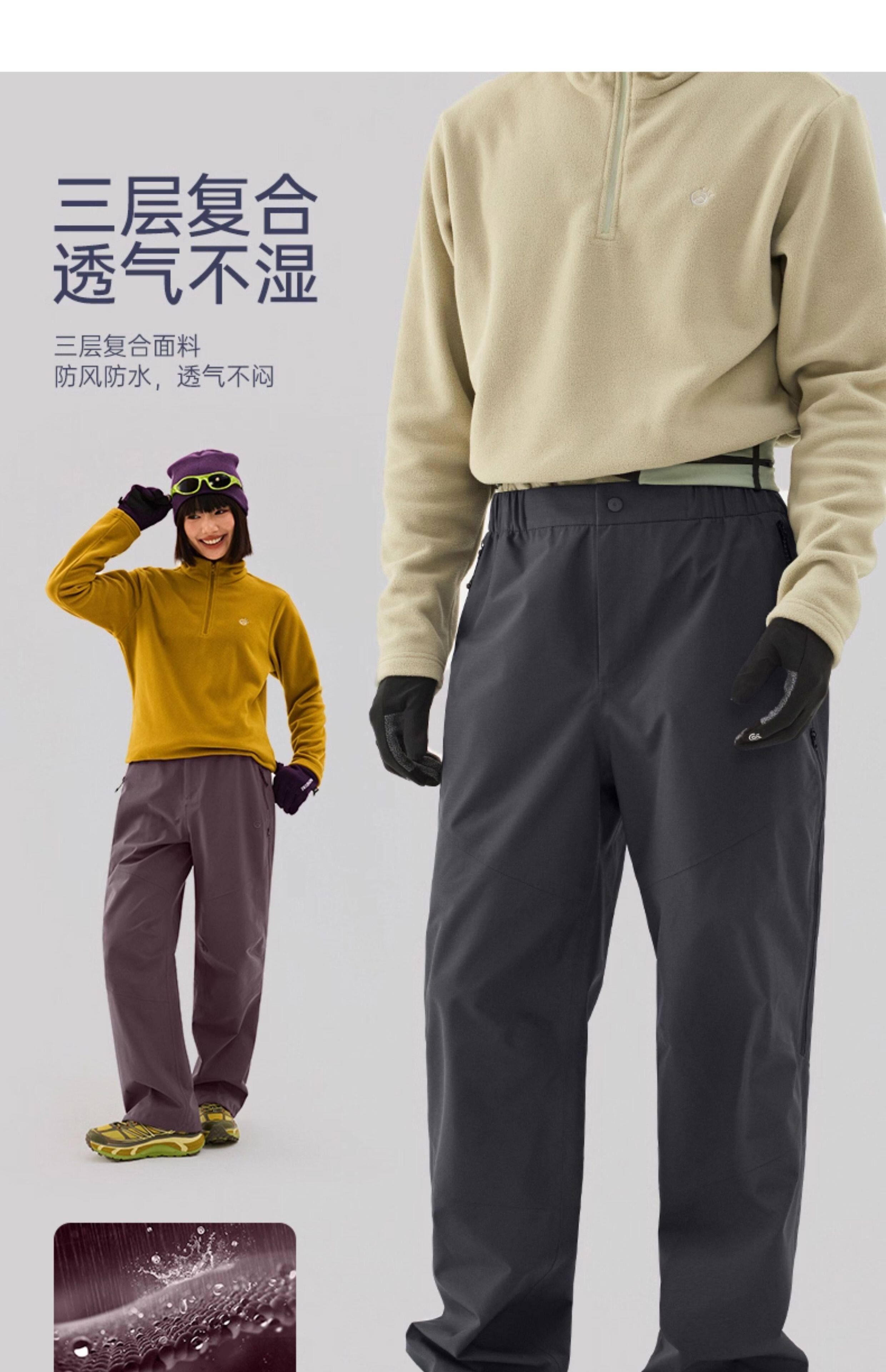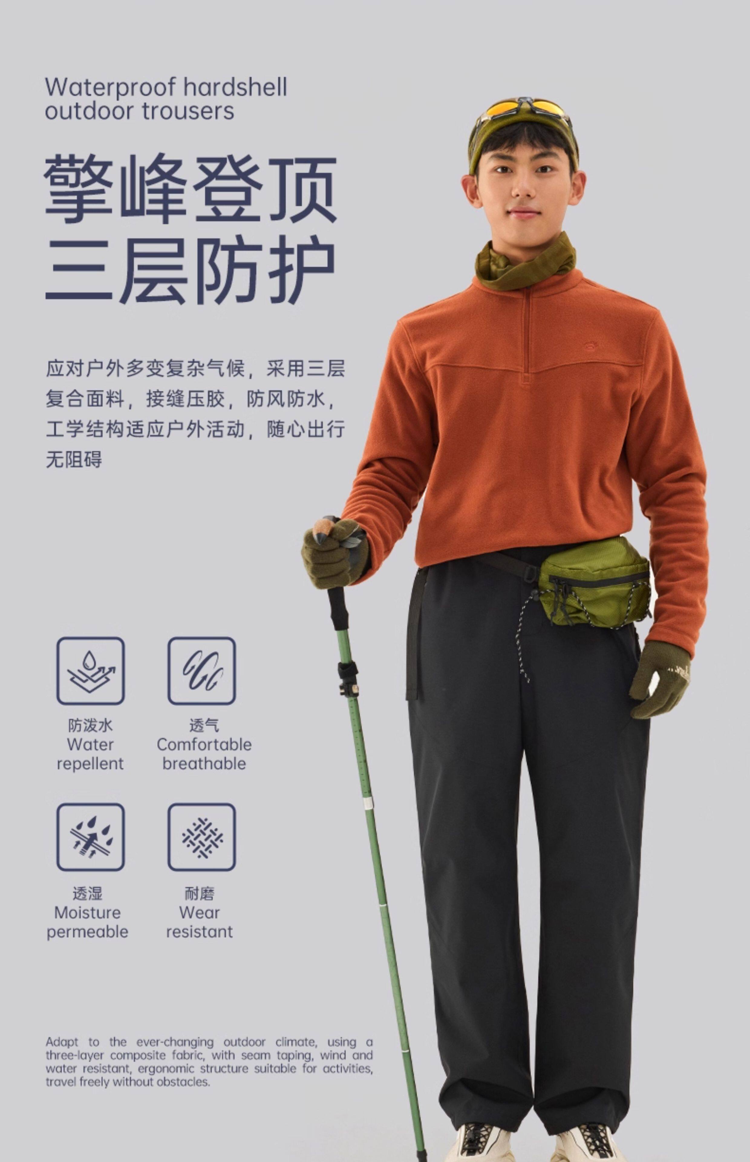 【攀峰】探拓户外硬壳冲锋裤男士防风徒步登山裤暴雨级防水长裤女