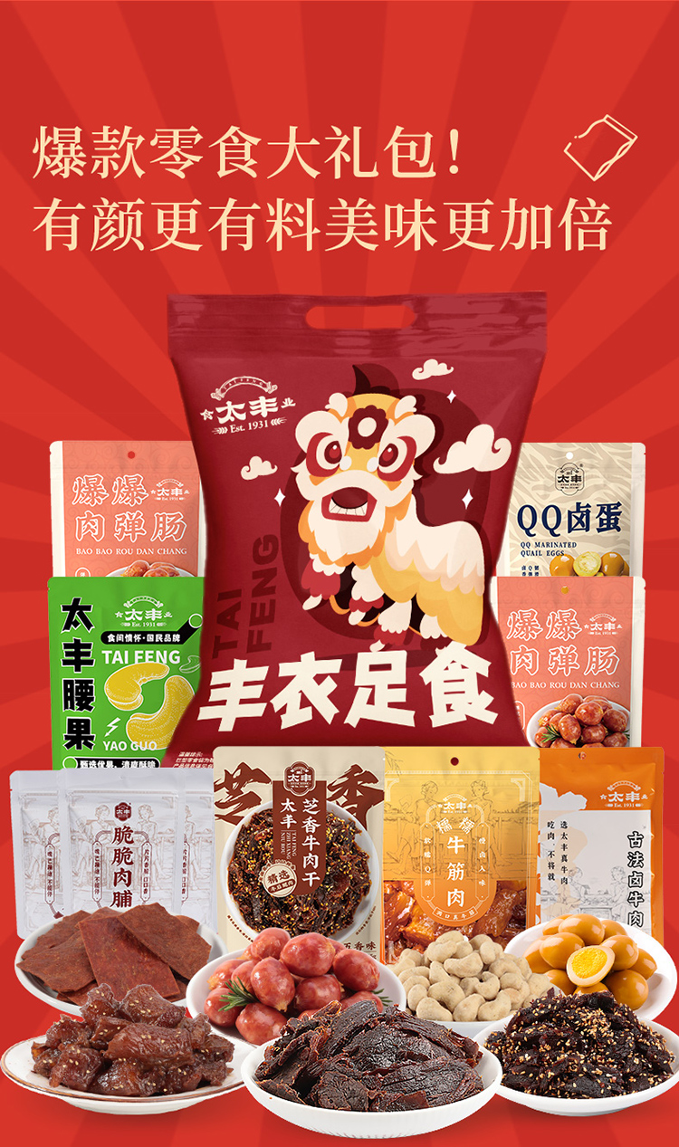 太丰手撕牛肉干脆肉脯腰果网红零食解馋丰衣足食多肉零食大礼包