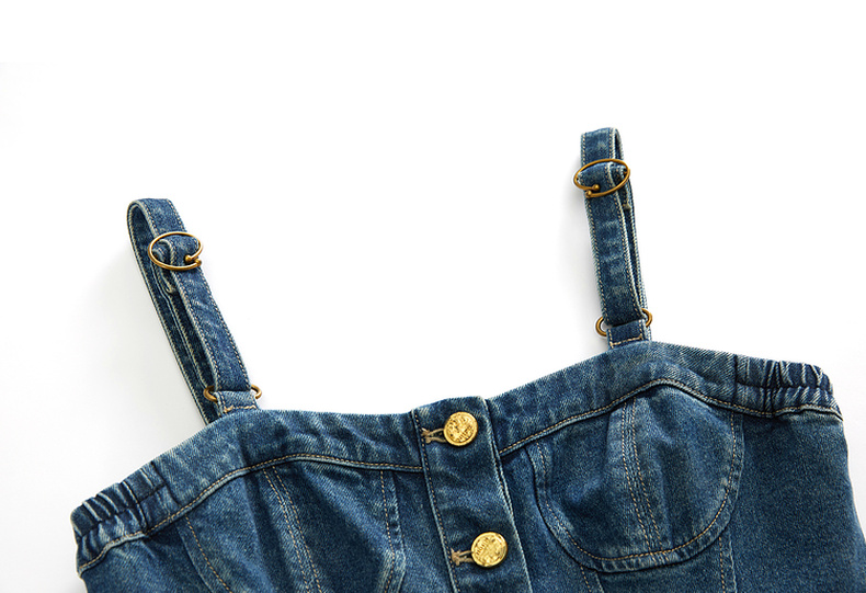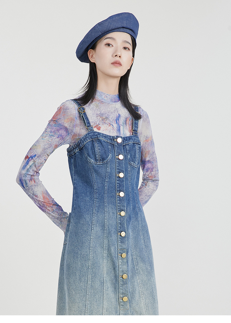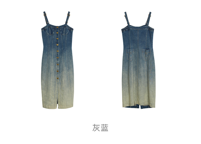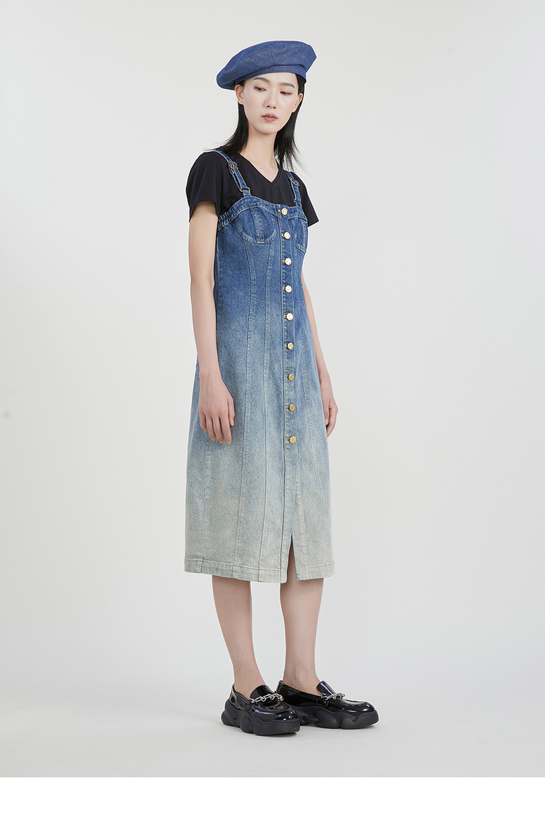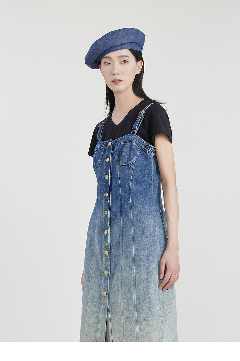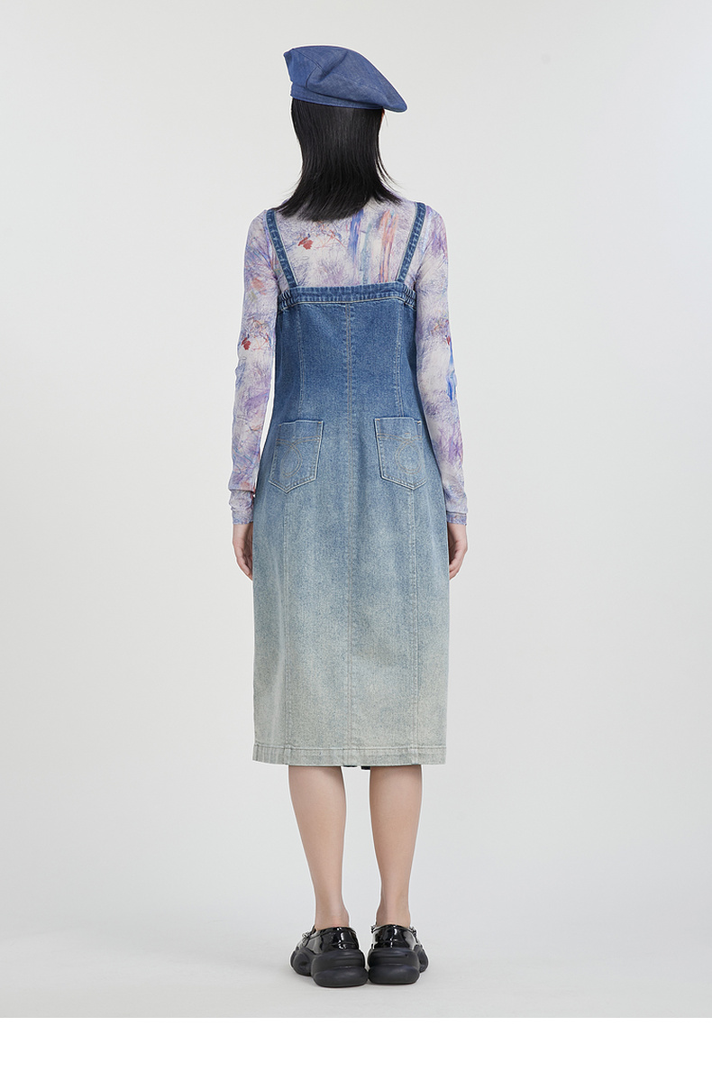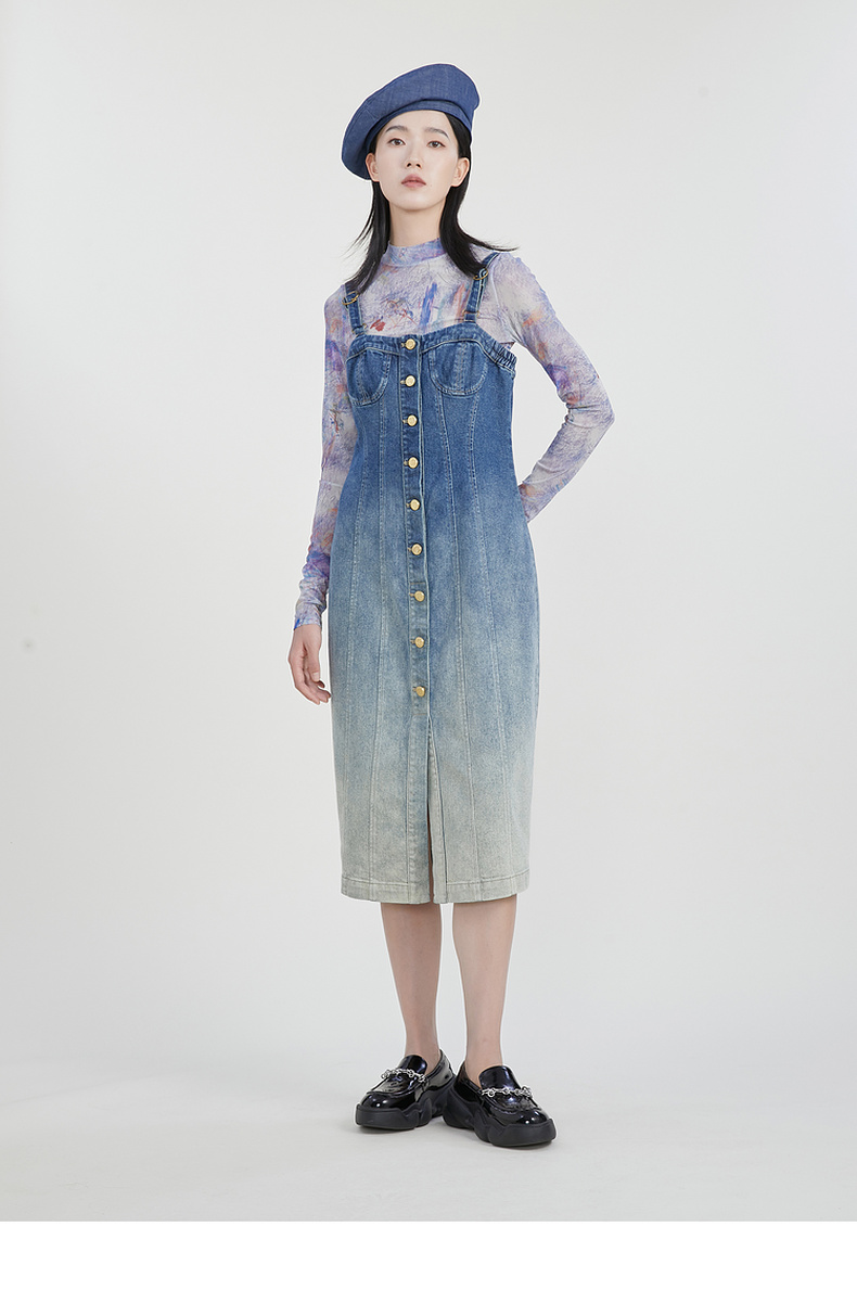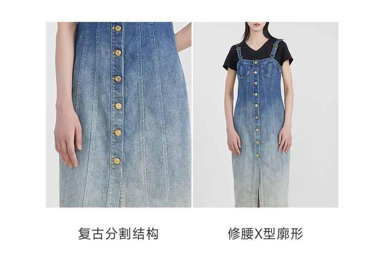 谜底长款吊带裙23春新款复古渐变色时尚牛仔连衣裙无袖231ML0023