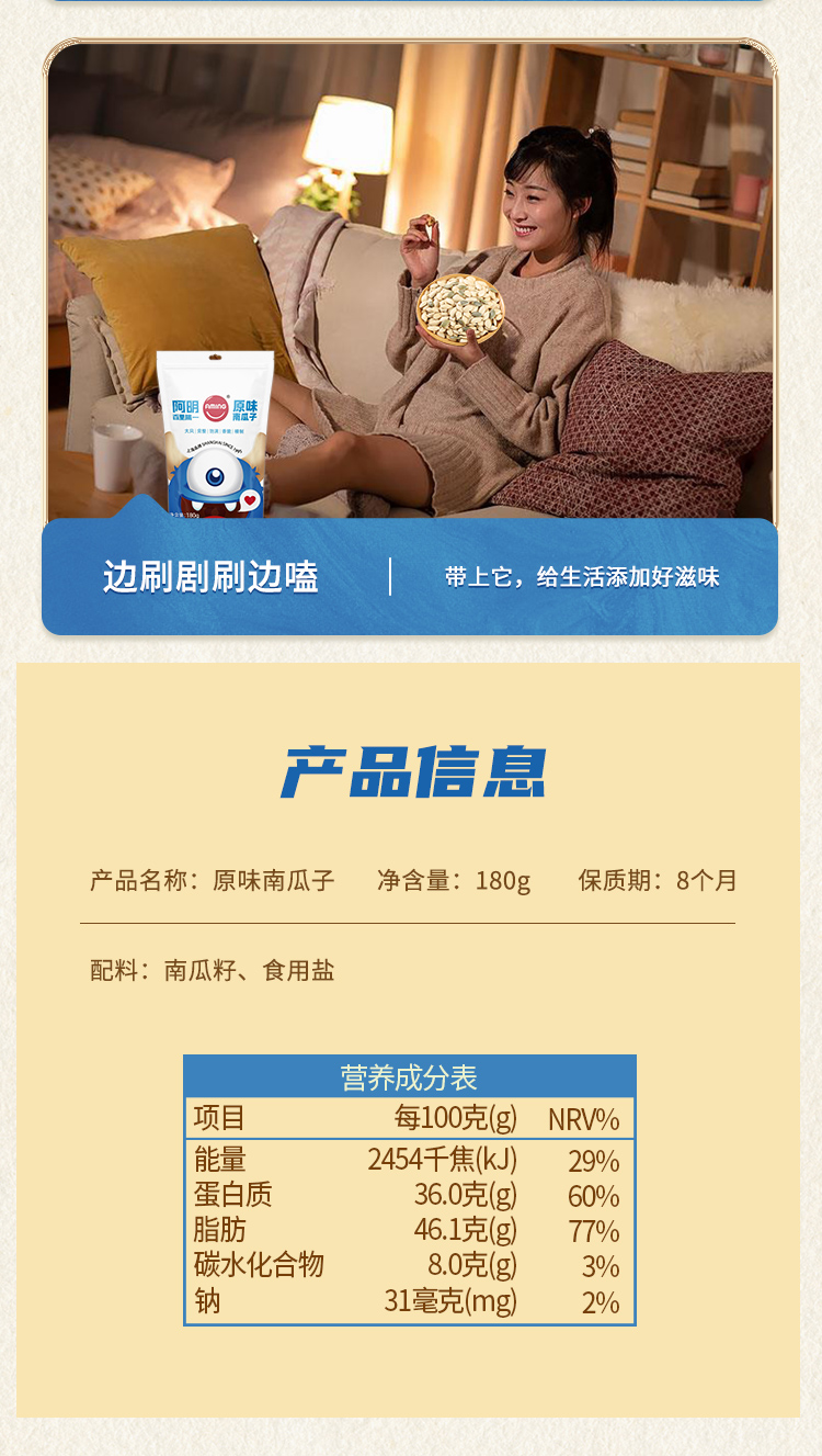 阿明 原味南瓜子180g*2