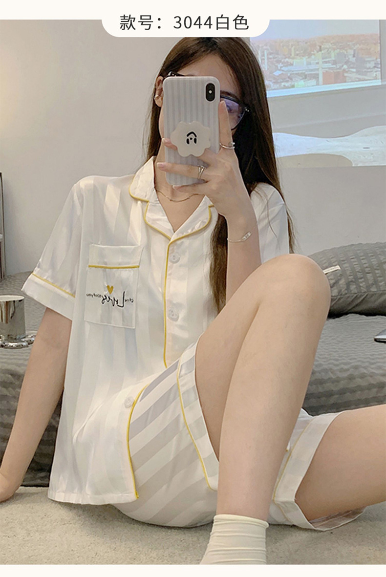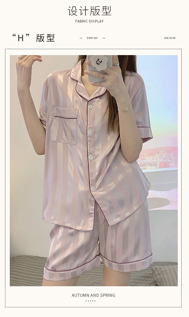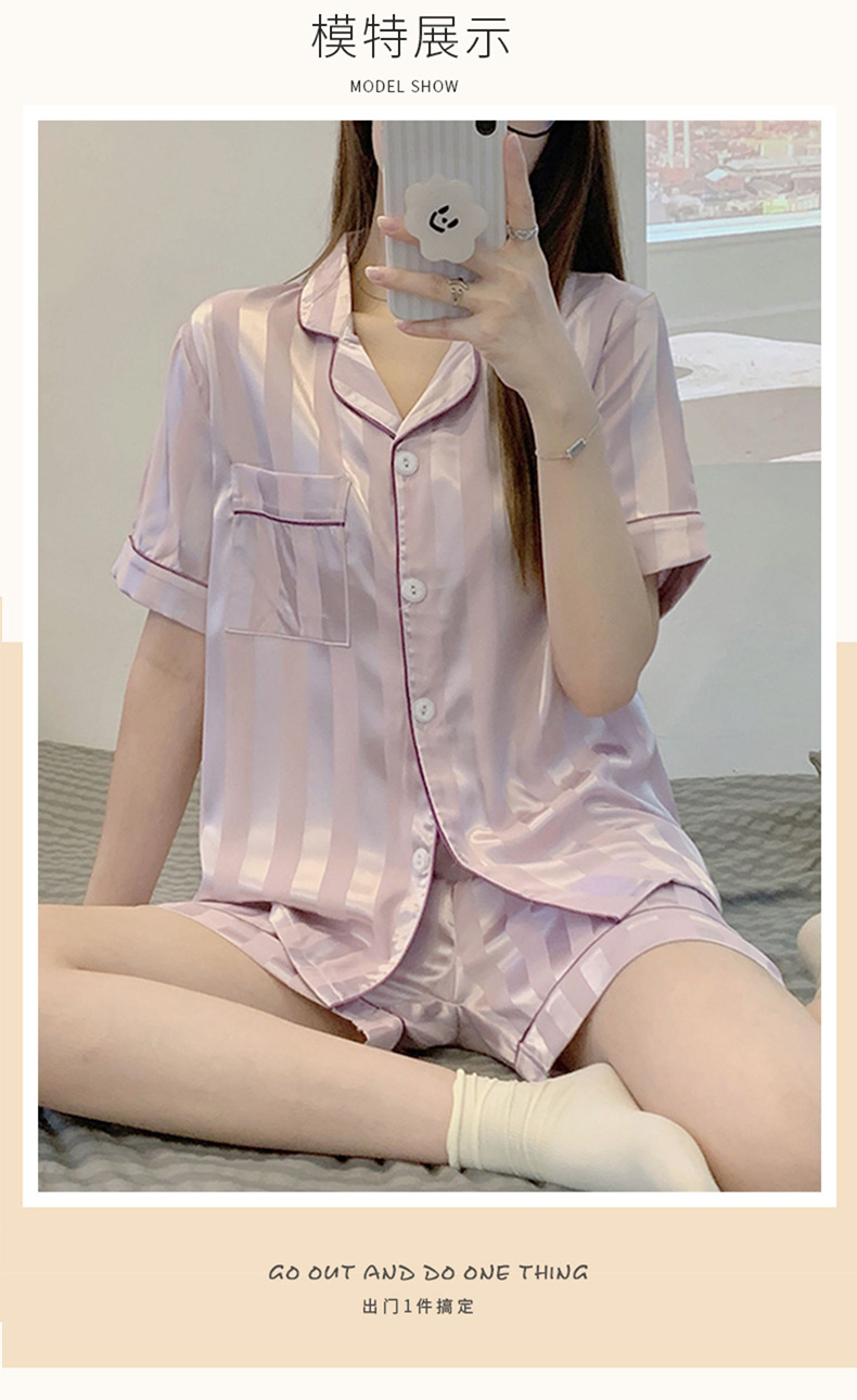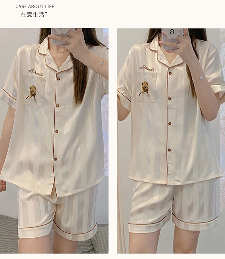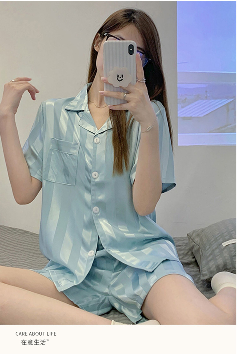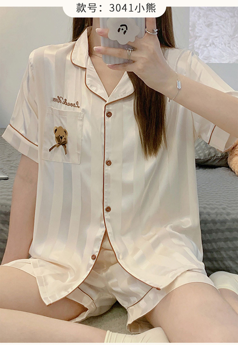 冰丝睡衣女开衫衬衫睡衣高级感法式睡衣夏季韩版短袖短裤可外穿薄款夏天家居服套装