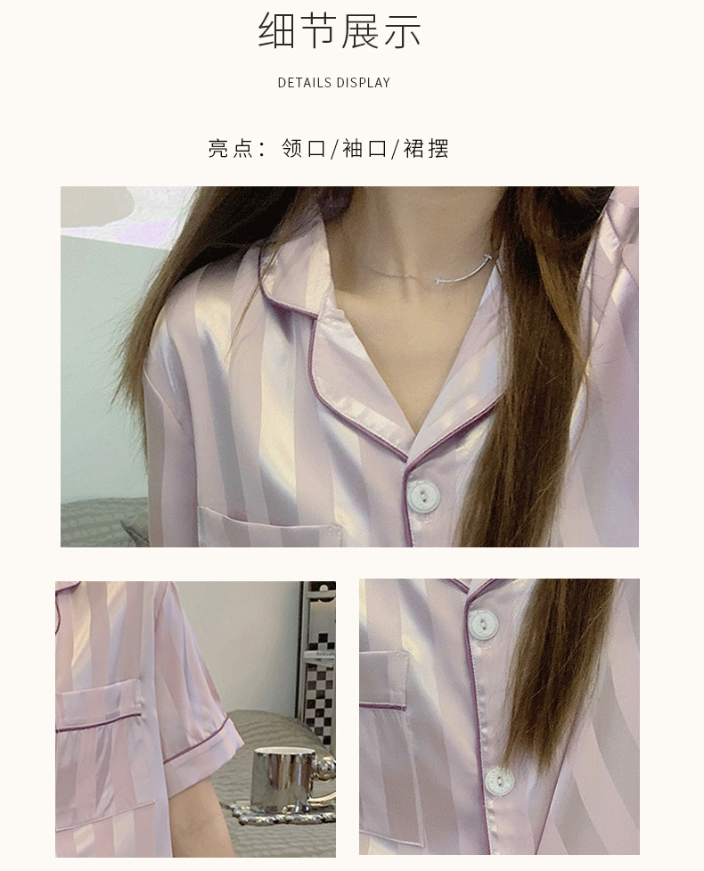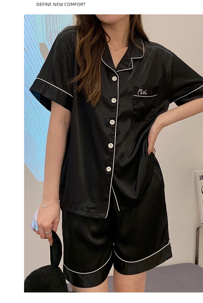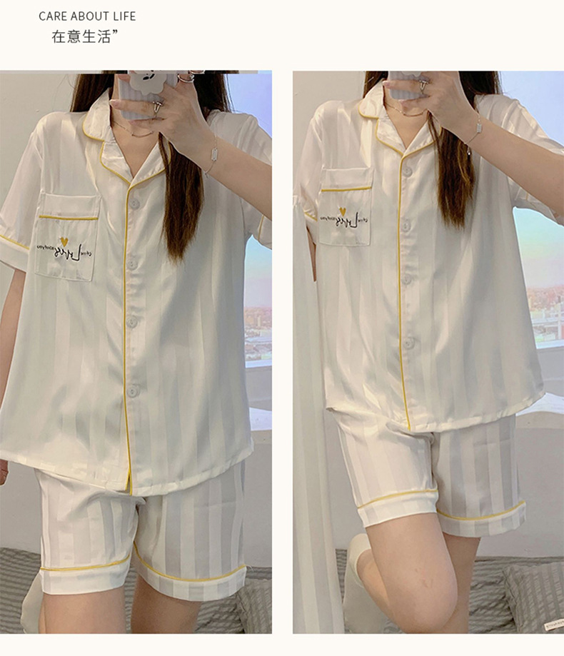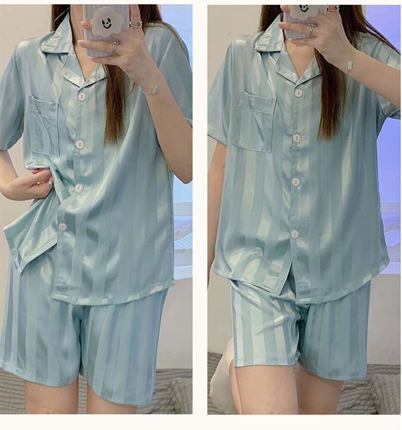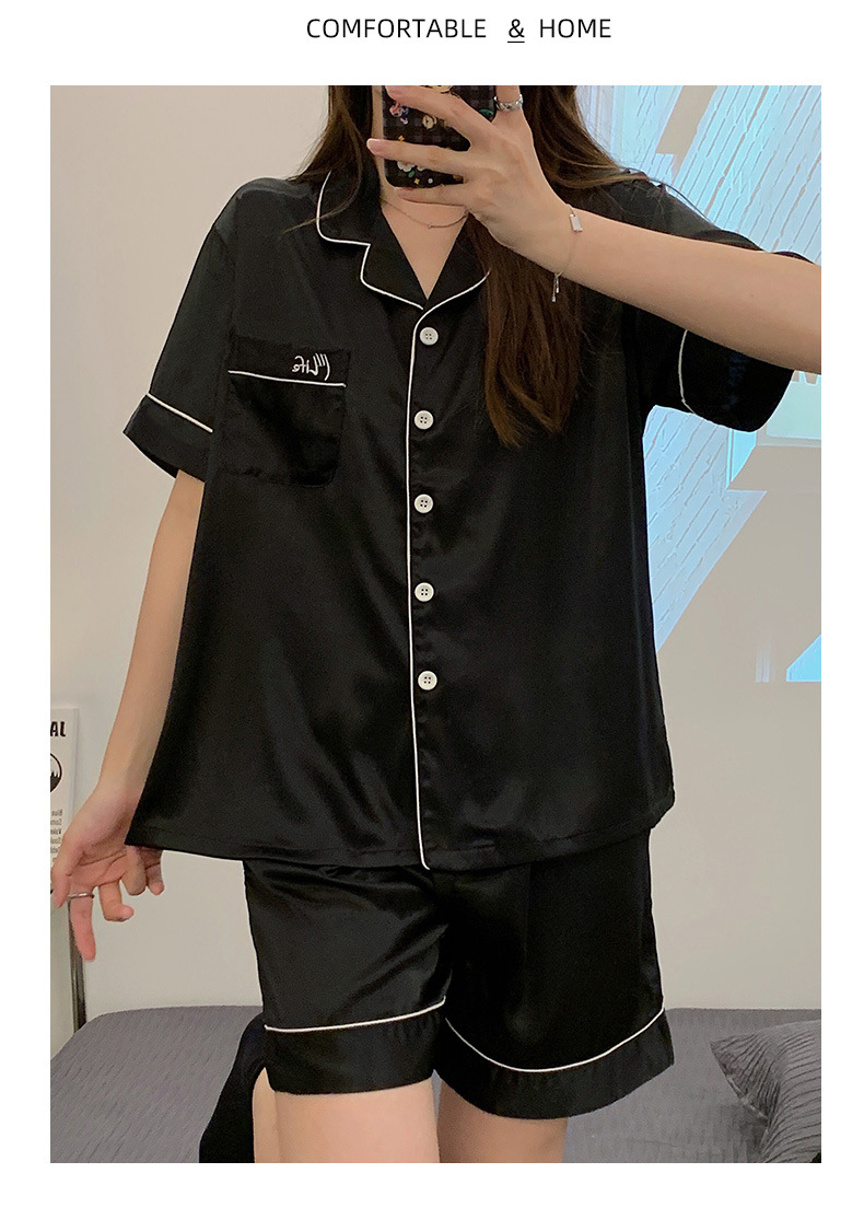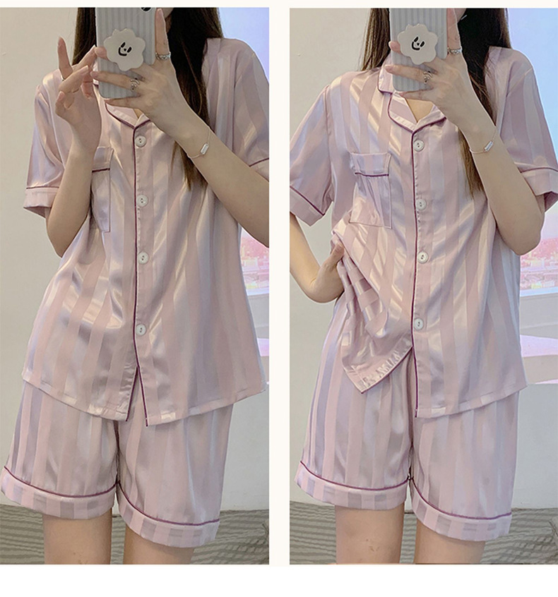 冰丝睡衣女开衫衬衫睡衣高级感法式睡衣夏季韩版短袖短裤可外穿薄款夏天家居服套装