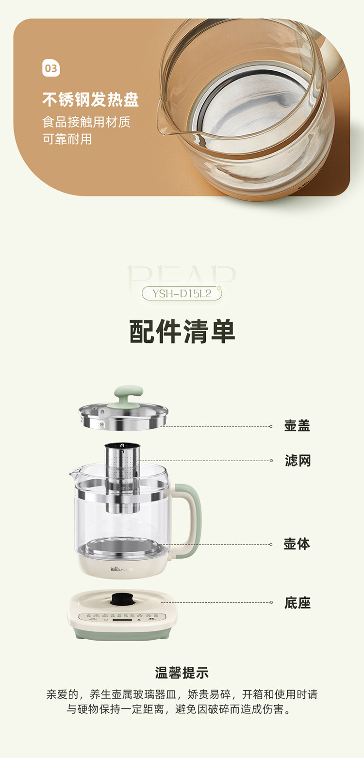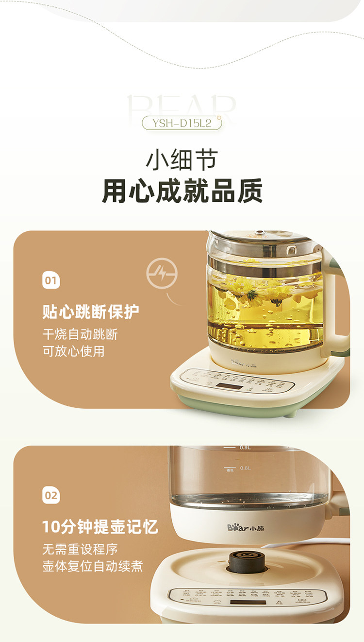 小熊(Bear)304滤网养生壶电热水壶1.5L (无货退款)