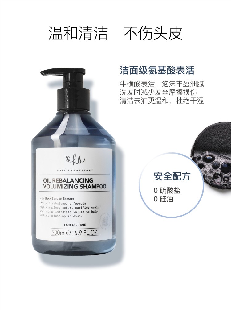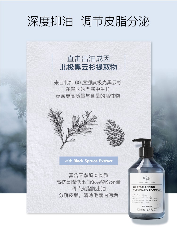 【专柜】Hair Laboratory 黑云杉控油洗发水高颅顶氨基酸无硅洗发水500ml