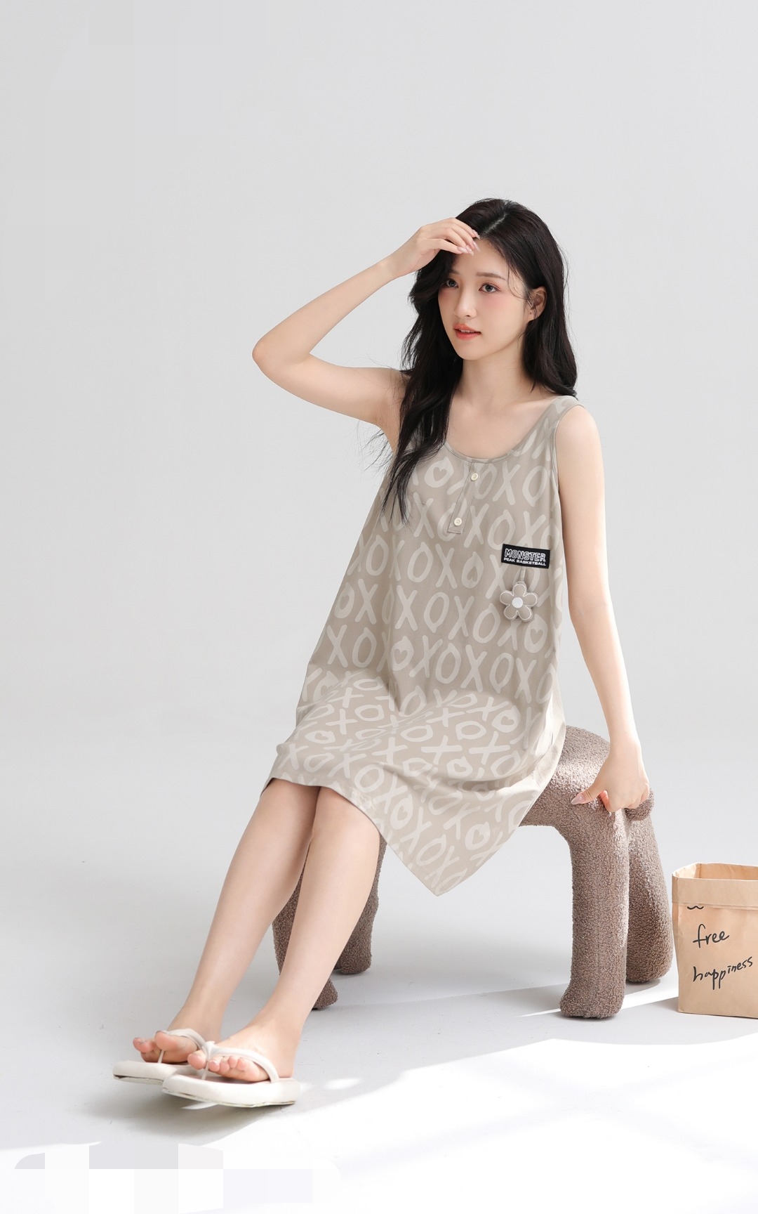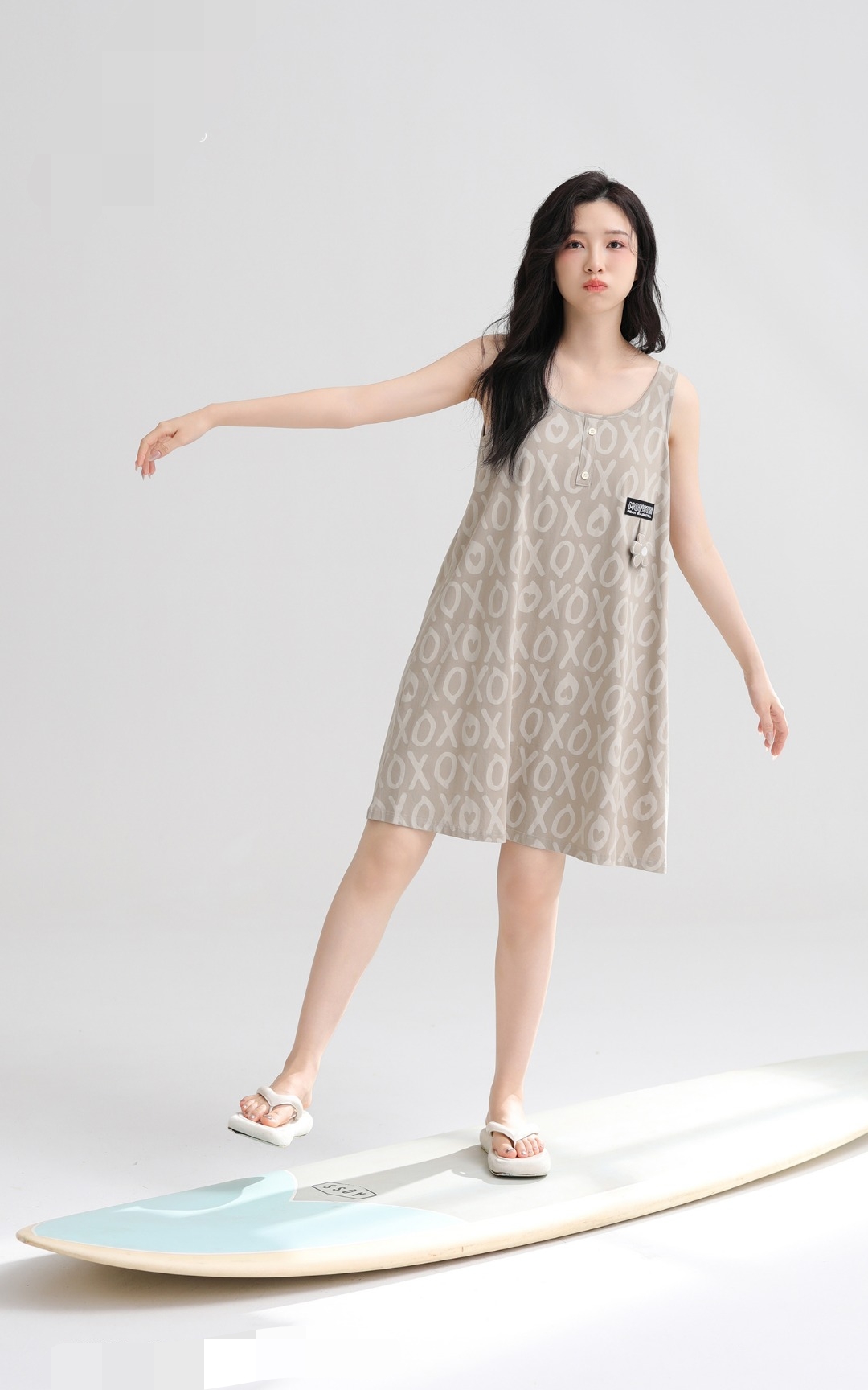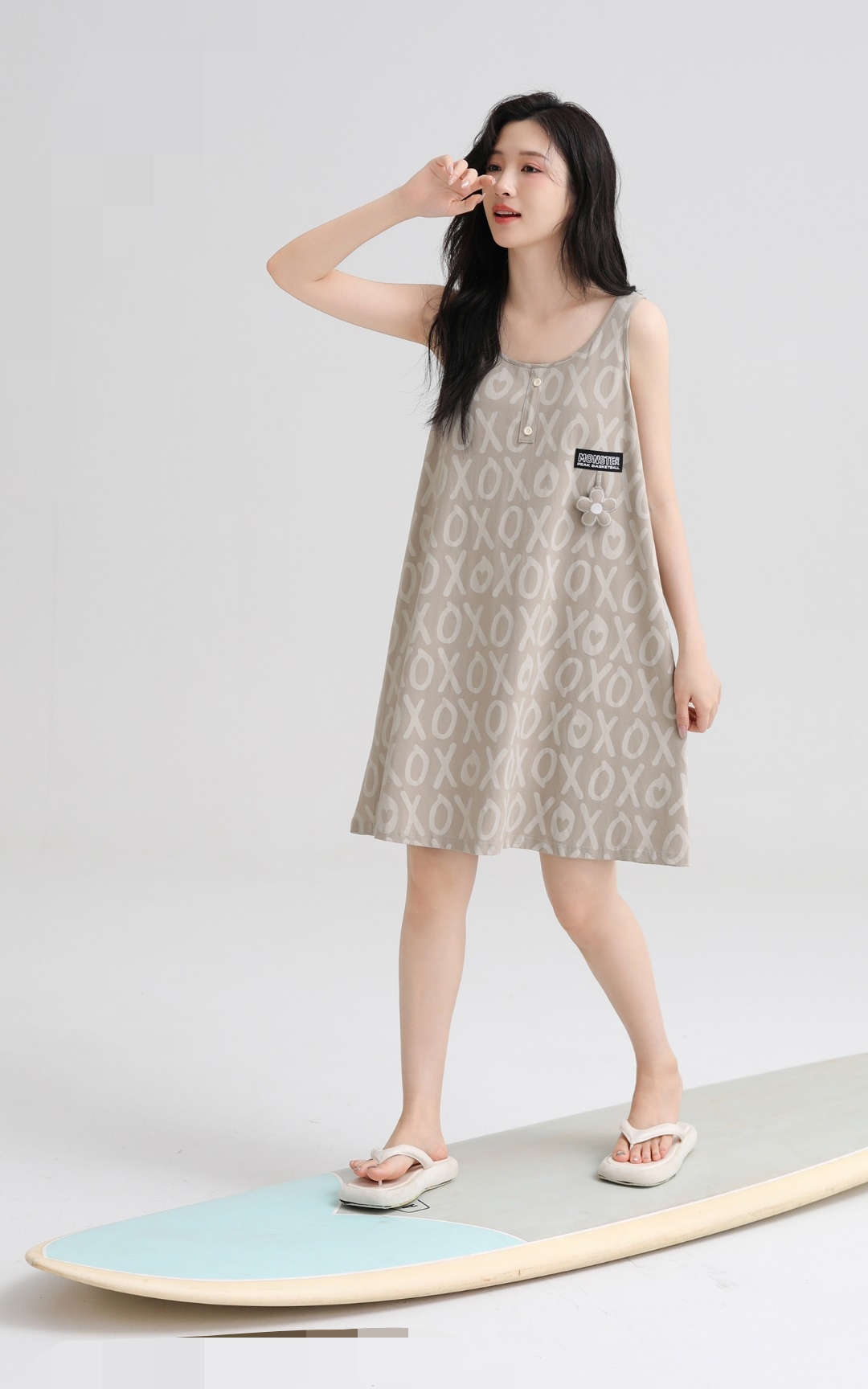 女士夏季针织吊带连衣裙家居裙室内外穿居家服睡裙【A51633】