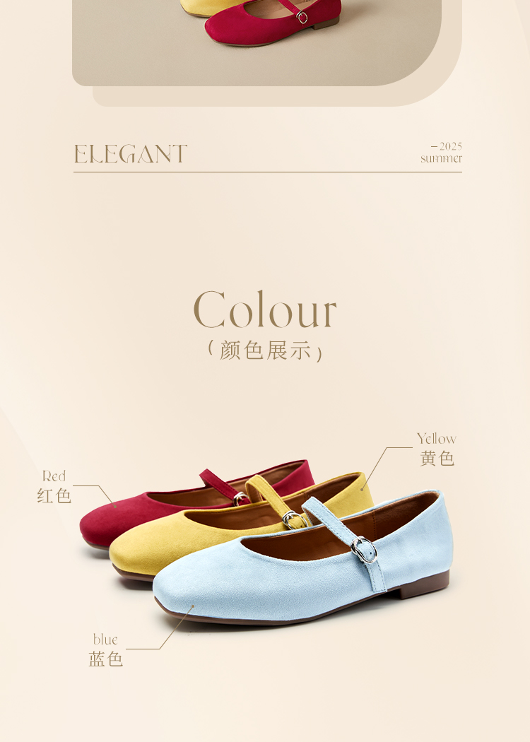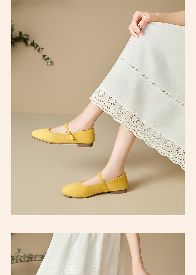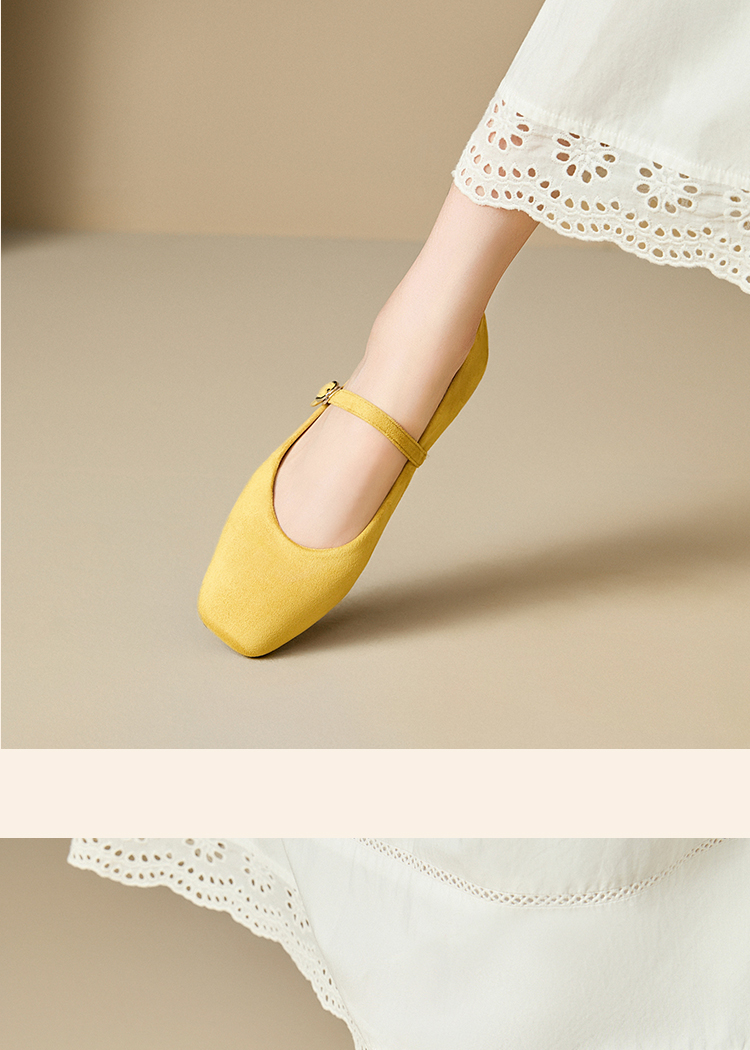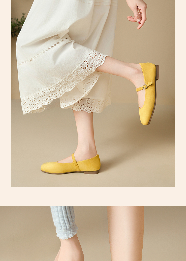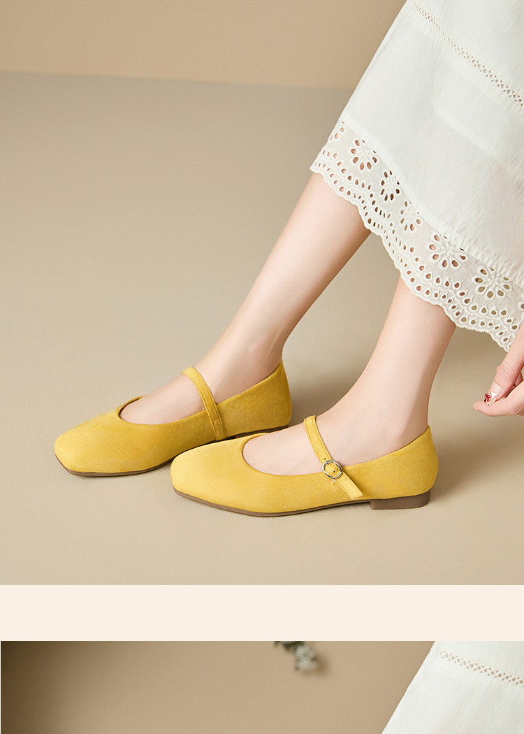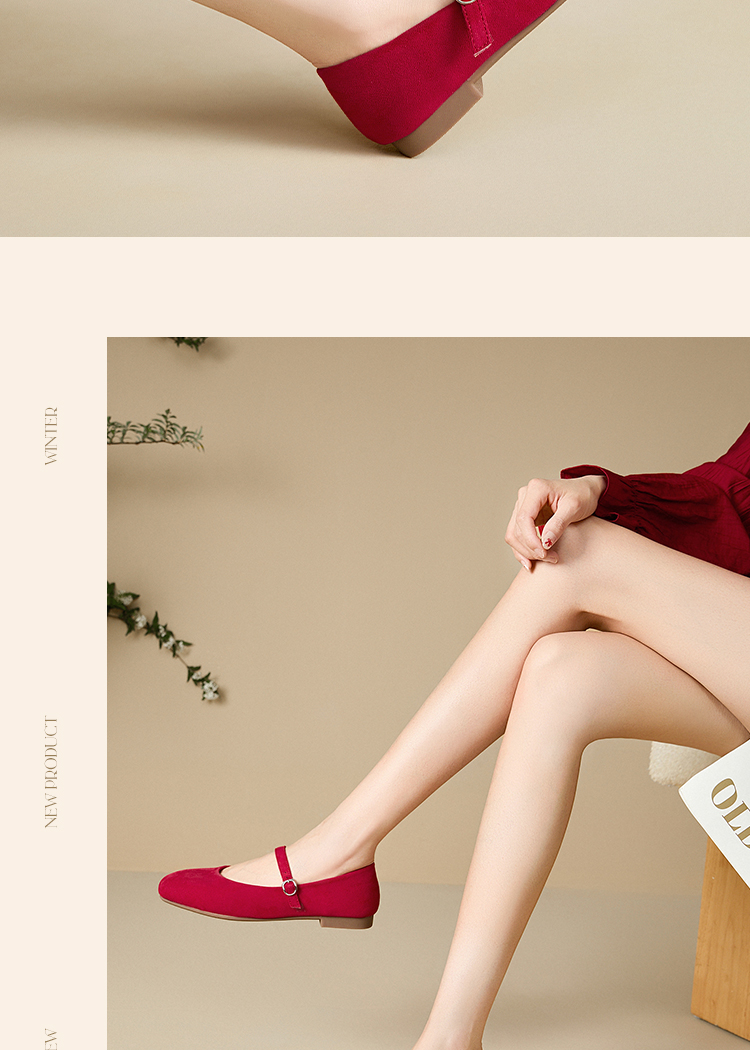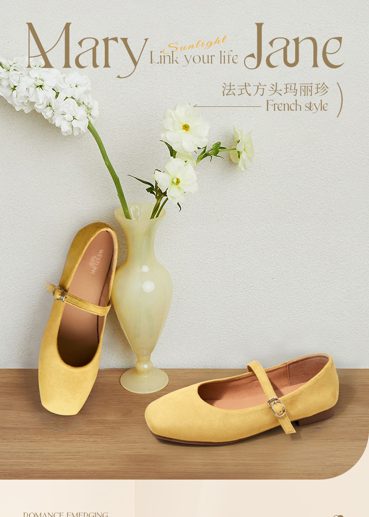 西遇平底玛丽珍女鞋新款春夏法式方头芭蕾鞋浅口软底红色单鞋D0156593