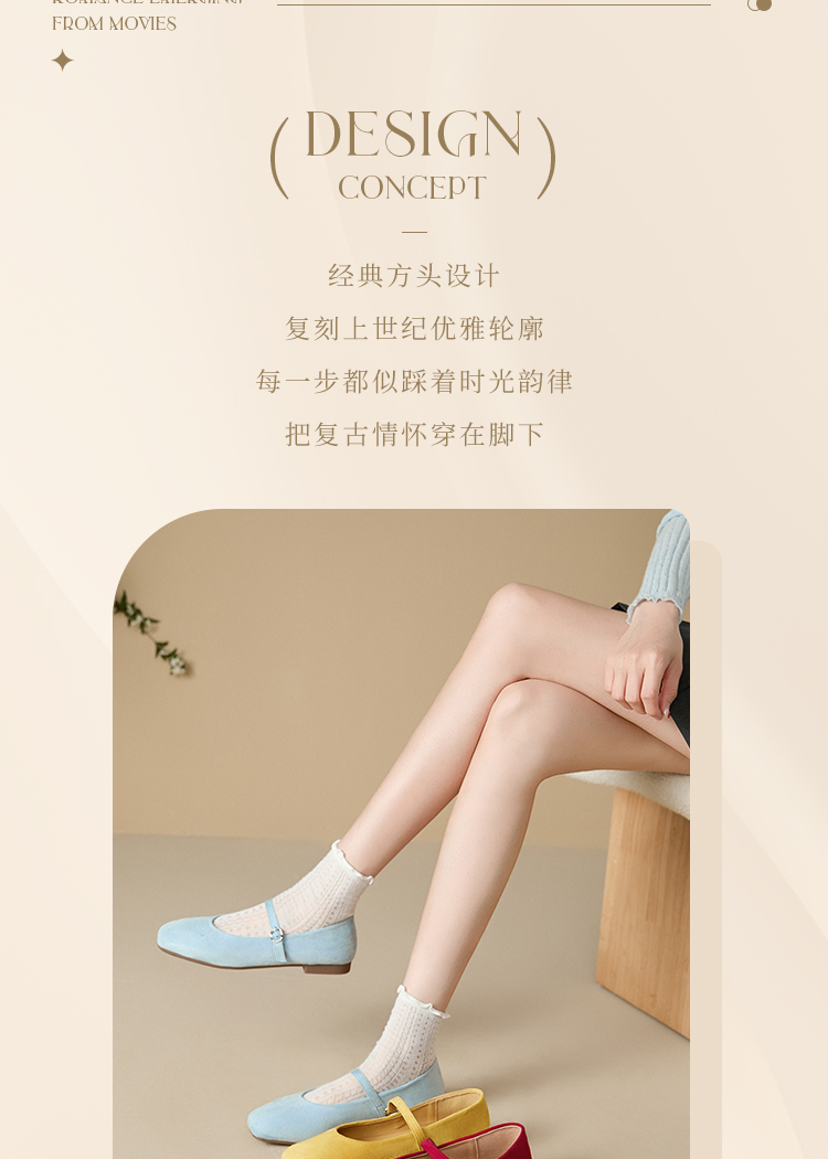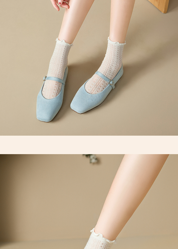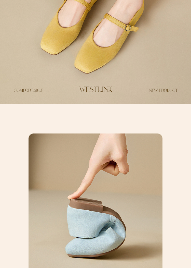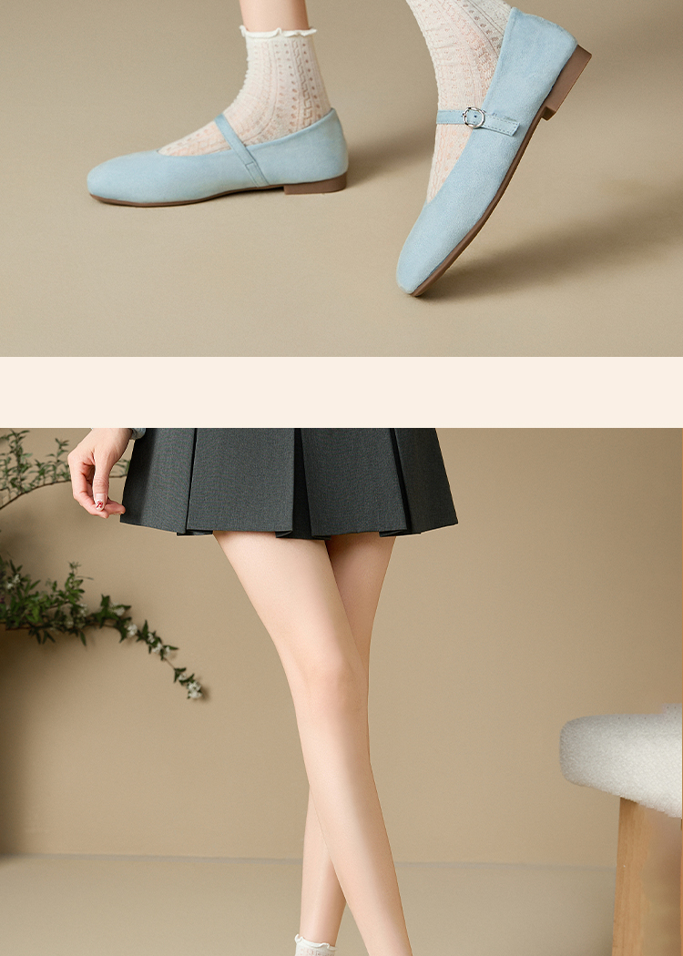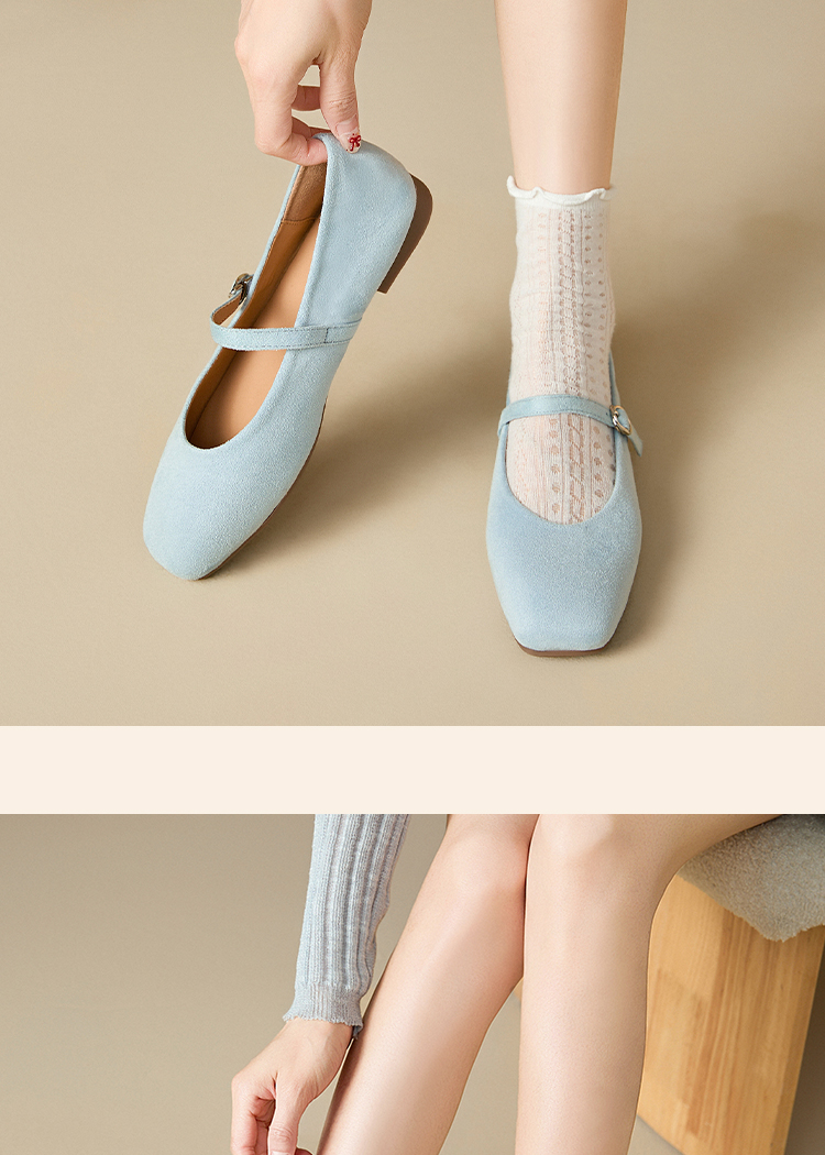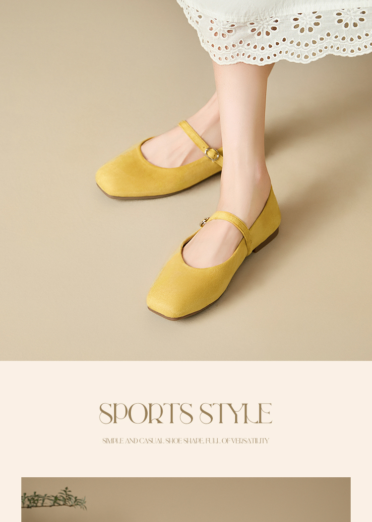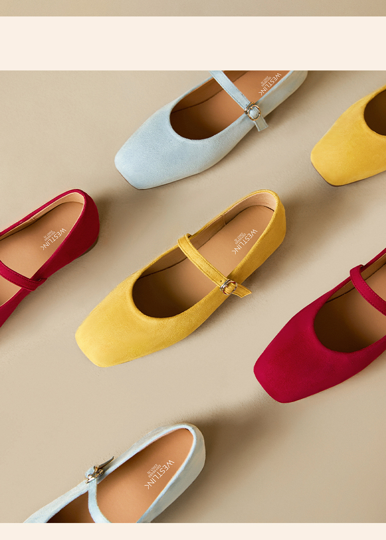 西遇平底玛丽珍女鞋新款春夏法式方头芭蕾鞋浅口软底红色单鞋D0156593