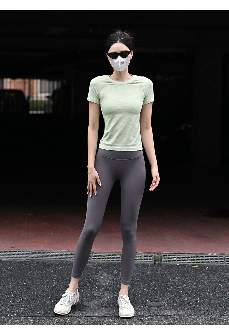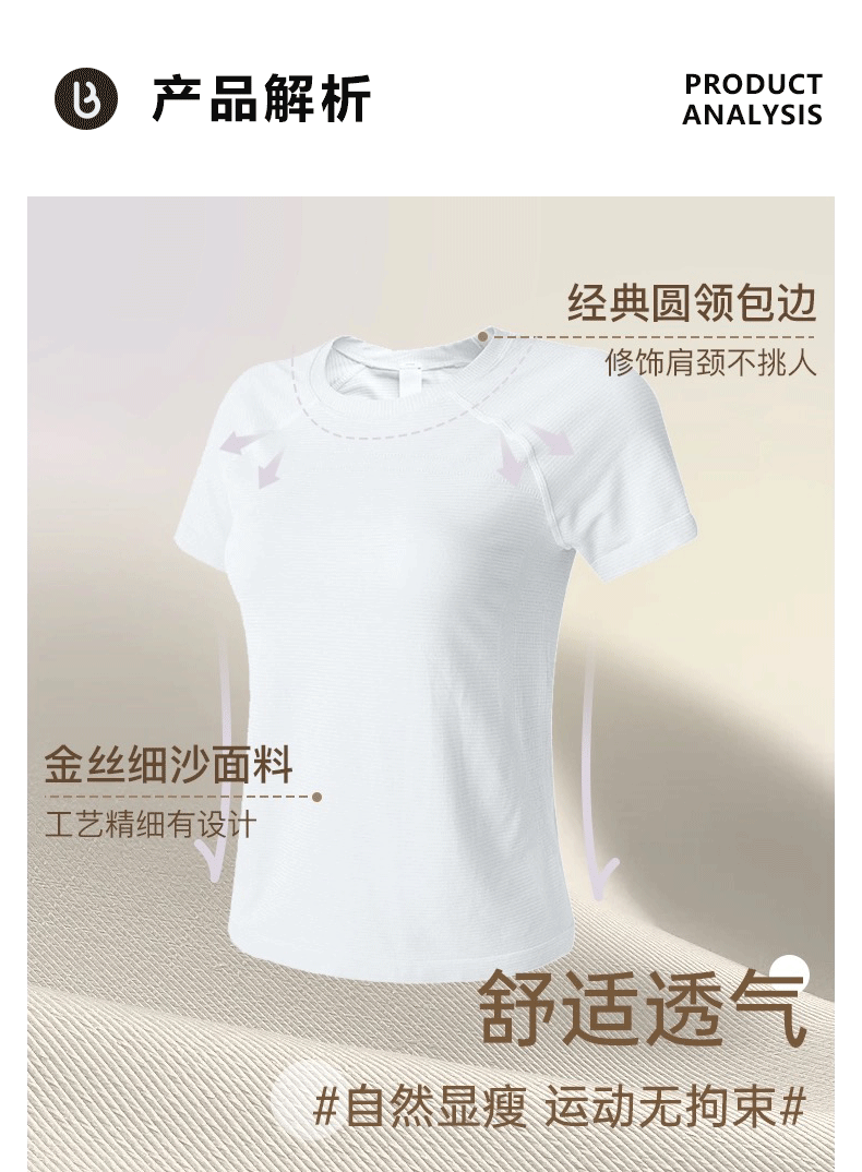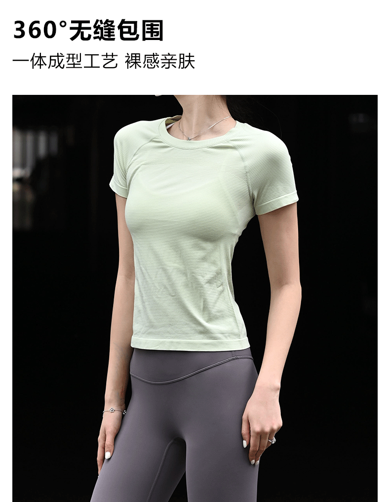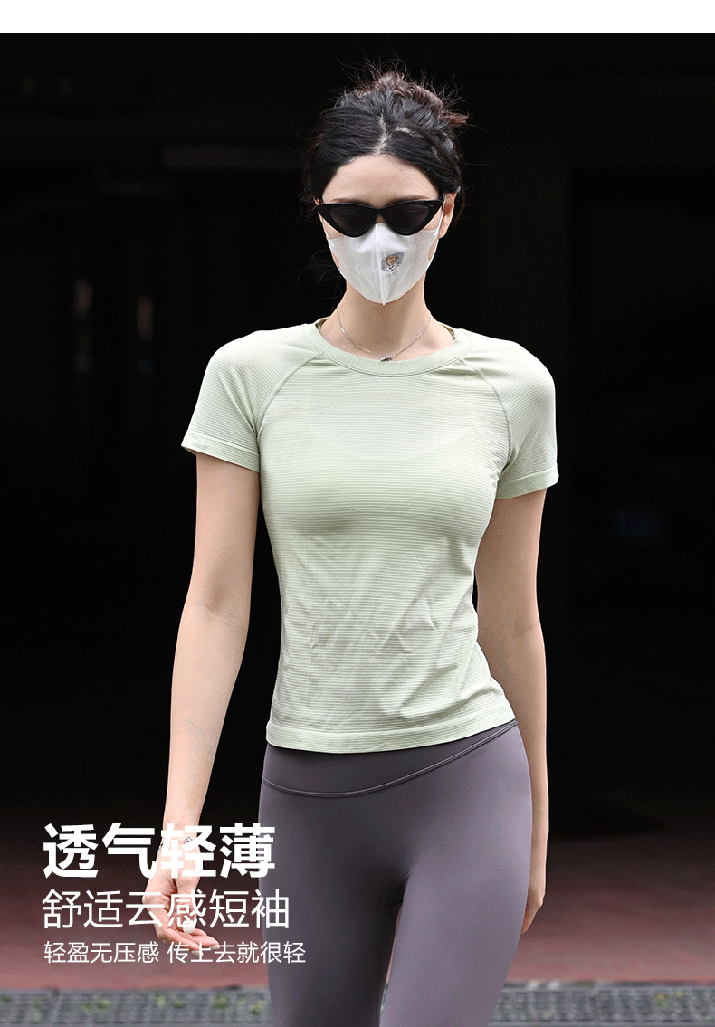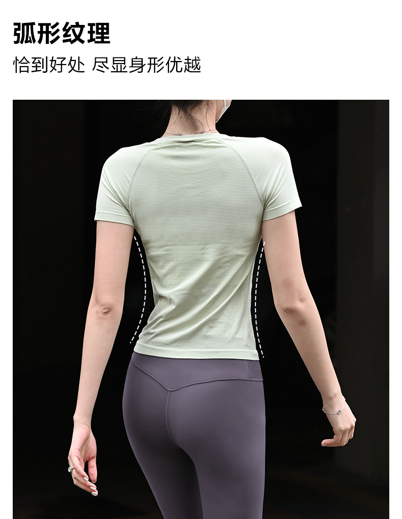 beemen跑步训练必备透气瑜伽服女紧身显瘦不勒健身短袖