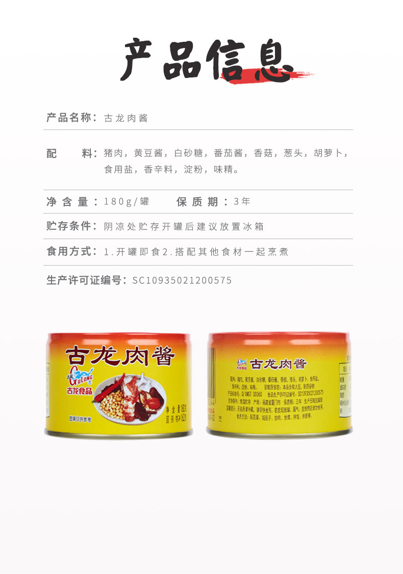 古龙食品肉酱罐头下饭菜意面酱拌粉拌面酱拌饭厦门特产熟食180g*6