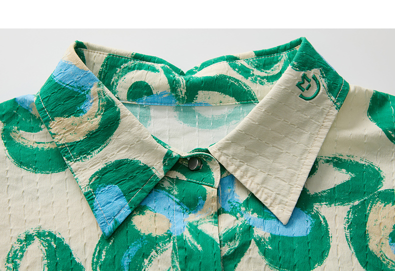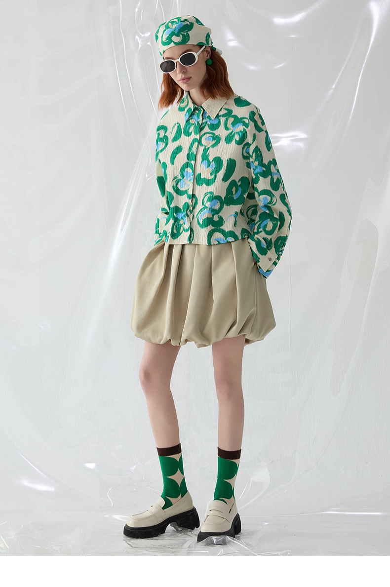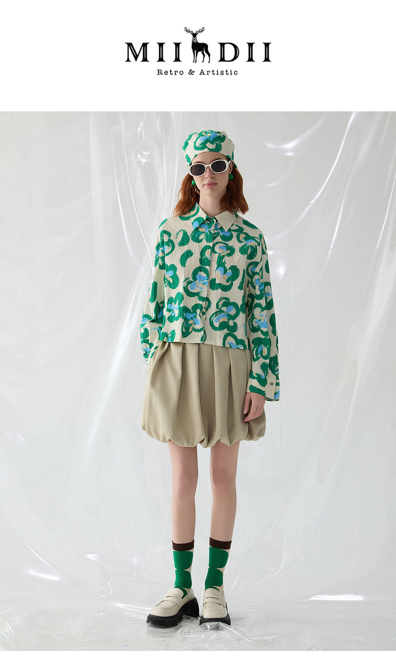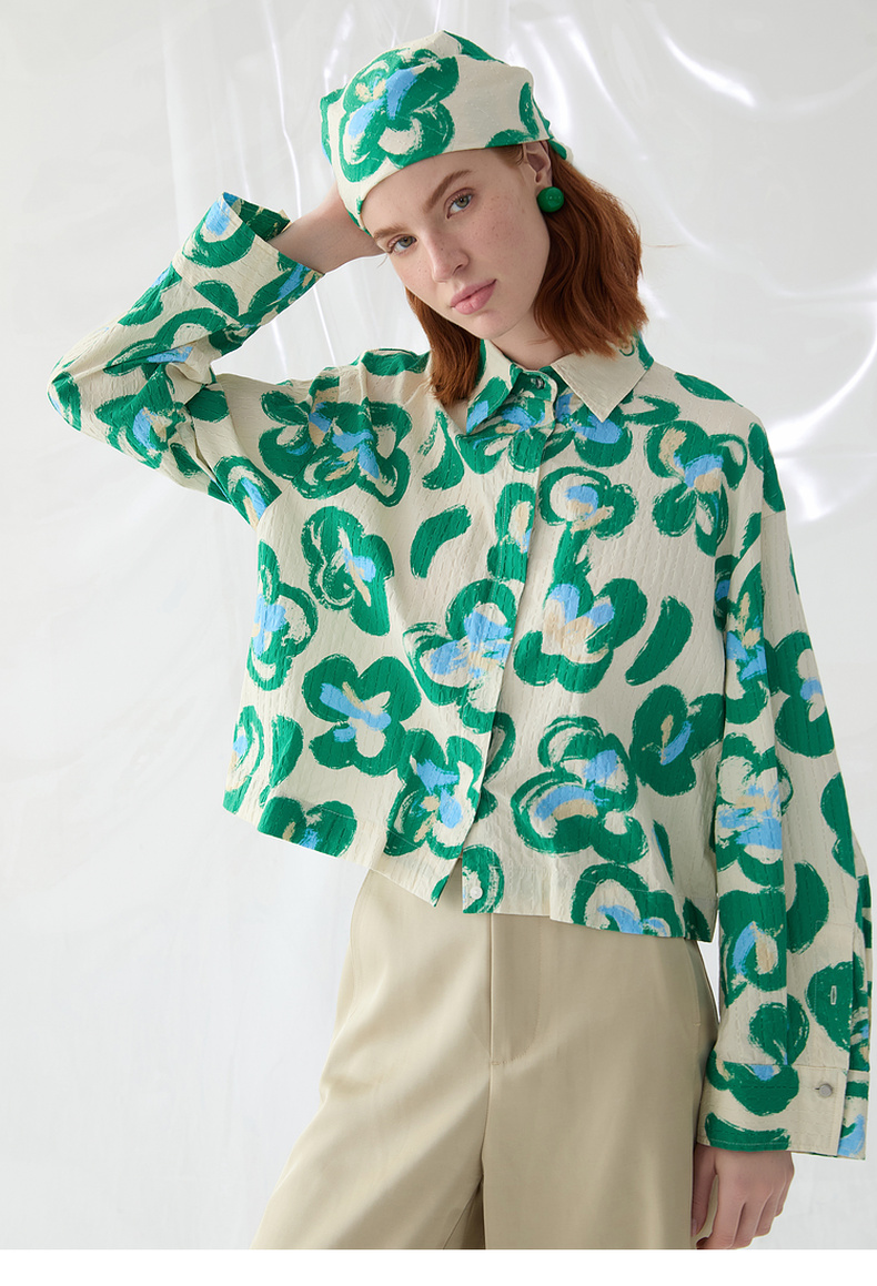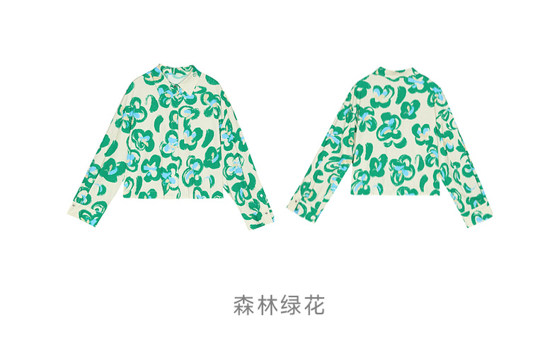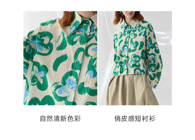 谜底花色衬衫长袖女2025春季新品花卉印花俏皮短款衬衣251MC0122