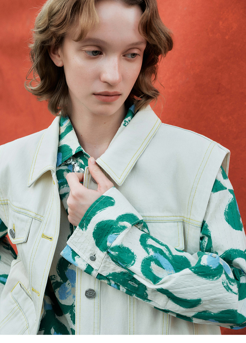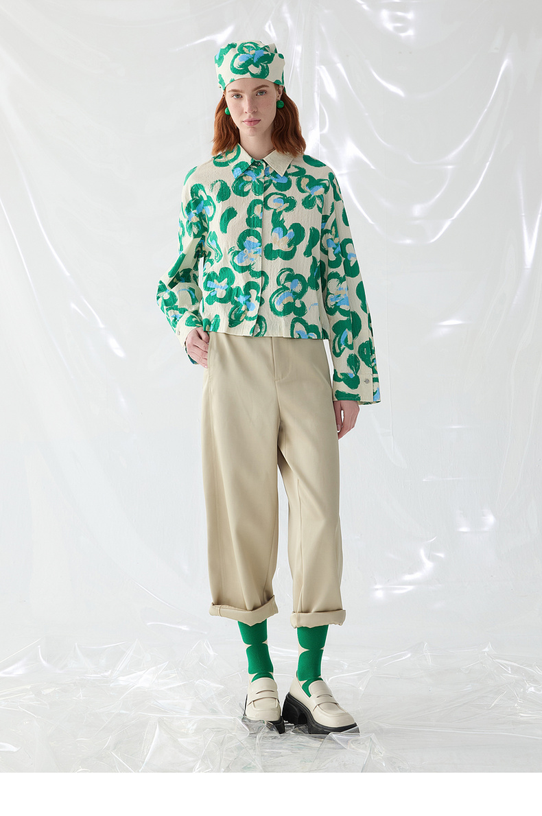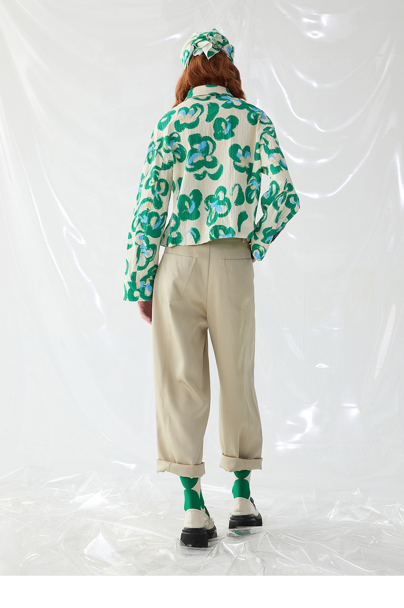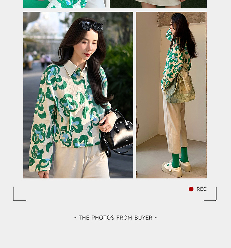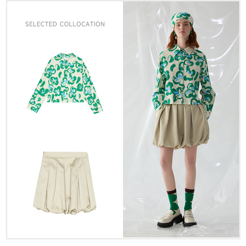 谜底花色衬衫长袖女2025春季新品花卉印花俏皮短款衬衣251MC0122