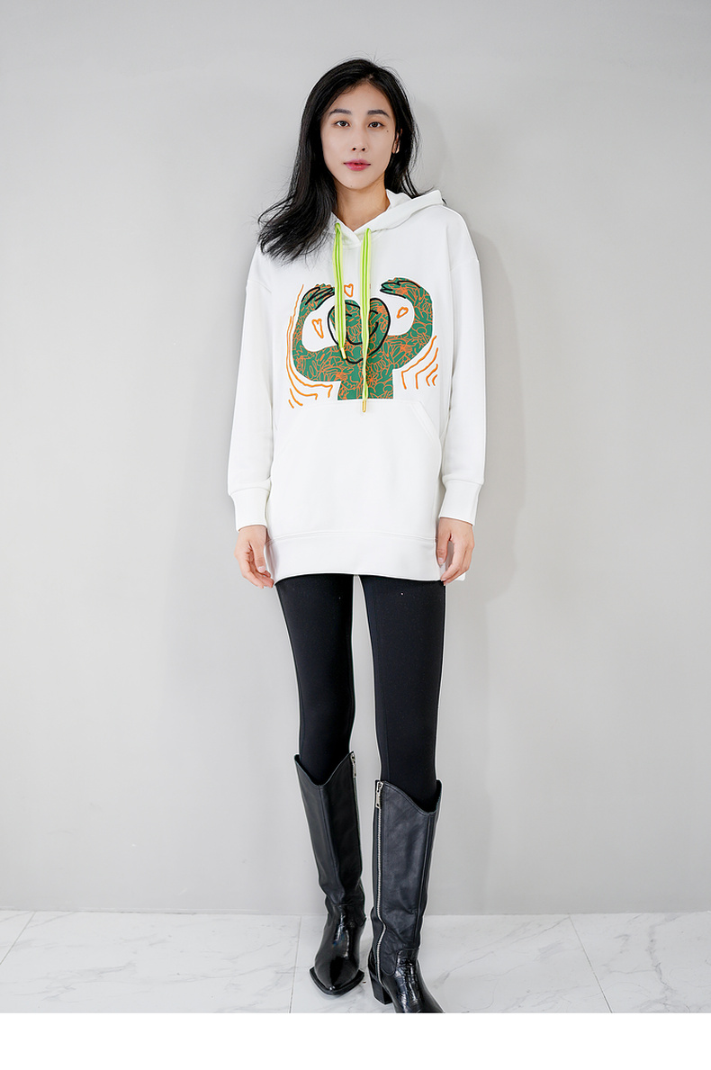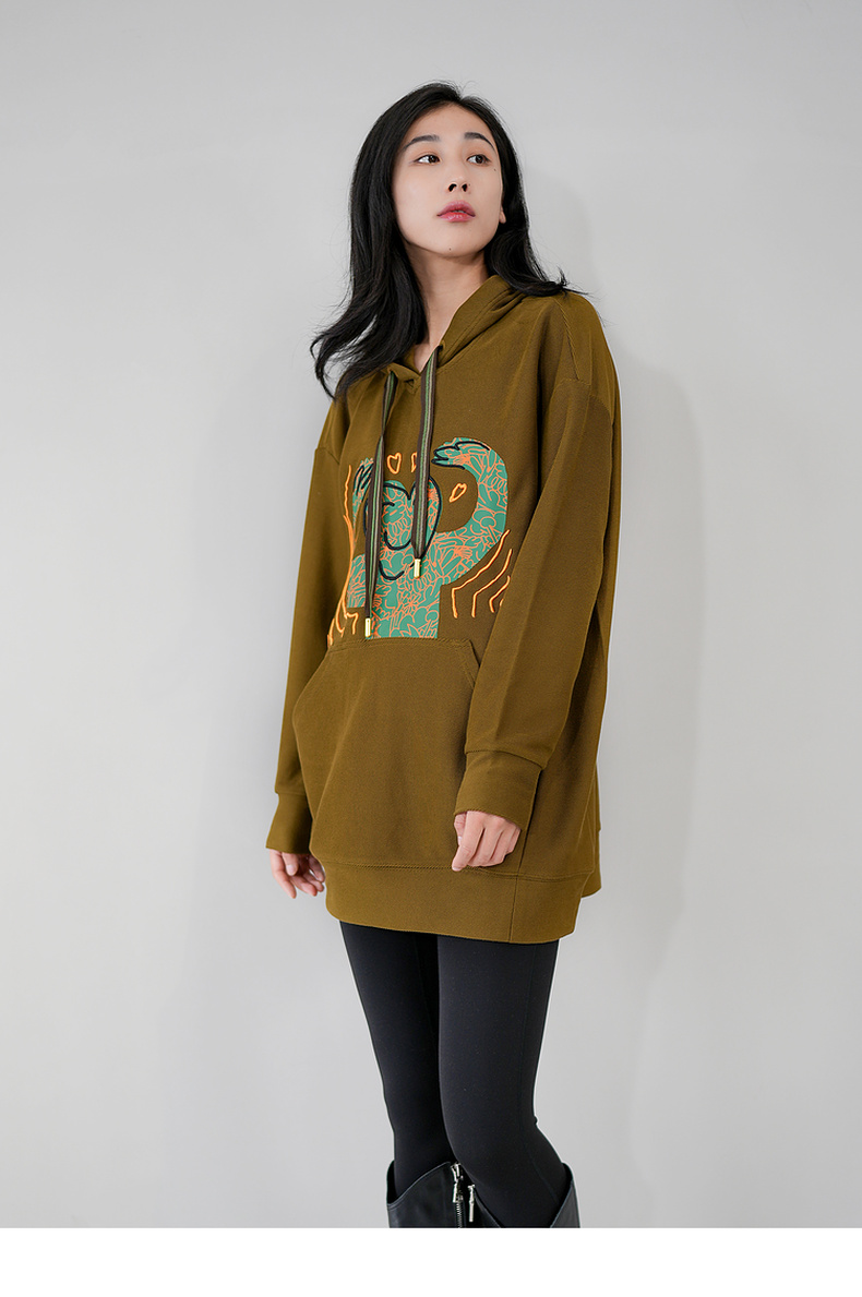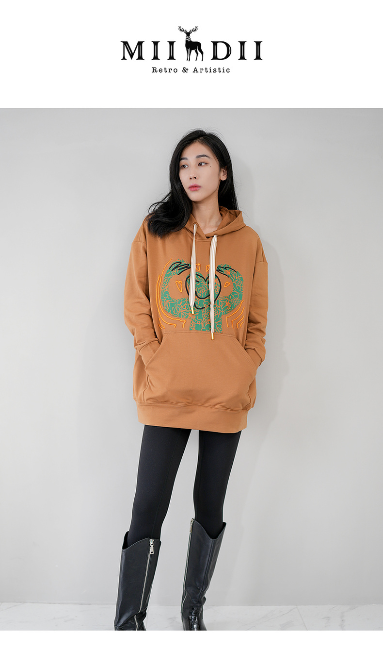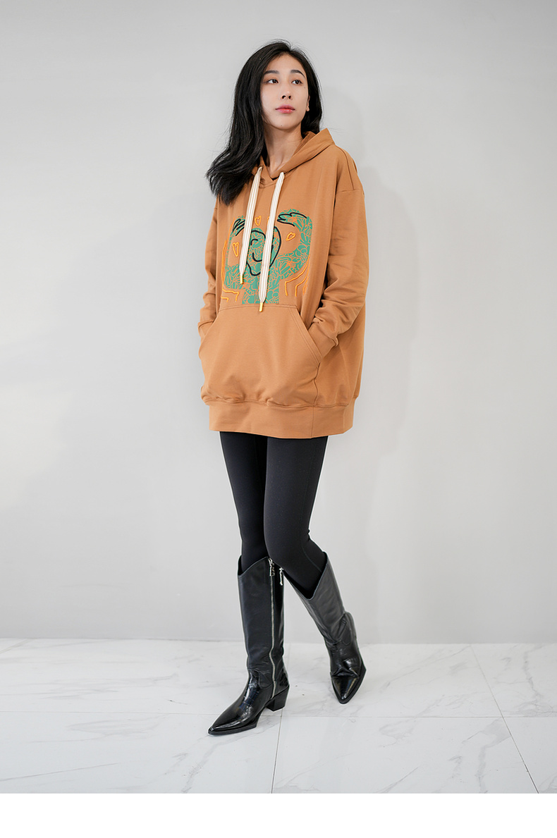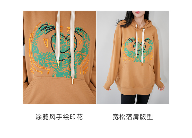 谜底秋冬新款休闲减龄连帽印花Oversize卫衣女百搭上衣235MV6080