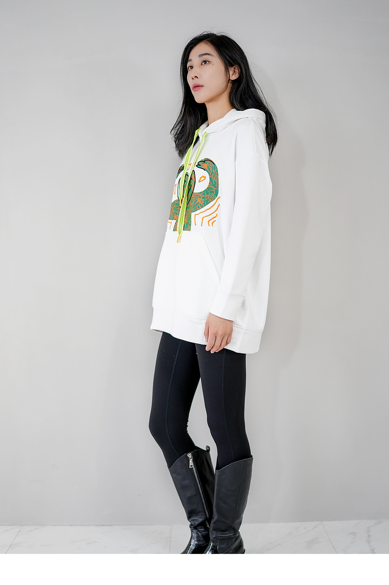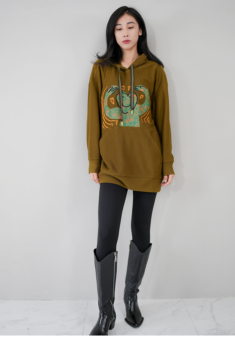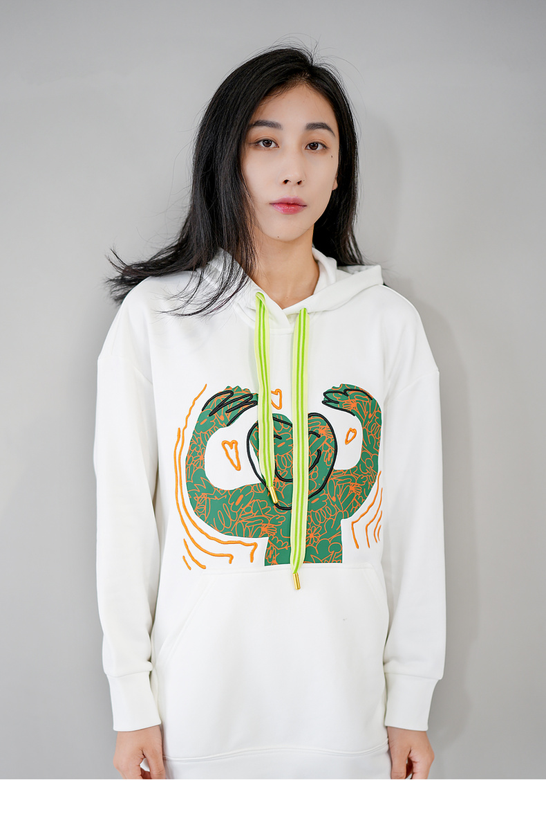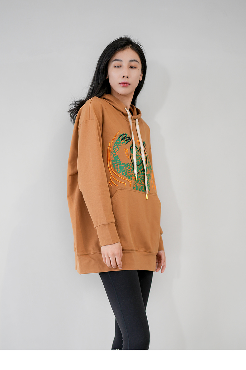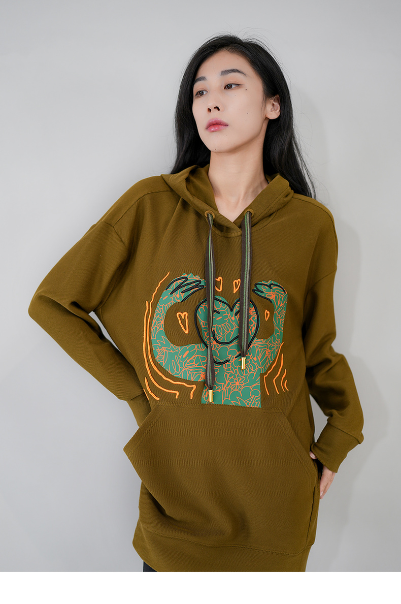 谜底秋冬新款休闲减龄连帽印花Oversize卫衣女百搭上衣235MV6080