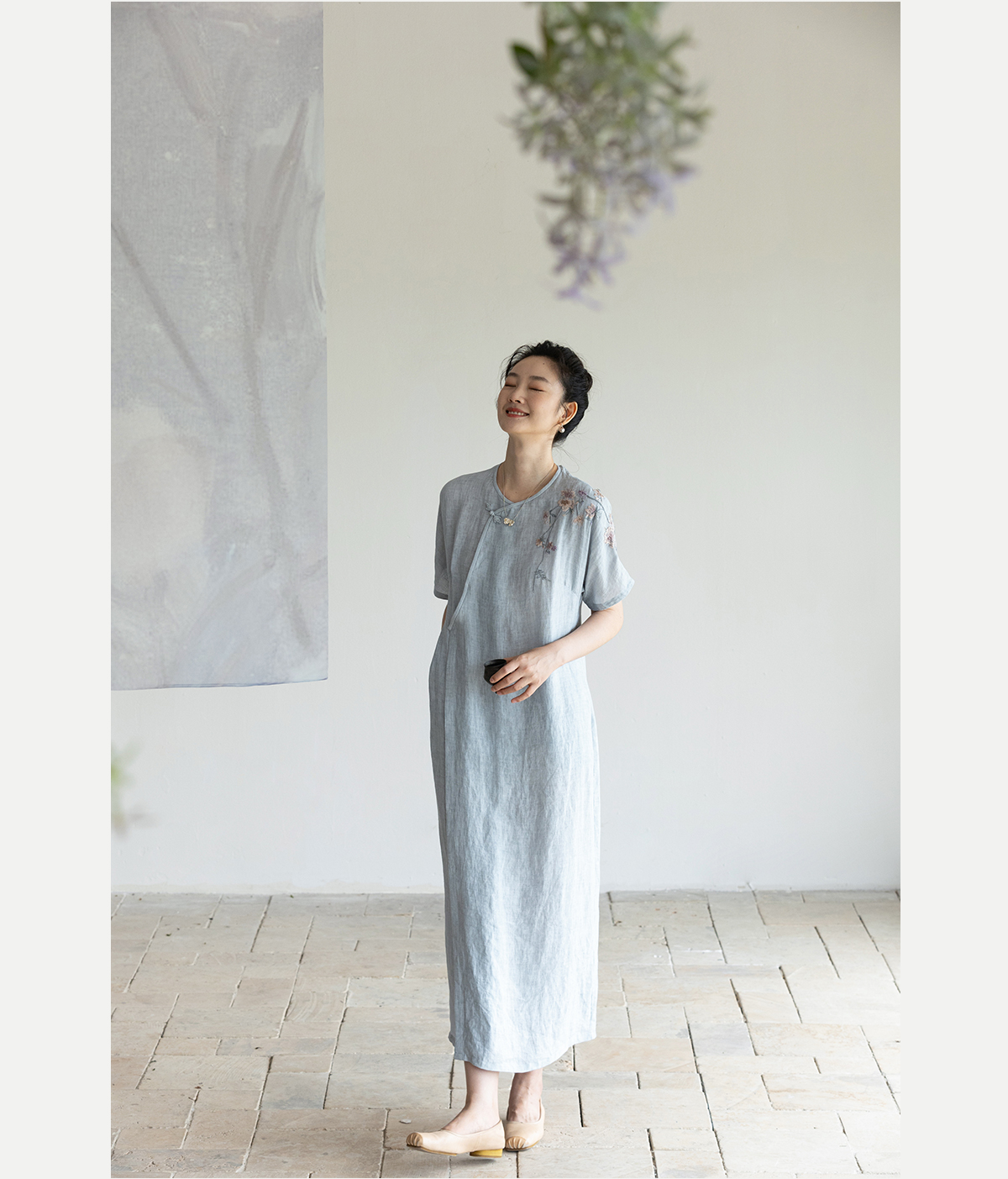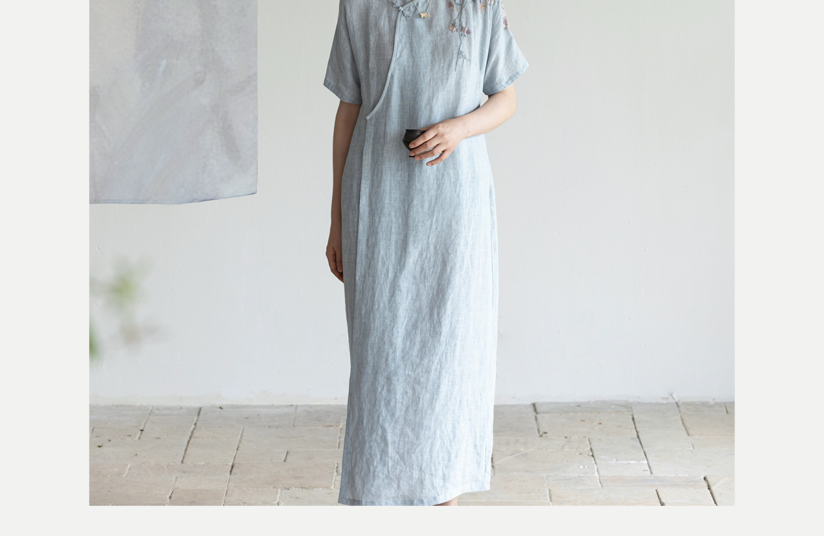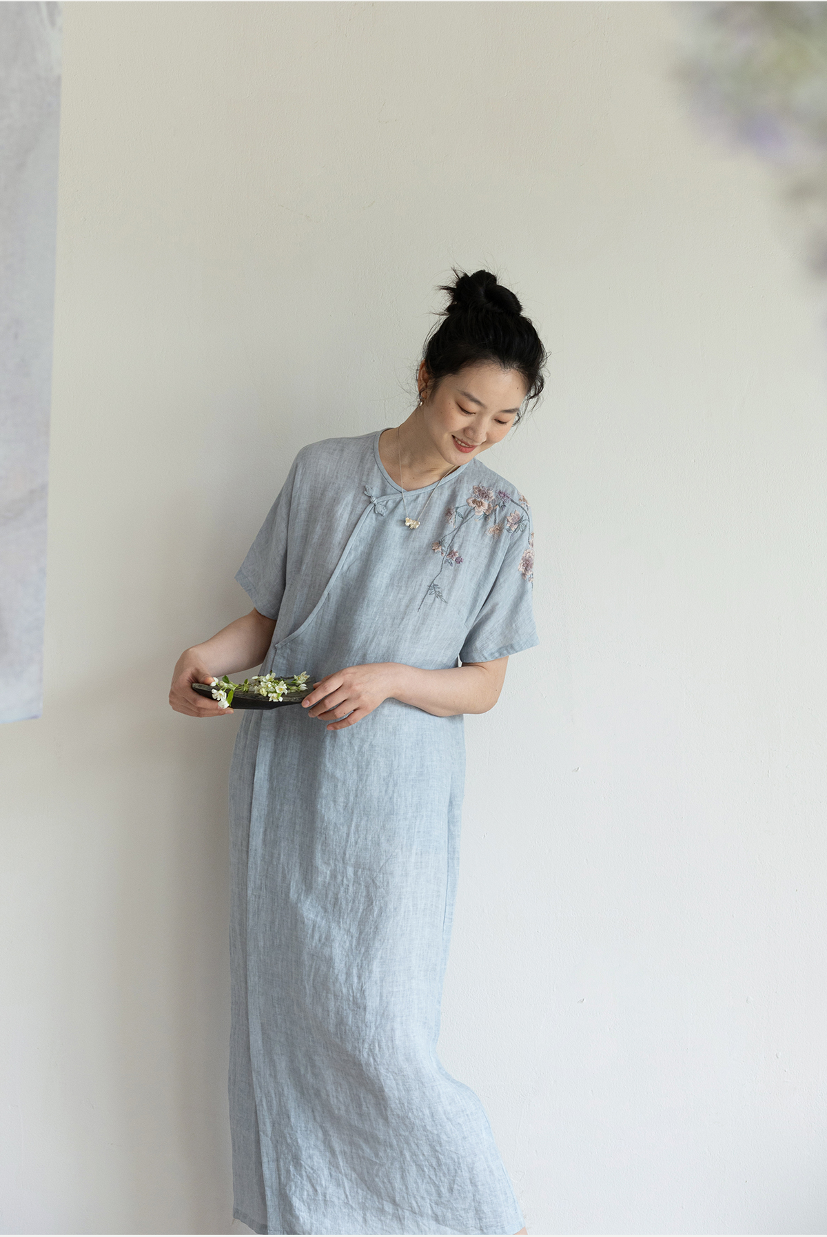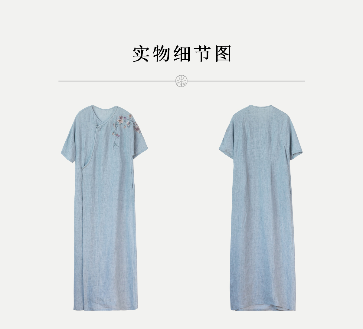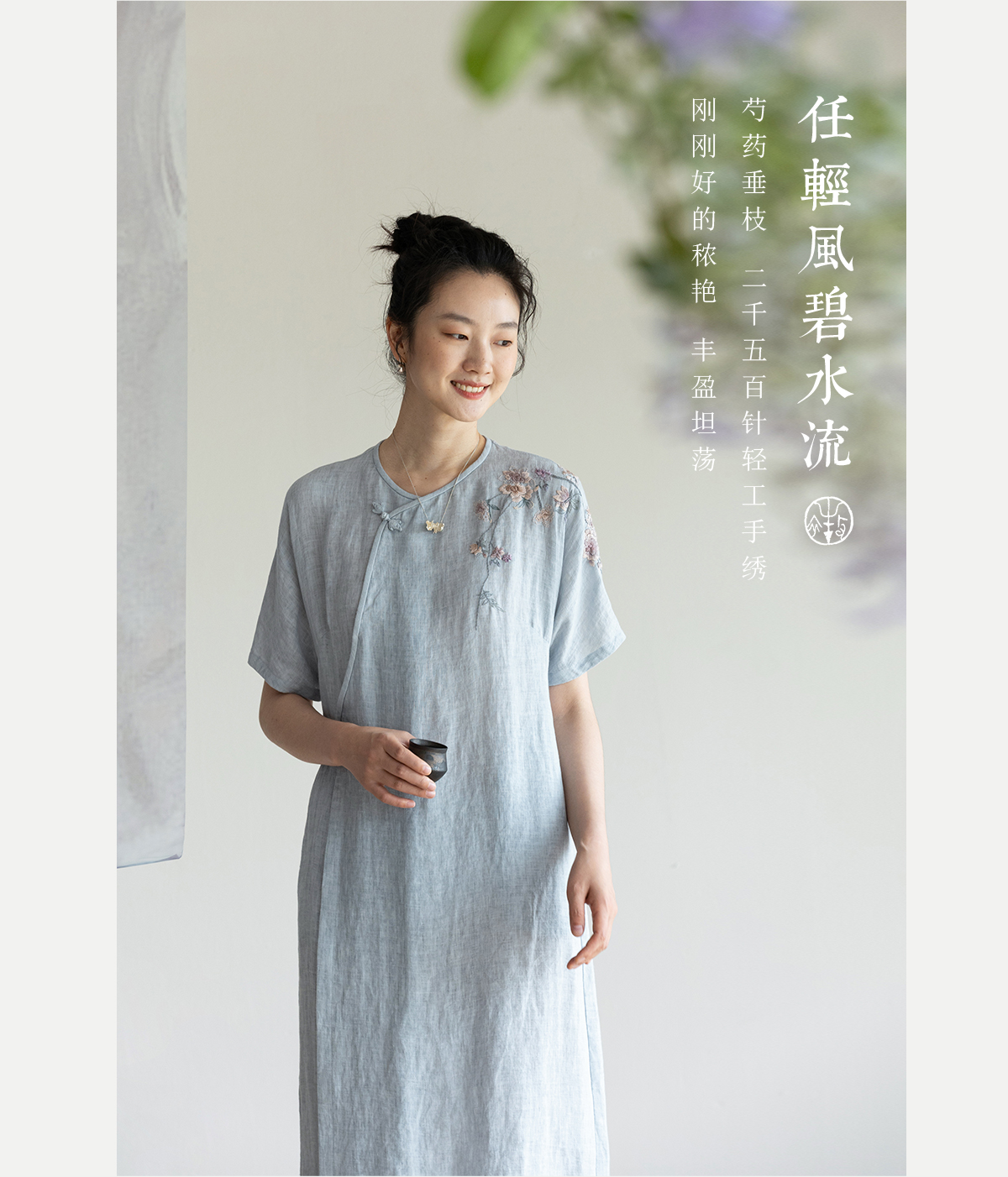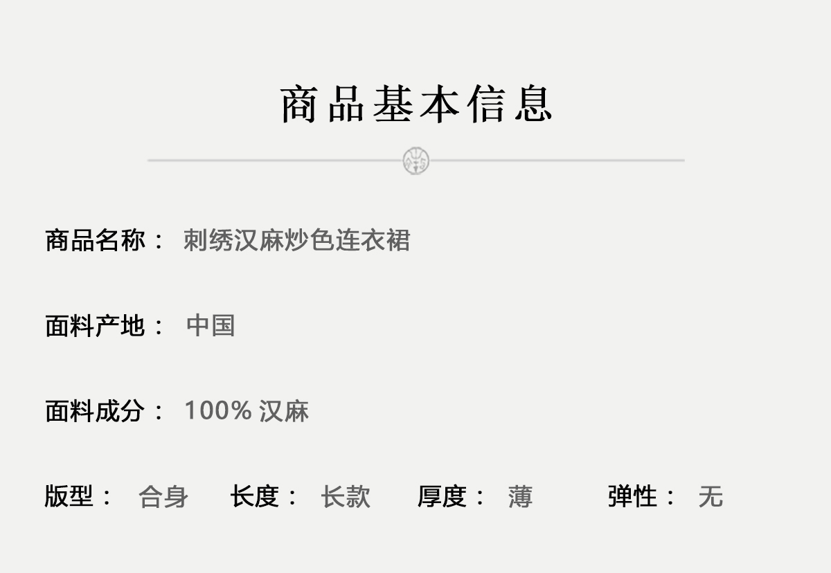 牧衣游原创 手工刺绣汉麻炒色连衣裙轻薄宽松质朴文艺长裙 醉江月