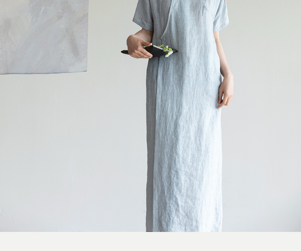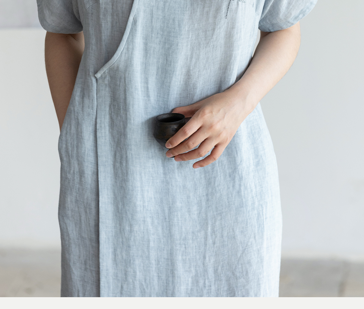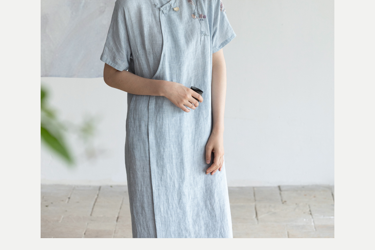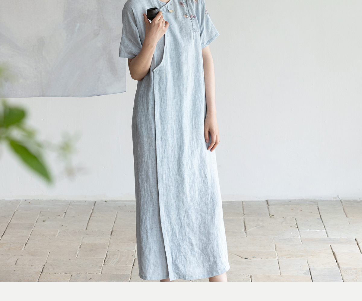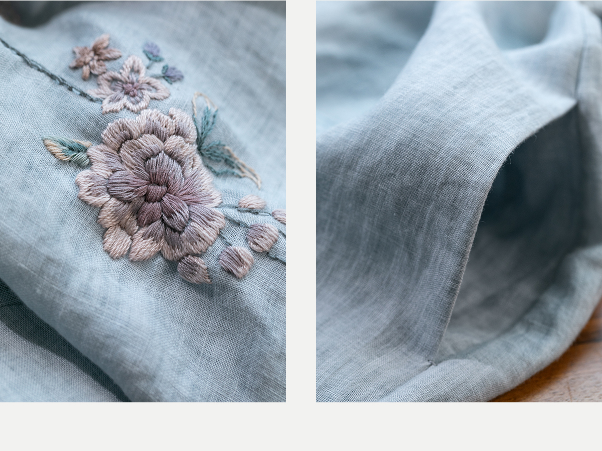 牧衣游原创 手工刺绣汉麻炒色连衣裙轻薄宽松质朴文艺长裙 醉江月