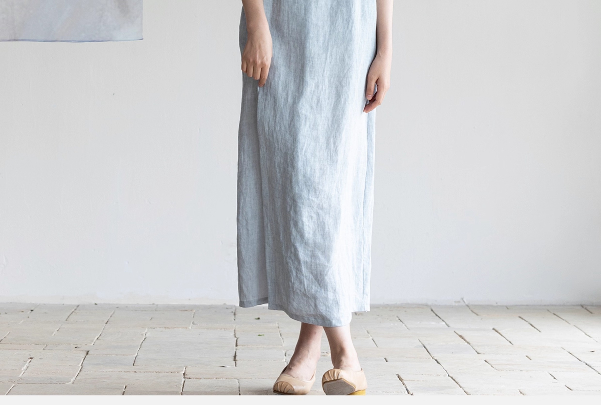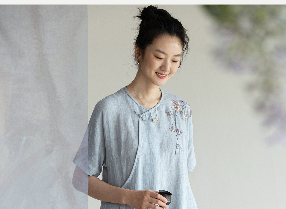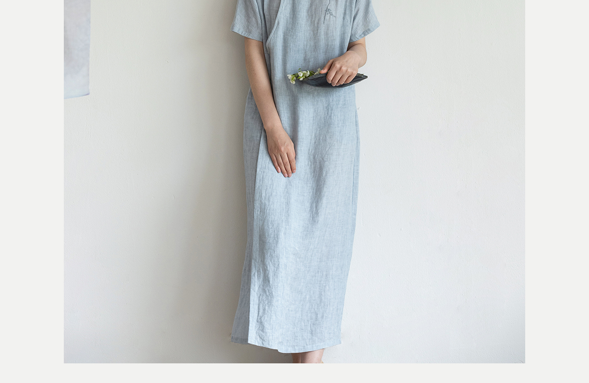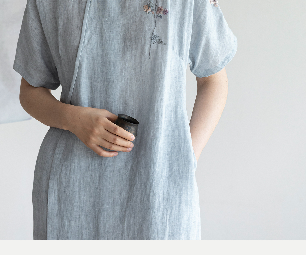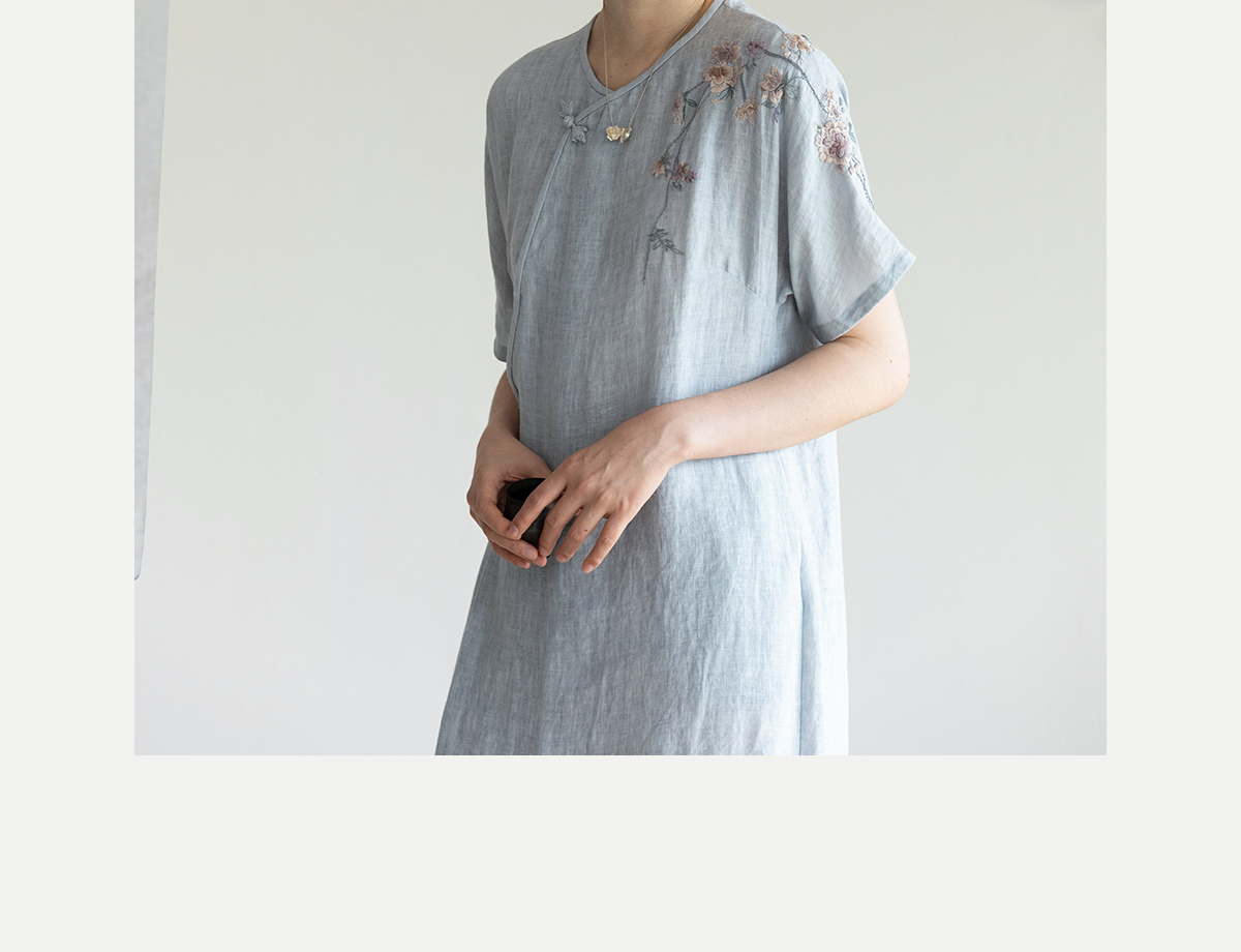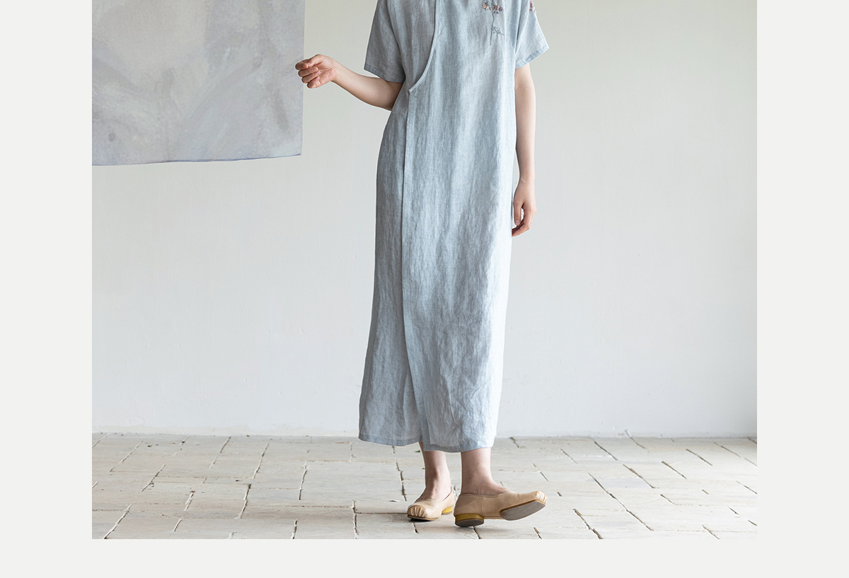 牧衣游原创 手工刺绣汉麻炒色连衣裙轻薄宽松质朴文艺长裙 醉江月