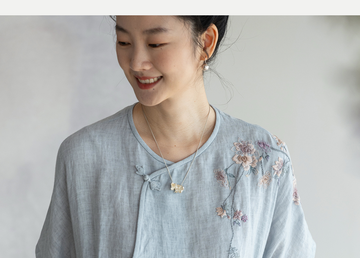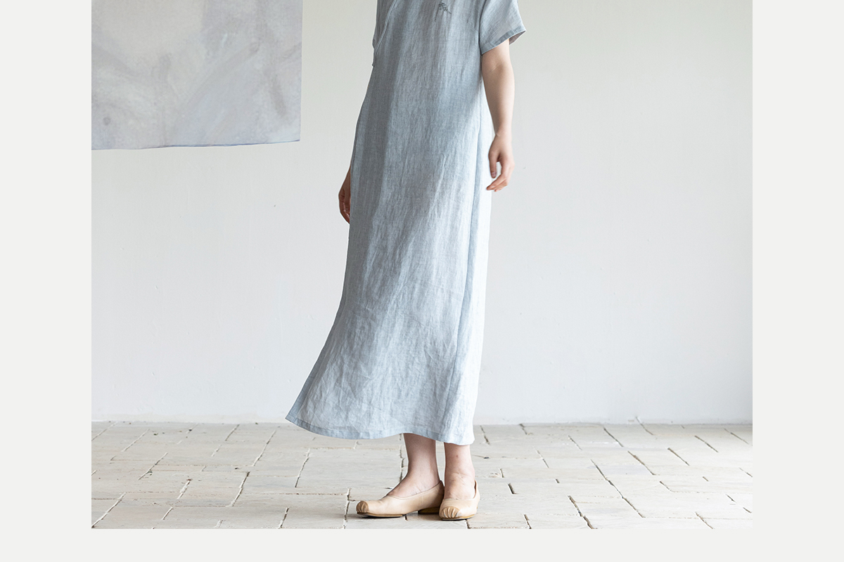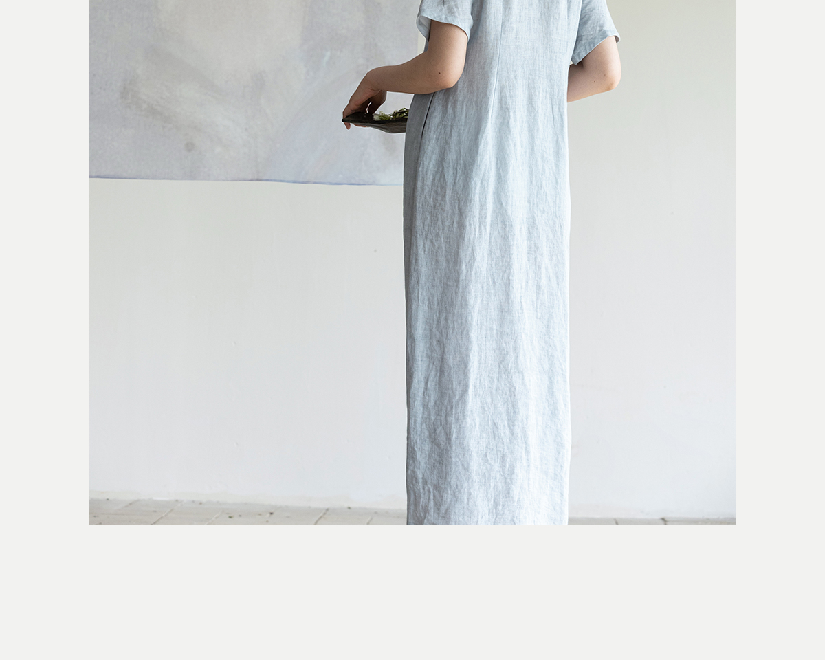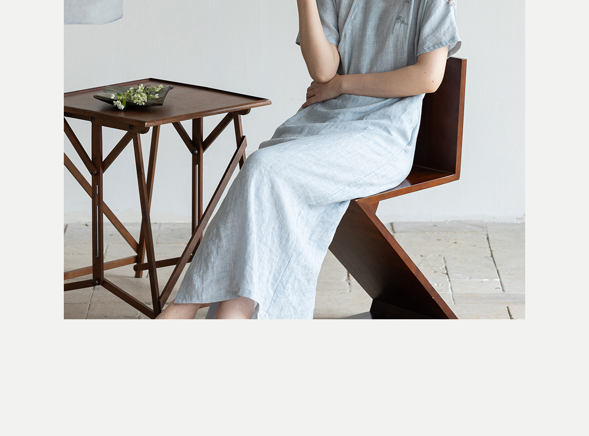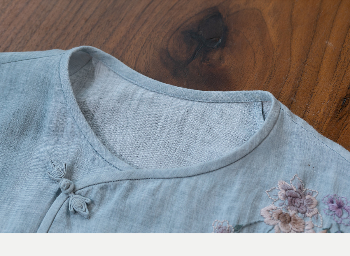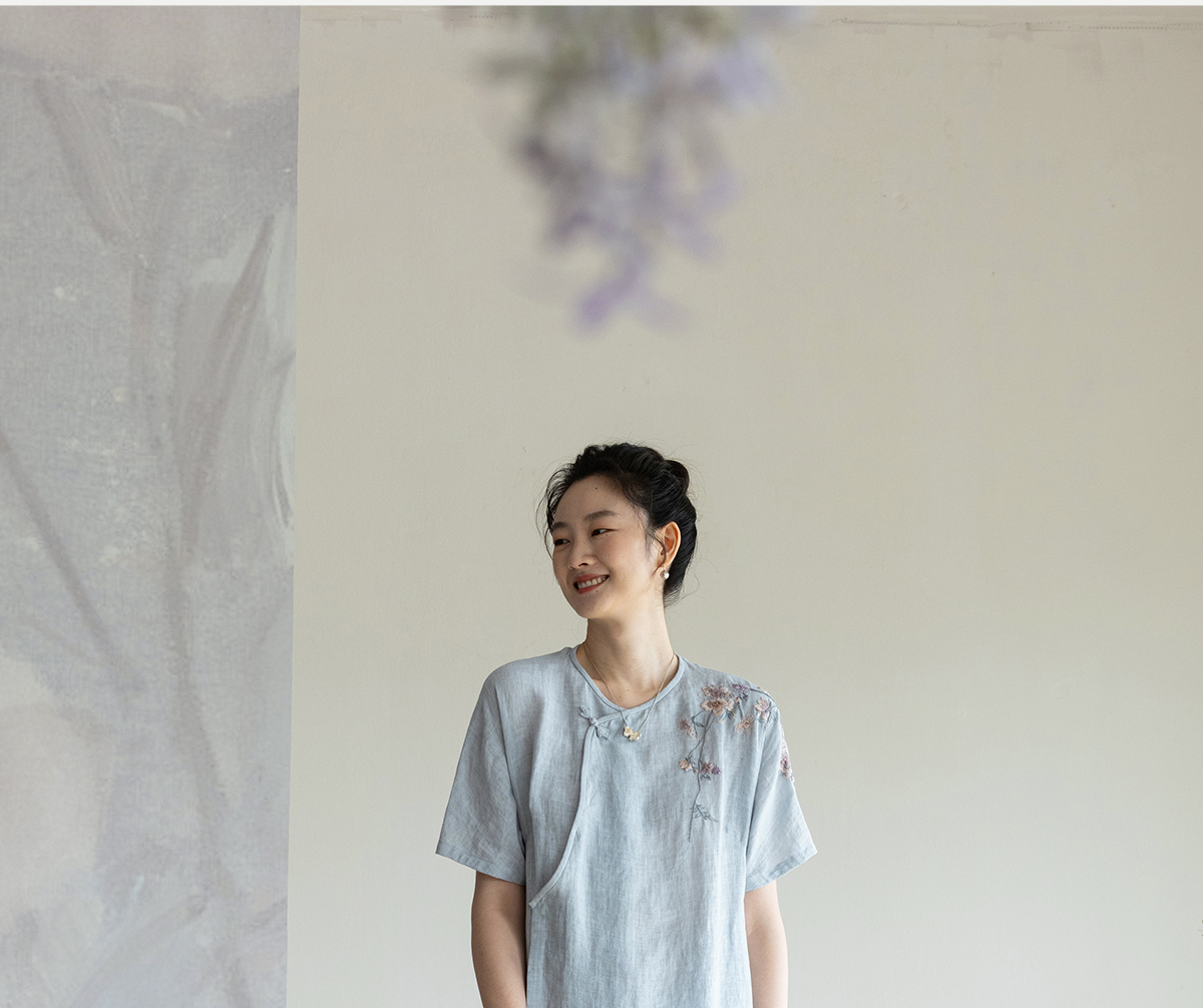 牧衣游原创 手工刺绣汉麻炒色连衣裙轻薄宽松质朴文艺长裙 醉江月