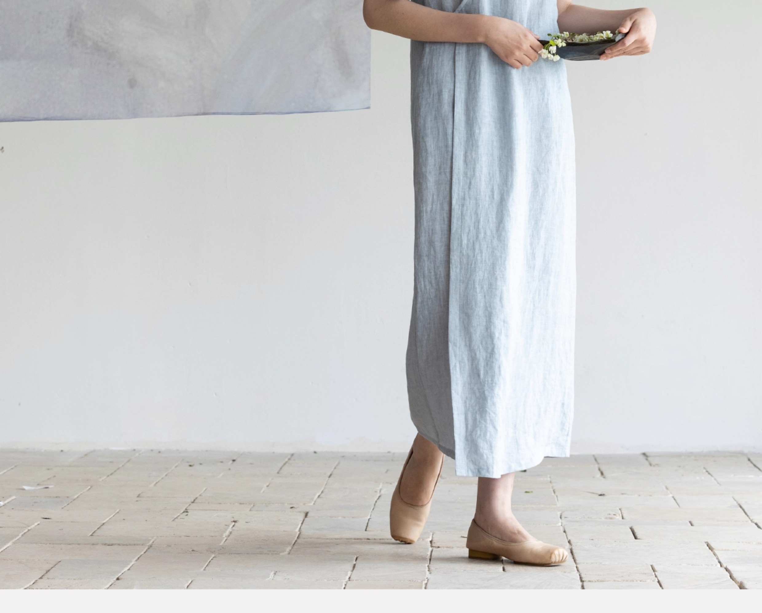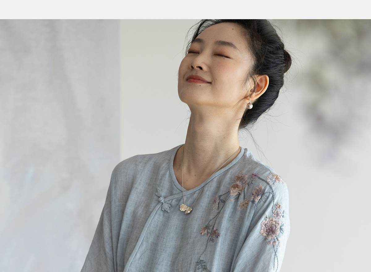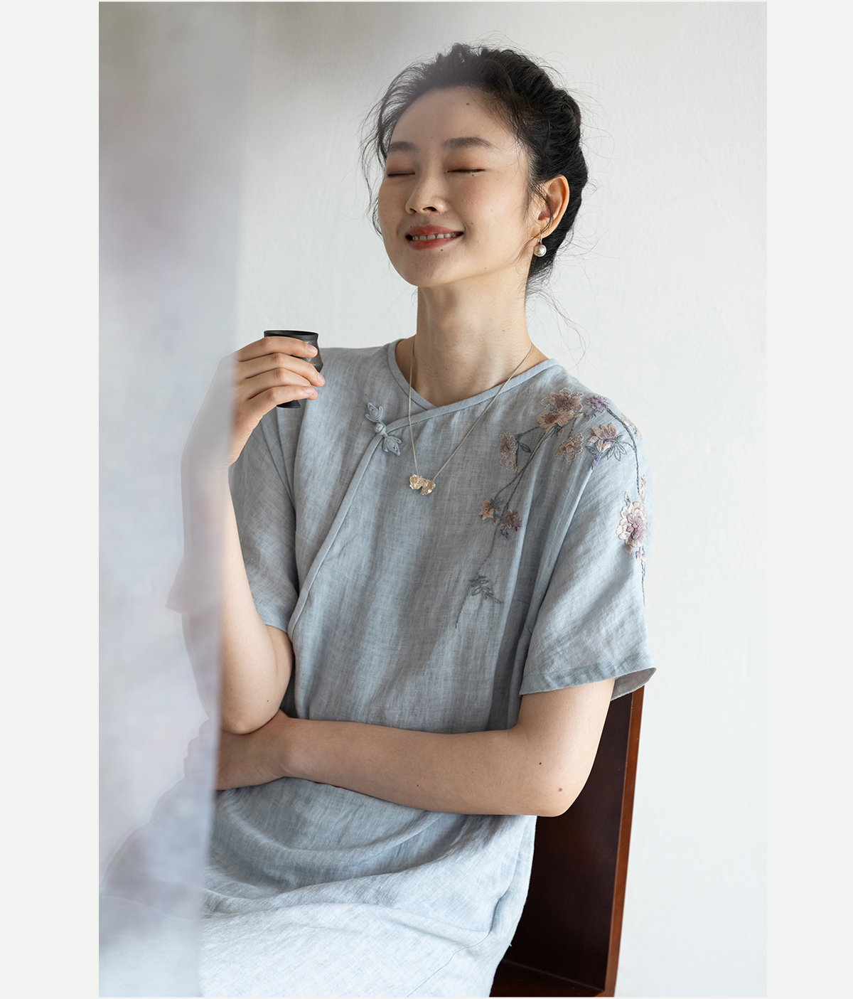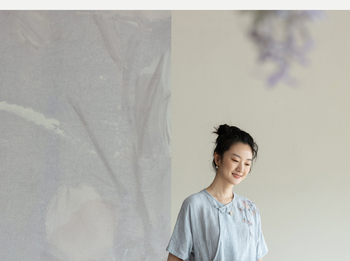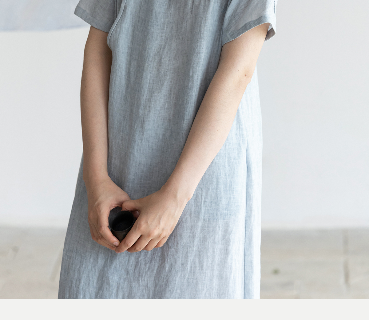 牧衣游原创 手工刺绣汉麻炒色连衣裙轻薄宽松质朴文艺长裙 醉江月