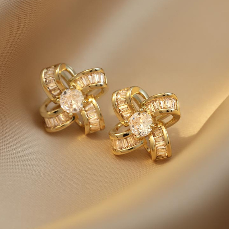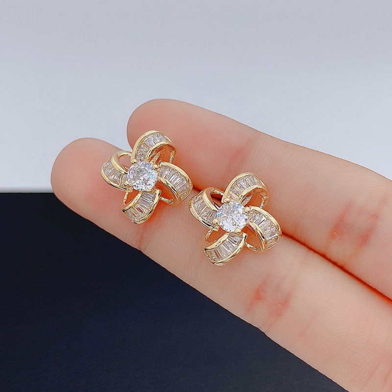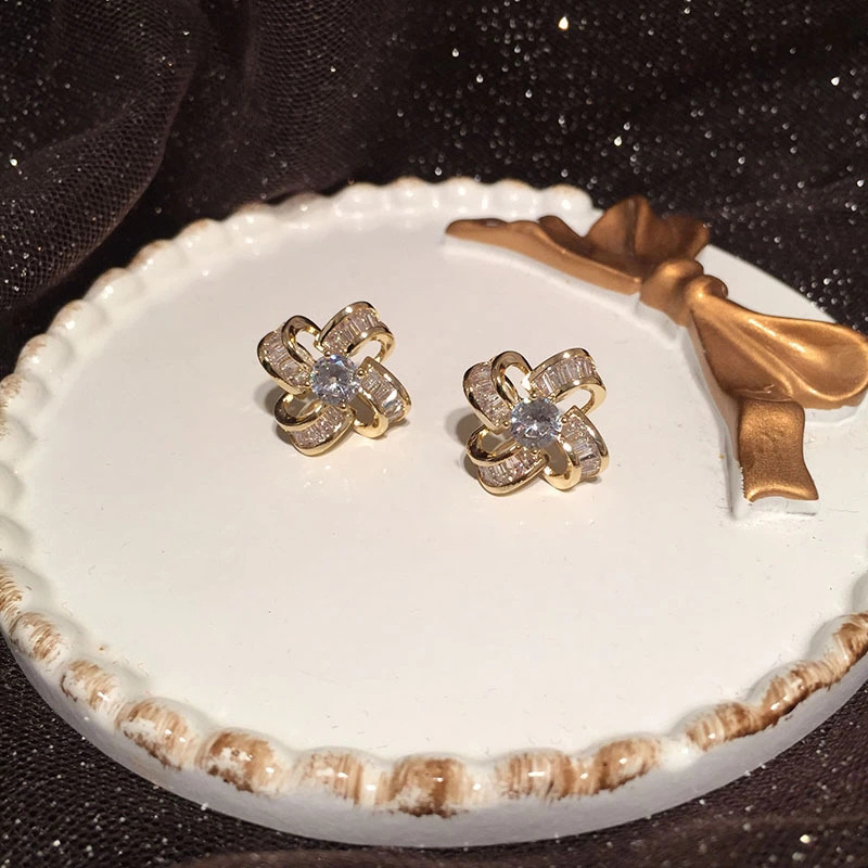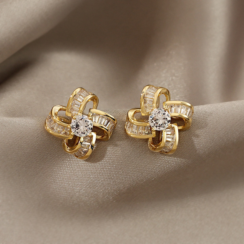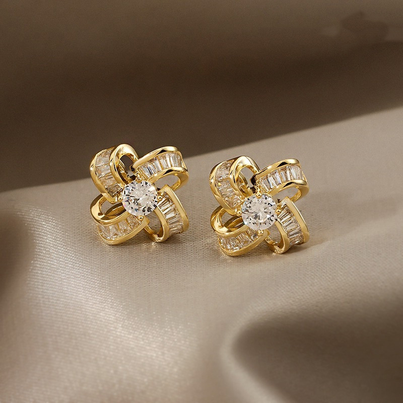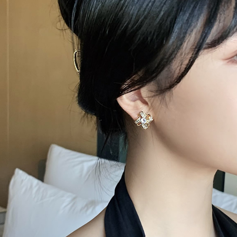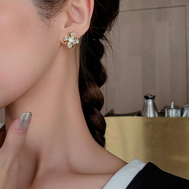 【四叶草小香风设计感】925银耳钉微镶镂空花朵耳环女耳饰时尚饰品
