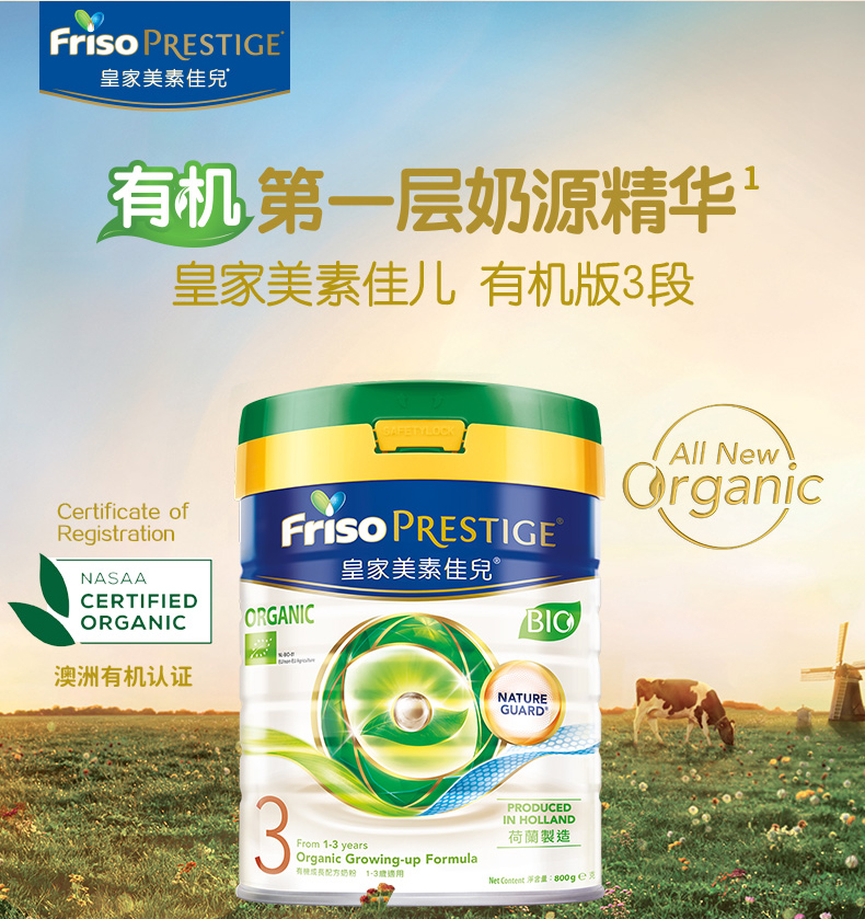 [大罐3段]港版有机皇家美素佳儿Friso Prestige 港版较大婴儿配方奶粉3段(1-3岁)800g