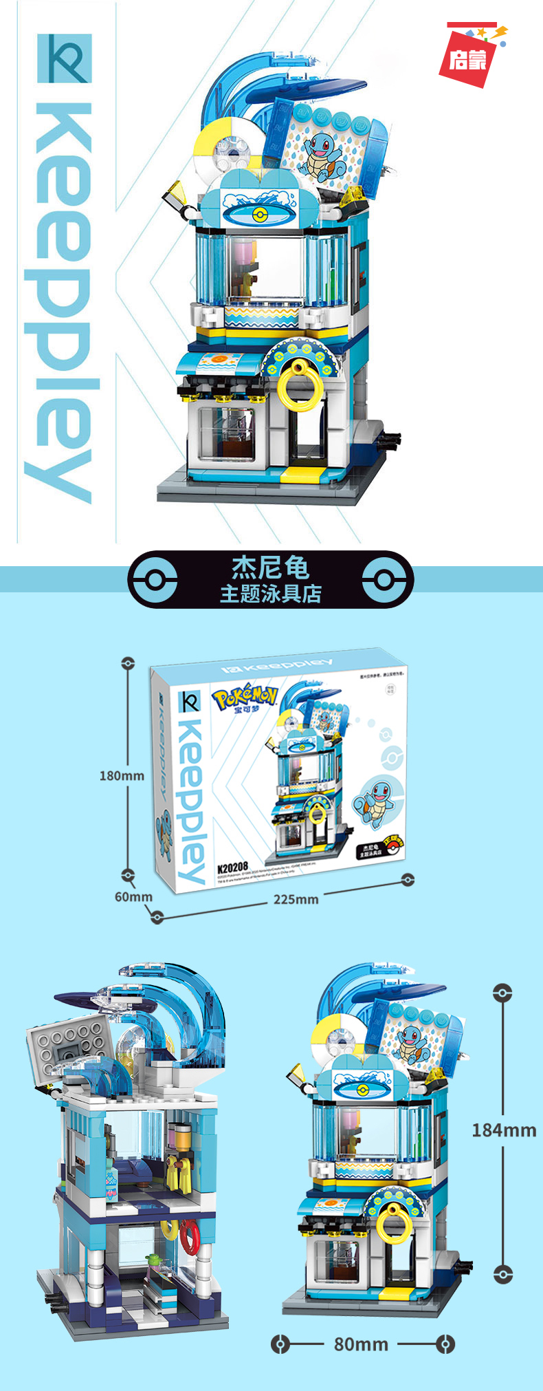 启蒙积木K20208 杰尼龟主题泳具店