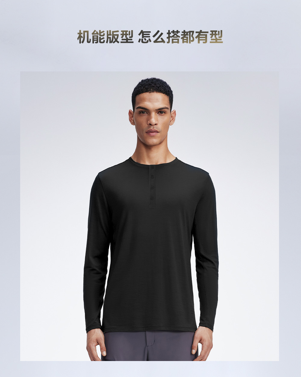 流光风天石鹅铠甲秋冬亨利领长袖美利奴羊毛T恤男款内搭上衣G659