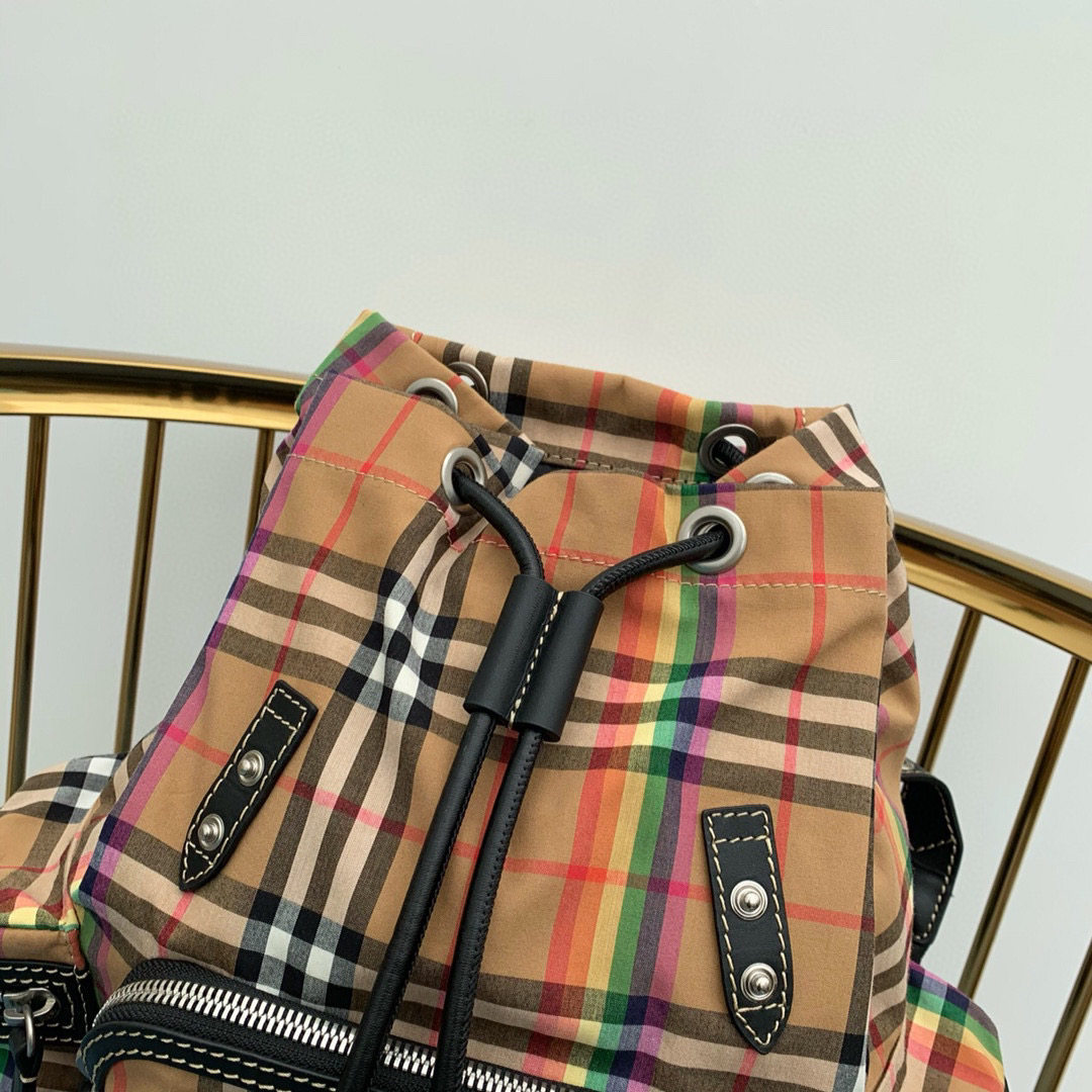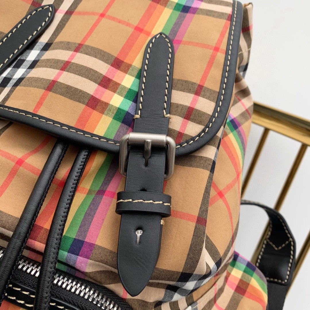 上新🆕彩虹背包系列🌈 中号双肩背包 精选 Vintage 彩虹格纹棉质面料匠心打造 这一季的格子简直就是完美逆袭‼️正品开模 定制的皮料 五金 面料~(22X33)