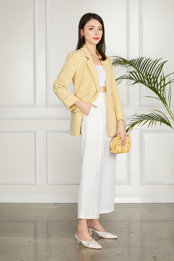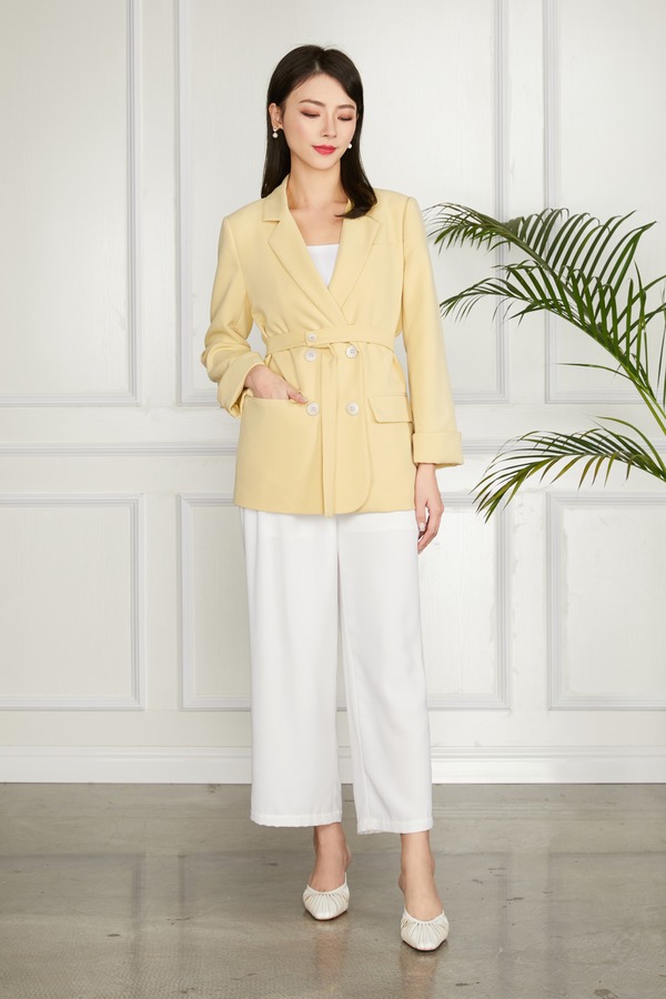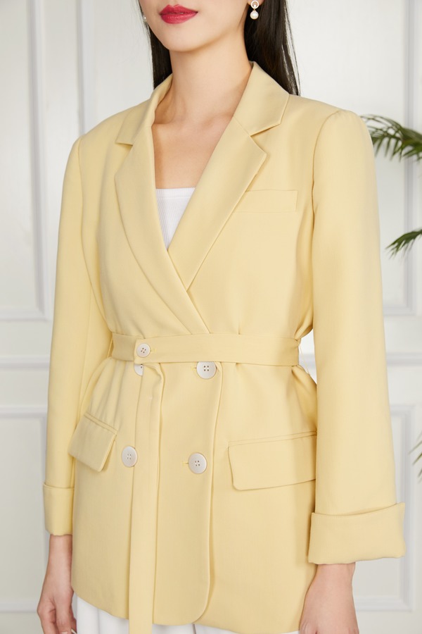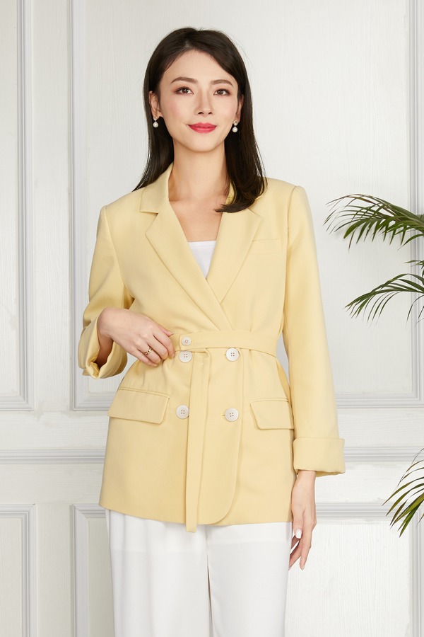 LNNNS 黄色双排扣绑带收腰西装外套 11307