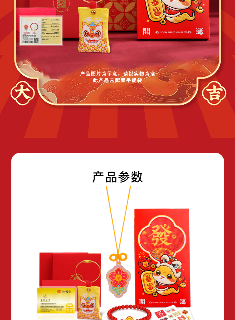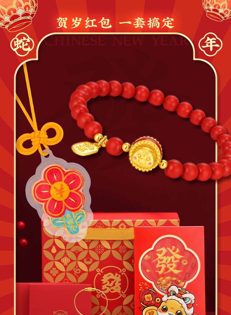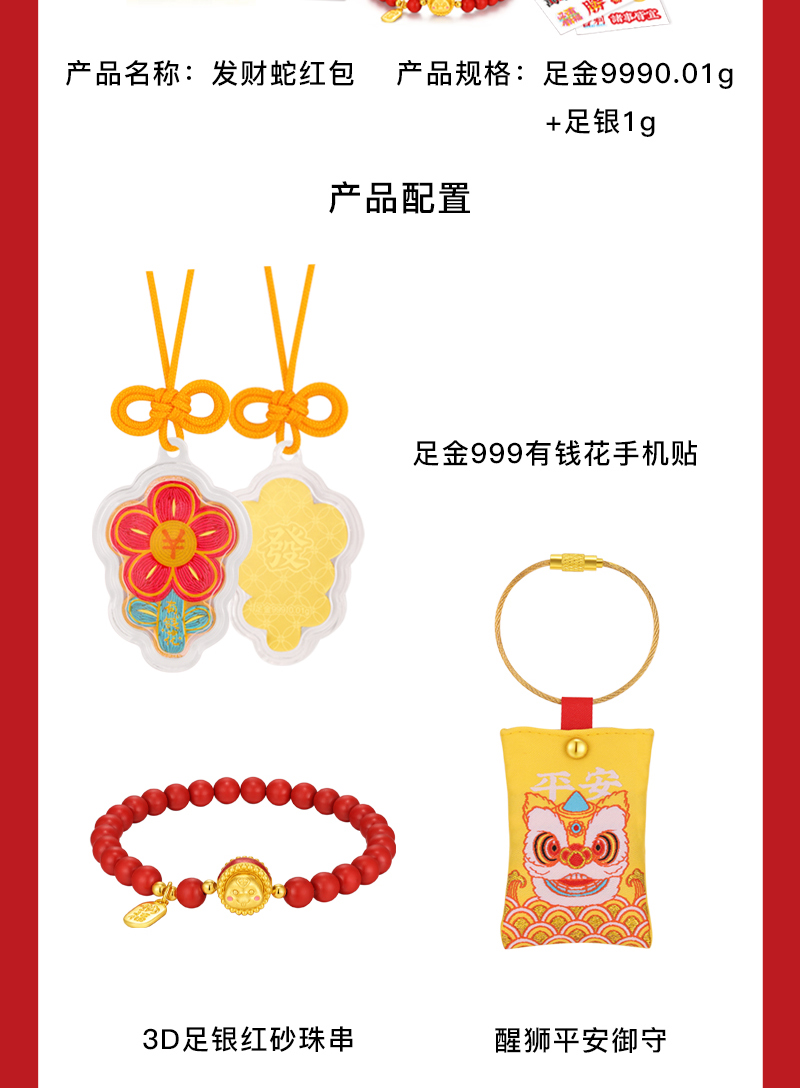 发财蛇红包手串套装 有钱花足金0.01克+足银1克
