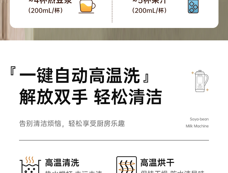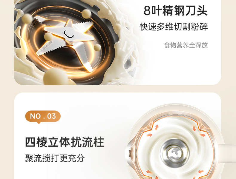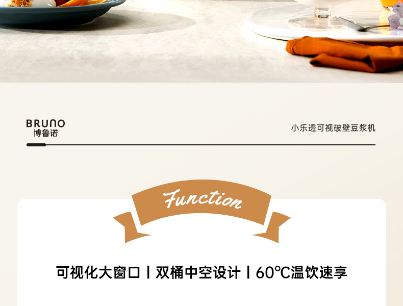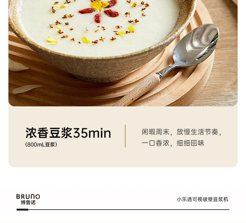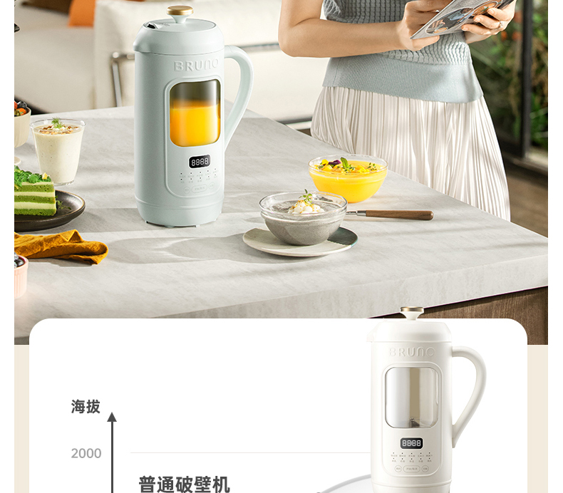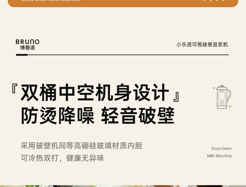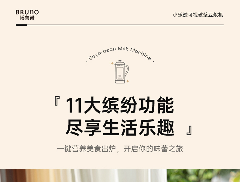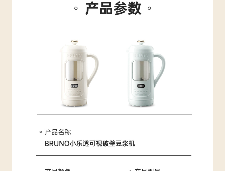 【日本可视窗口破壁机】BRUNO豆浆机破壁机五谷全自动低噪音家用可视迷你新款榨汁机