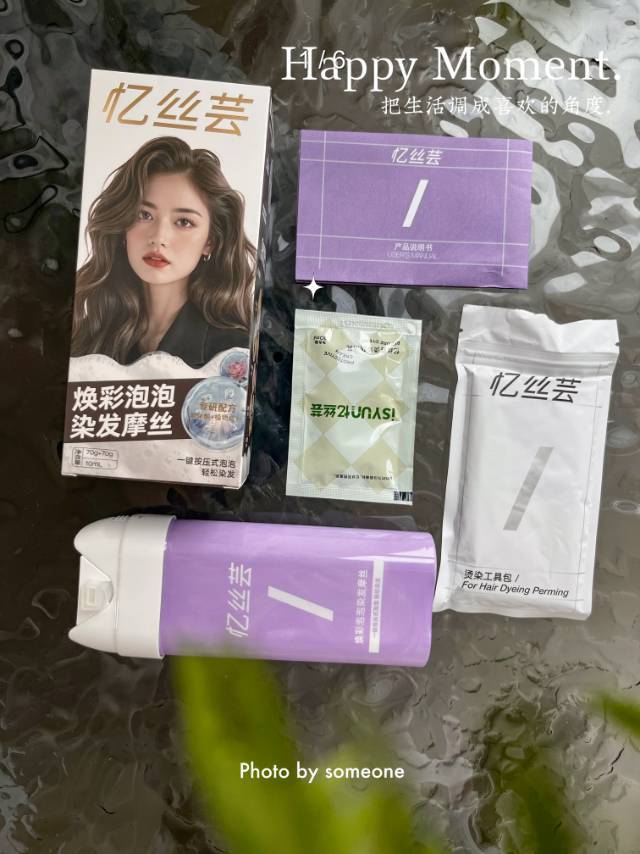 里面加了华熙生物的玻尿酸和 9 种植物精华,染完头发不但不枯,反而顺顺的,像做了护理一样~