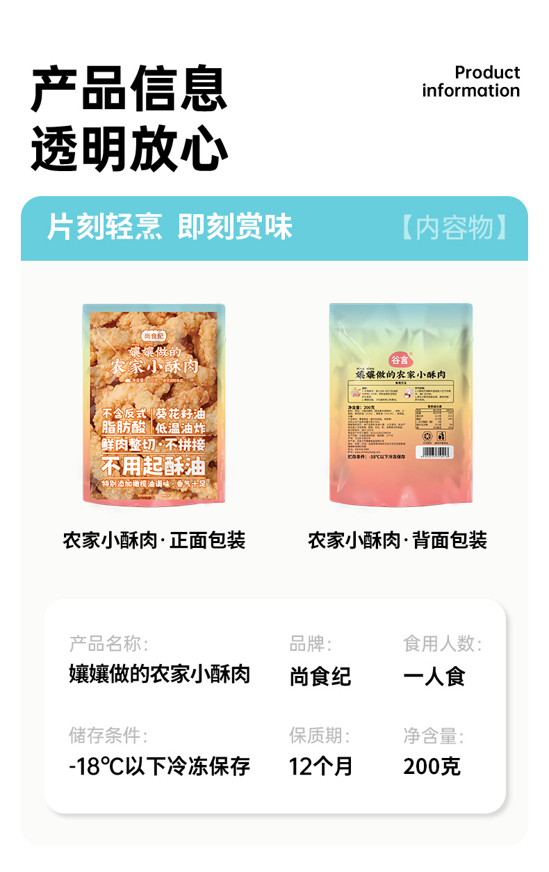 优选丨谷言尚食纪农家小酥肉1600g(200g/袋*8)油炸小吃空气炸锅食材