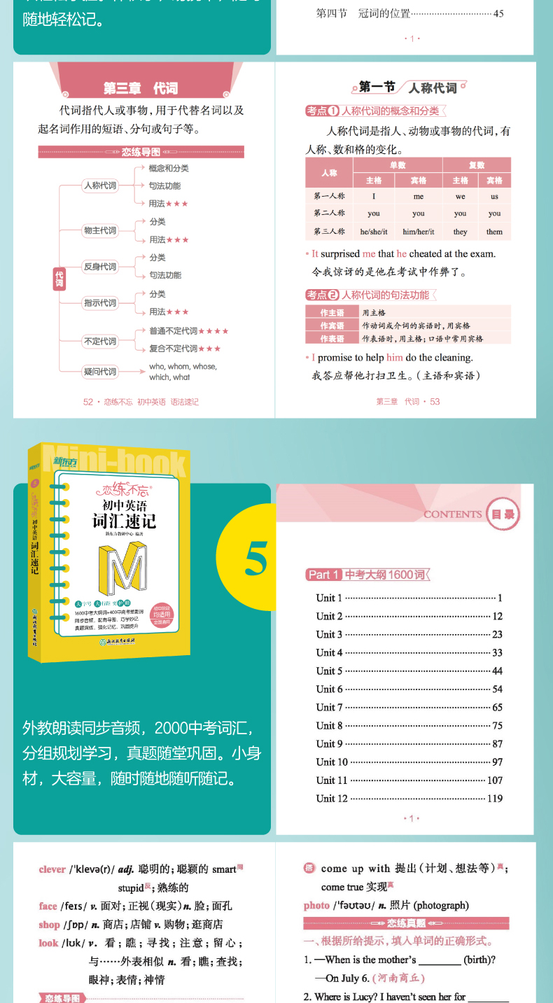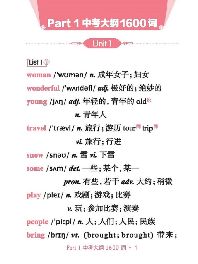 1.1600中考大纲词+400中考高考差距词,备战中考一词不落。