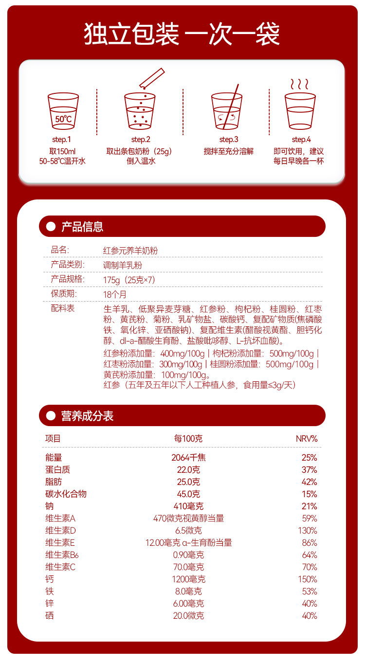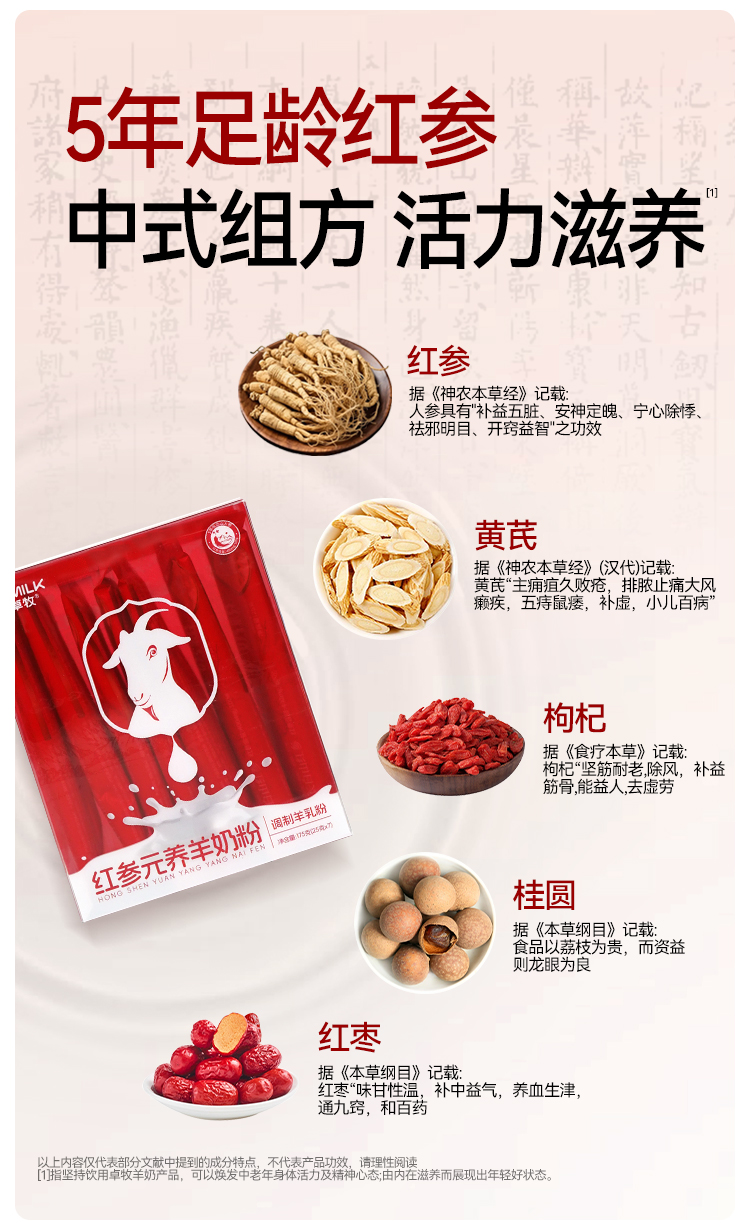 【7折内购专享系列】卓牧红参元养羊奶粉小红盒 175g*6盒