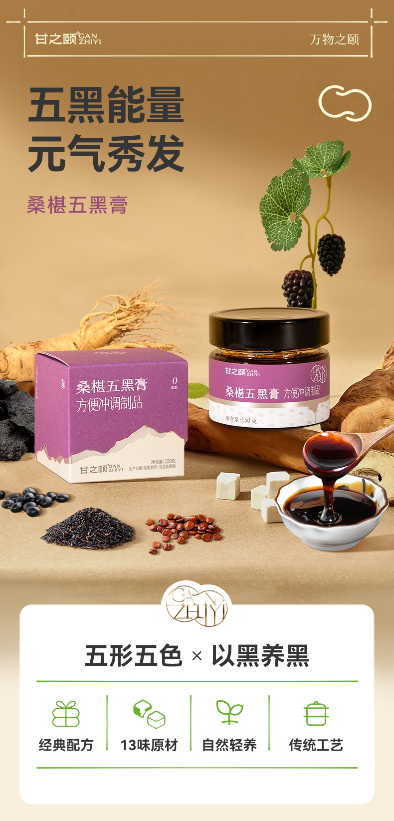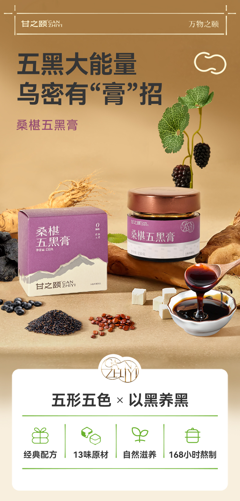 甘之颐 桑椹五黑膏 150g/瓶 黄精桑葚膏 桑椹膏膏方膏滋补本草丛